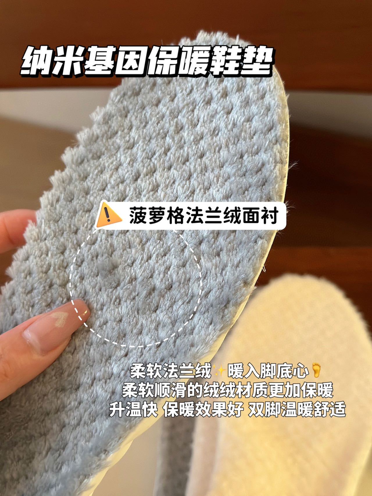 【品名】纳米基因加厚法兰绒鞋垫