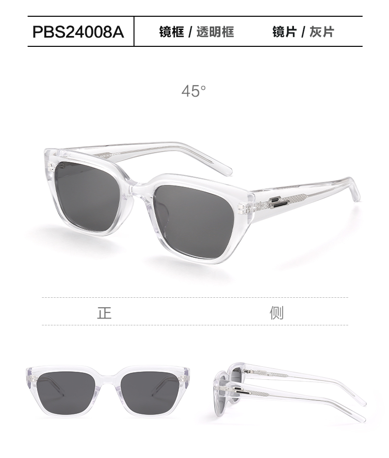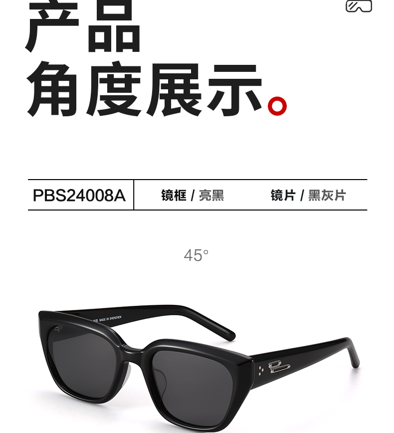 普莱斯新款太阳镜PBS24008A 复古窄框猫眼 优质板材镜框 TAC偏光镜片 修颜宽边镜腿 男女同款 四色可选