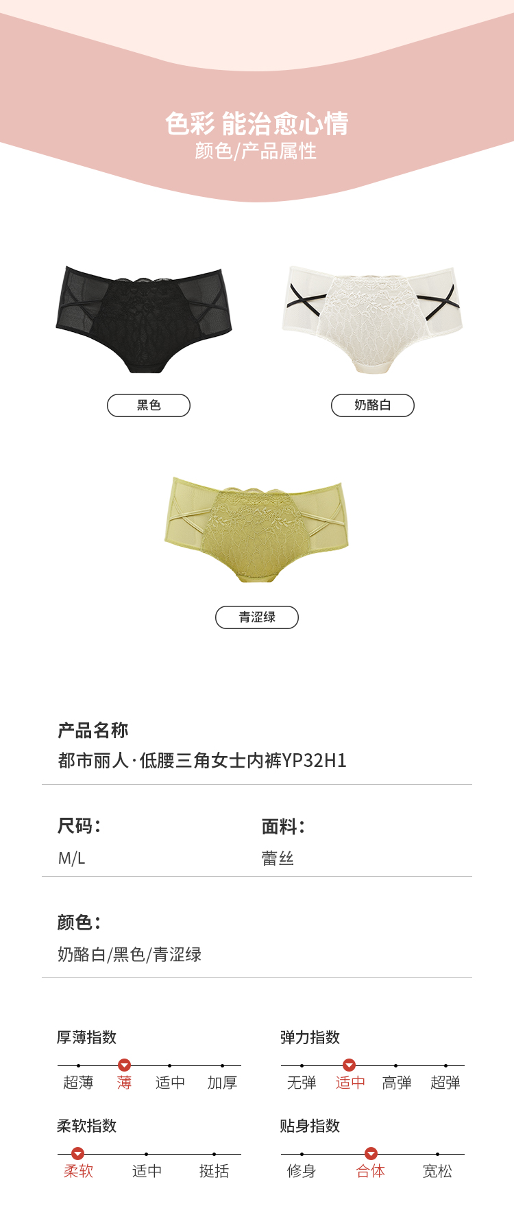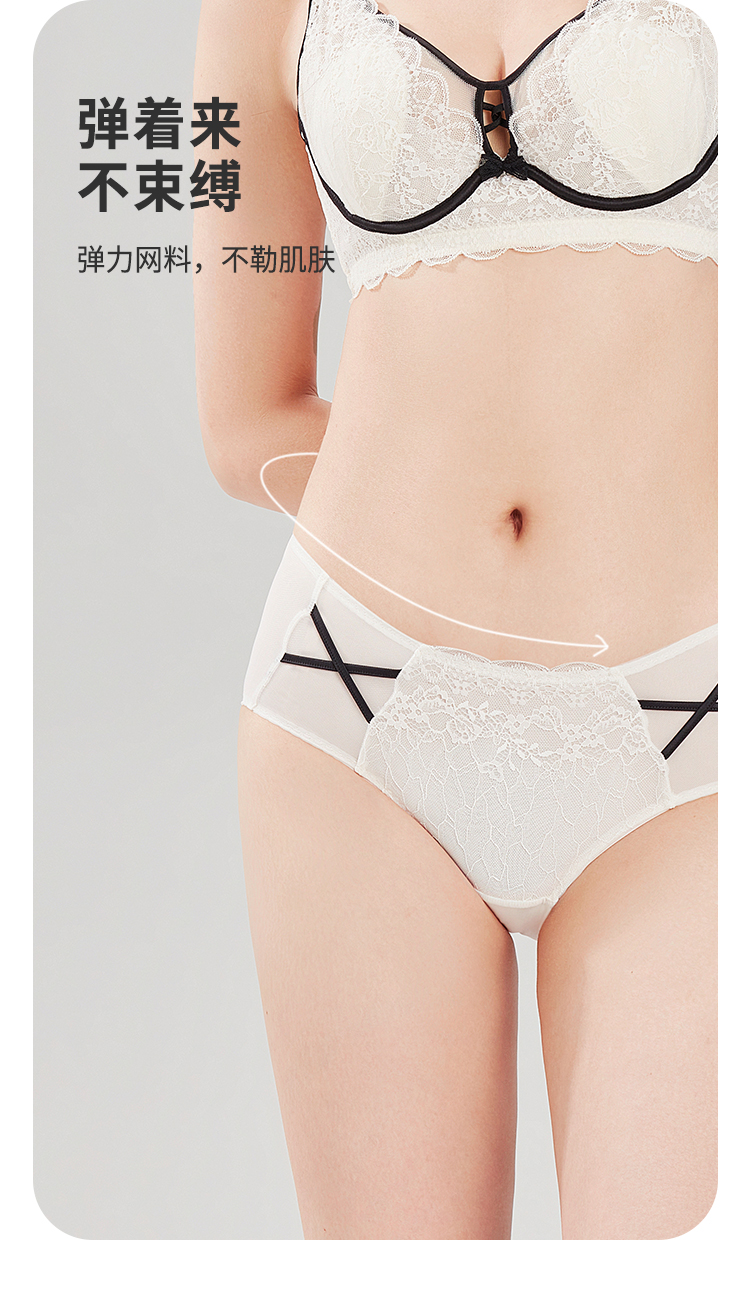 都市丽人蕾丝网布系列网布+蕾丝低腰三角内裤YP32H1