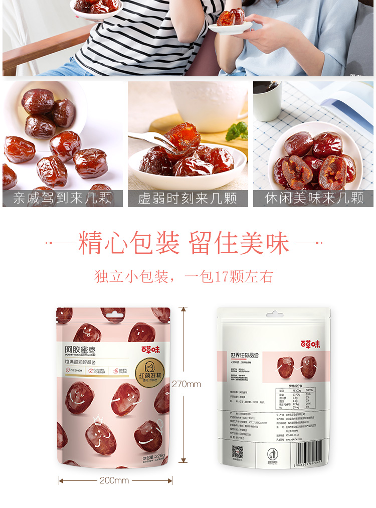 【满299减210】百草味阿胶蜜枣 228g