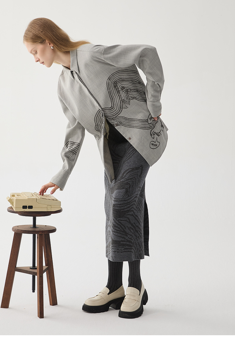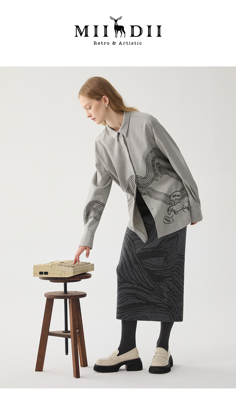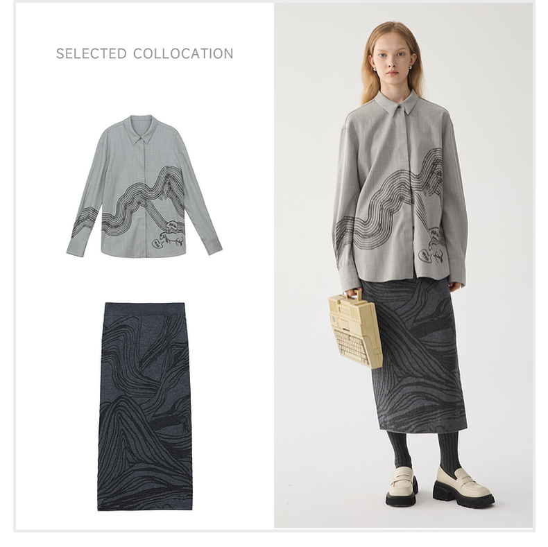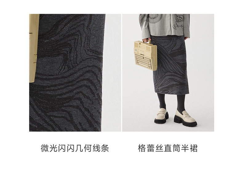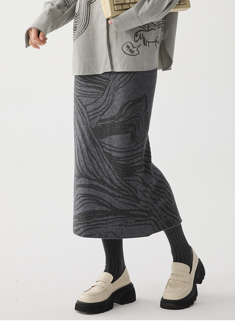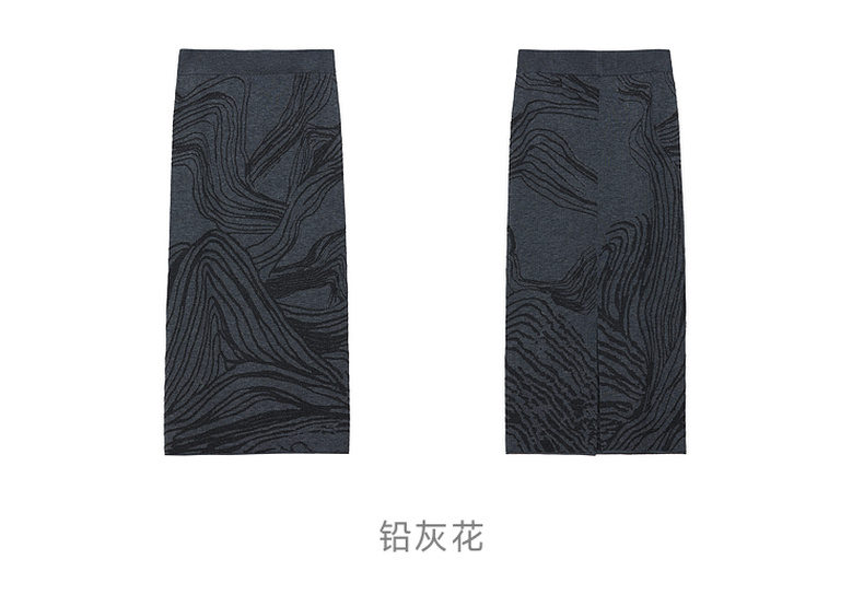 谜底针织半身裙2024冬新品复古风提花修身直筒半裙长裙244MZ1898