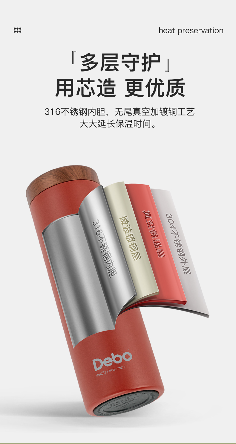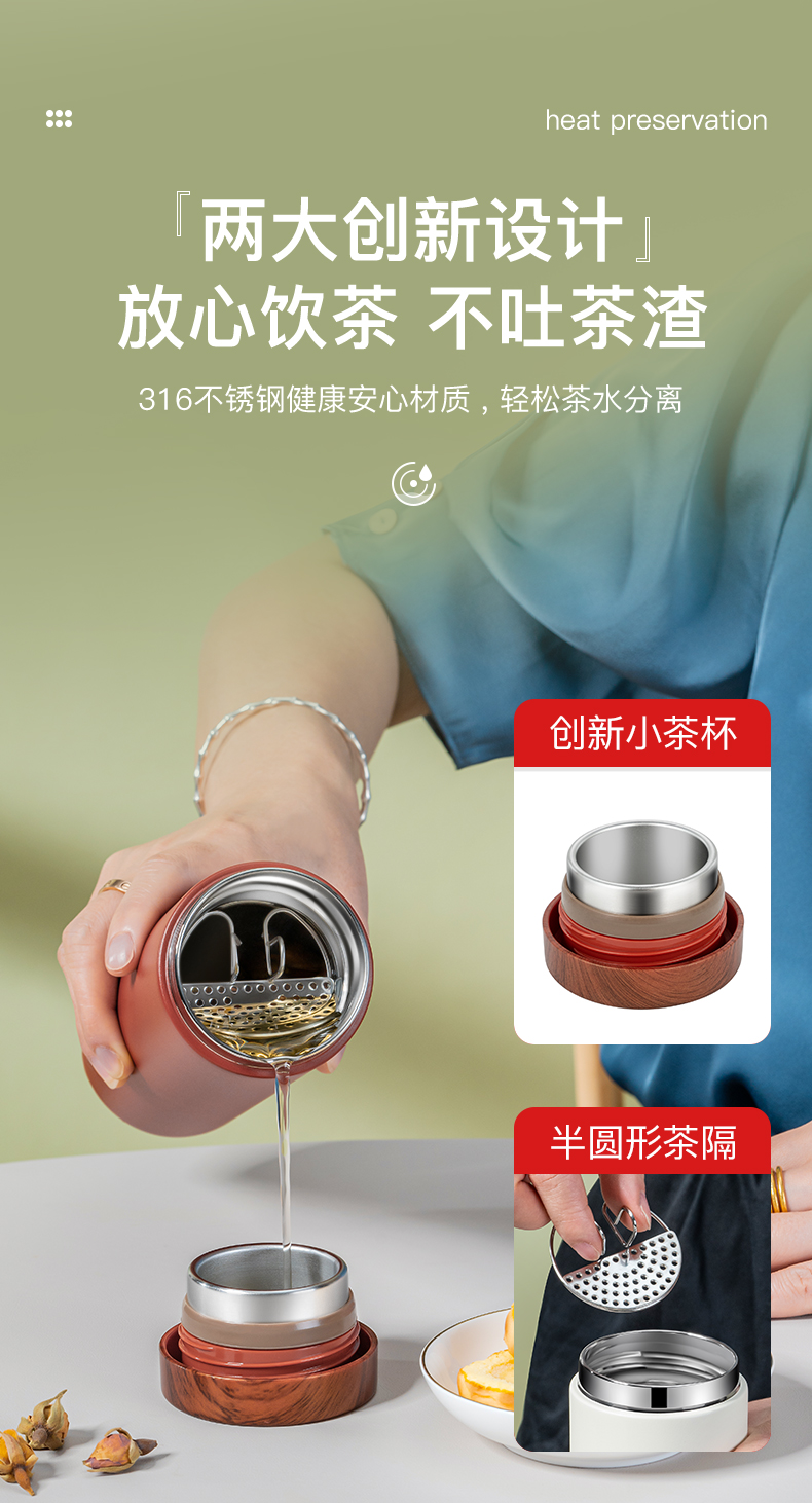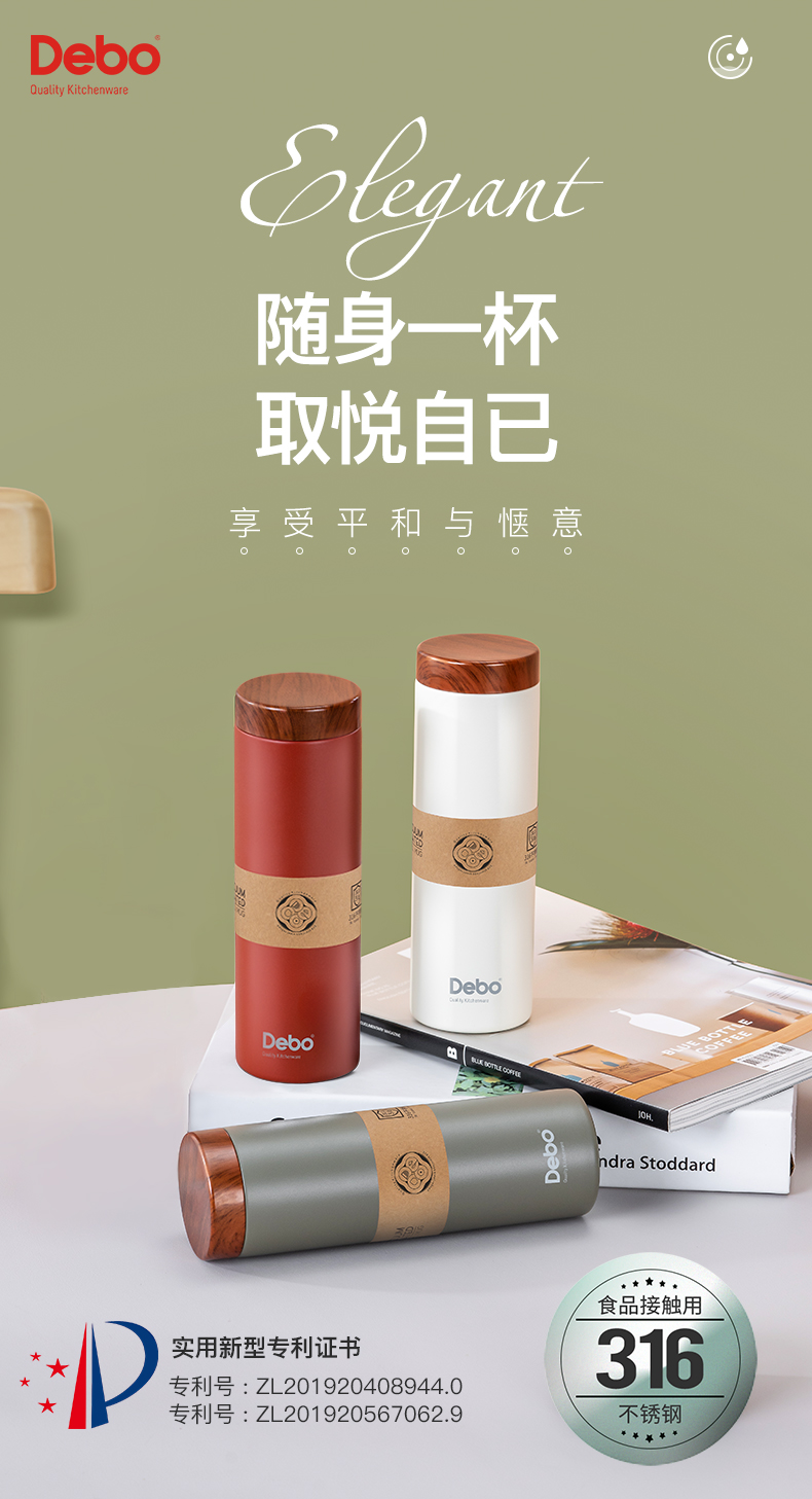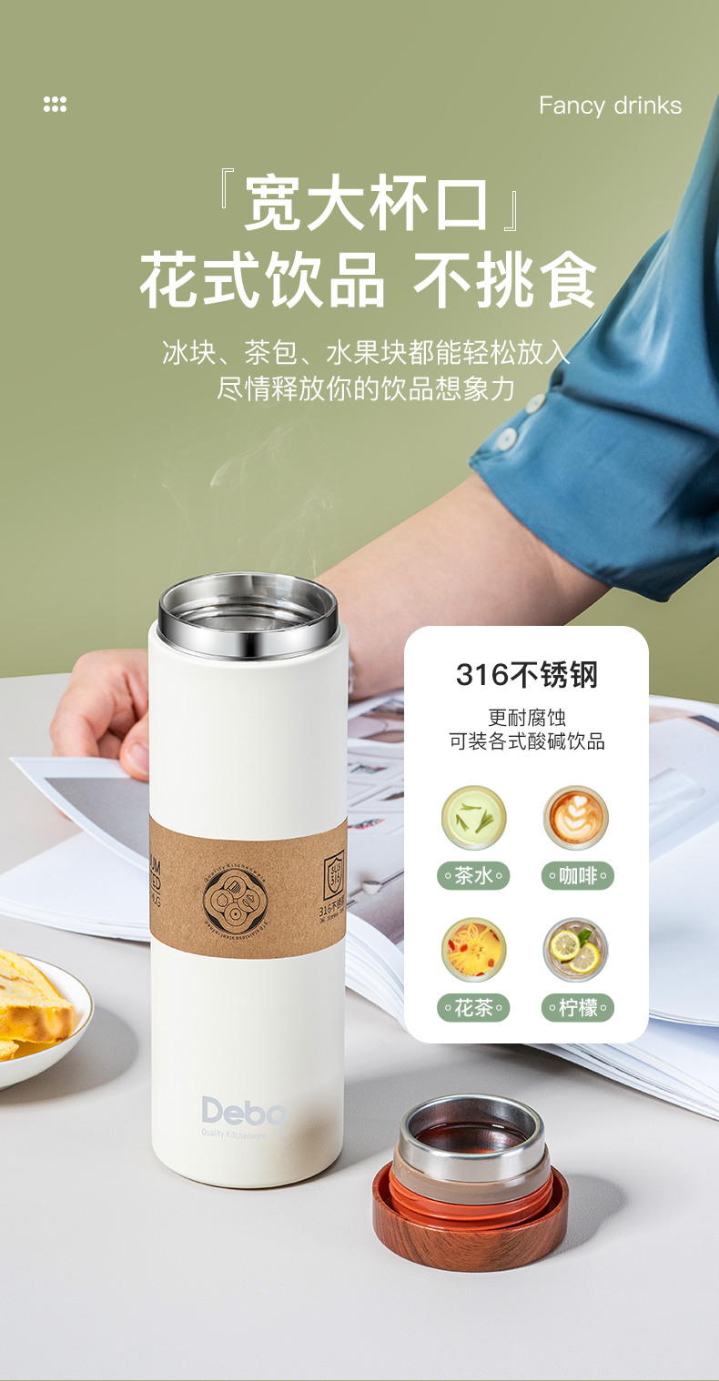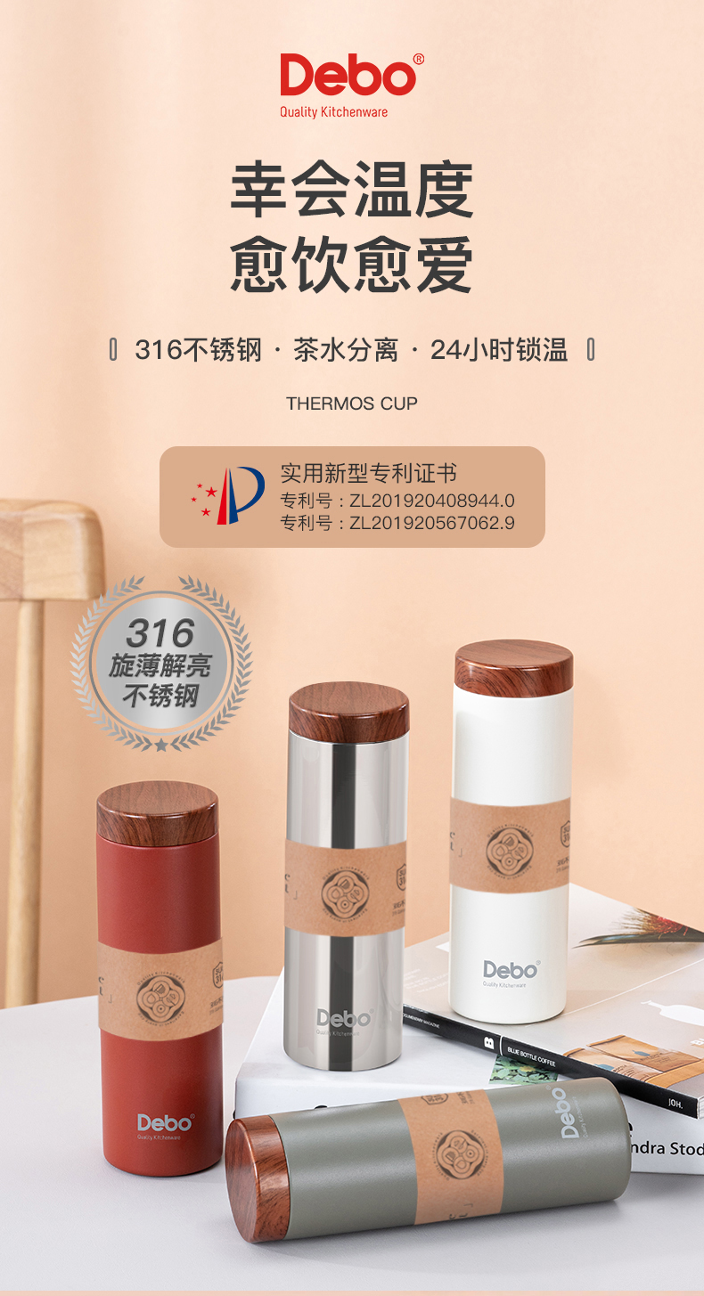 Debo德铂-卡罗尔 斯凯立真空保温杯礼盒装 316不锈钢夏季保冷冬季保温 创新专利滤茶畅饮