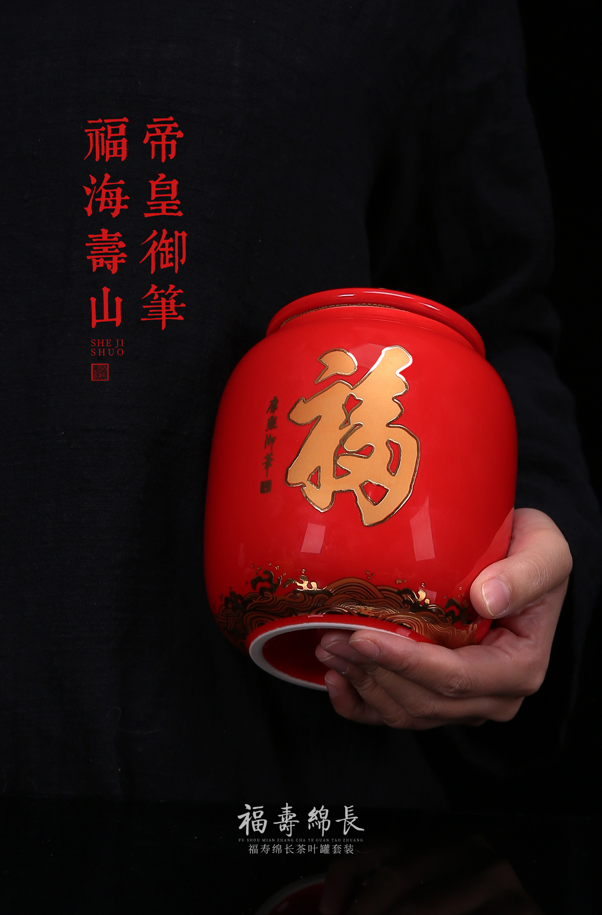 【帝王御笔 福寿双全】福寿绵长茶叶罐套装,笔墨堆金 福寿献瑞,作者签章 品质保证,福寿安康 精美好礼