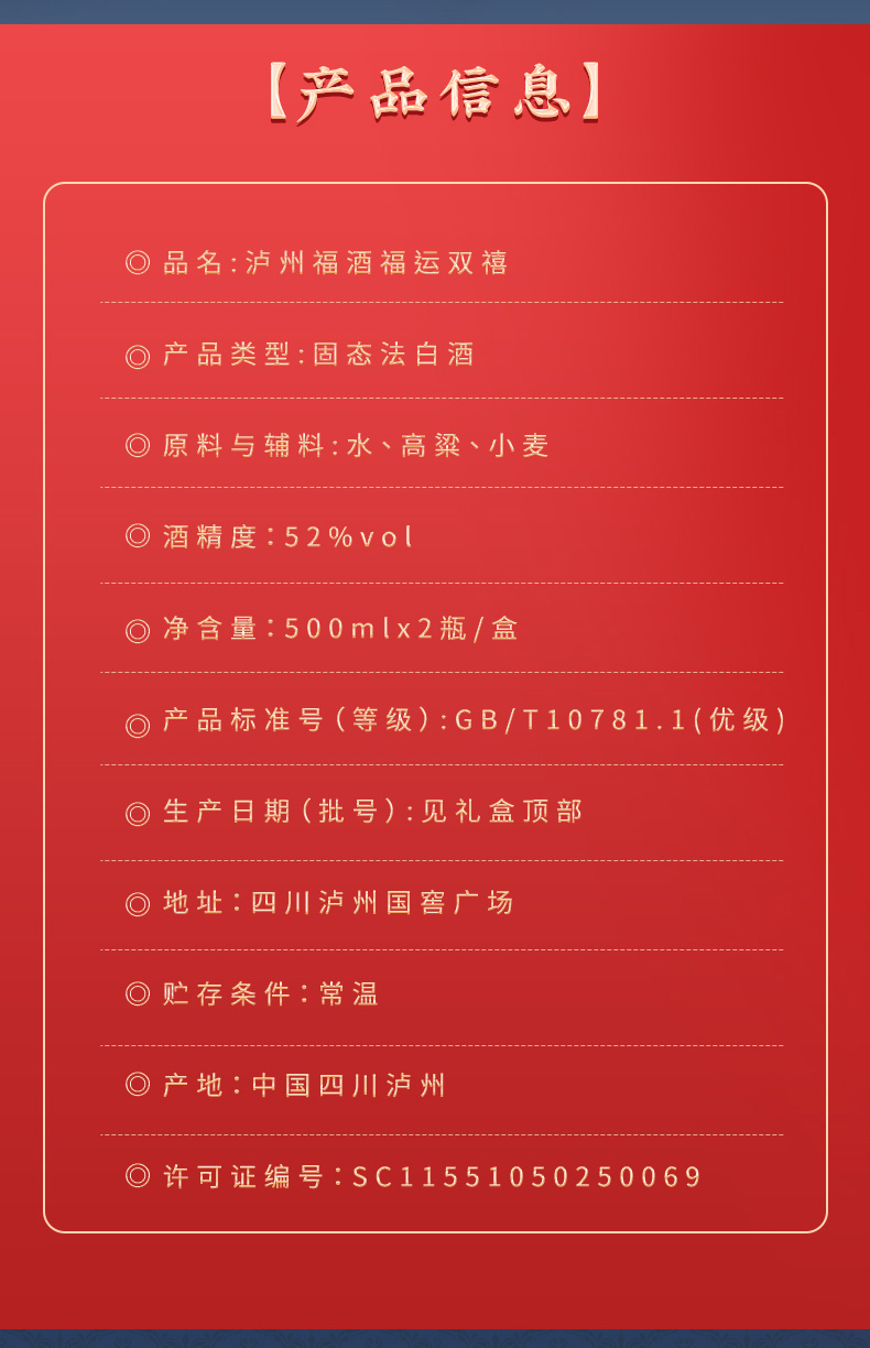 【泸州福精选组合】52度 泸州福福运双禧 (500ml*2 瓶)*3盒+ 52度泸州福酒福之韵(红)500ml*2+ 52度 泸州福酒安怡 500ml*2泸州老窖官方旗舰店
