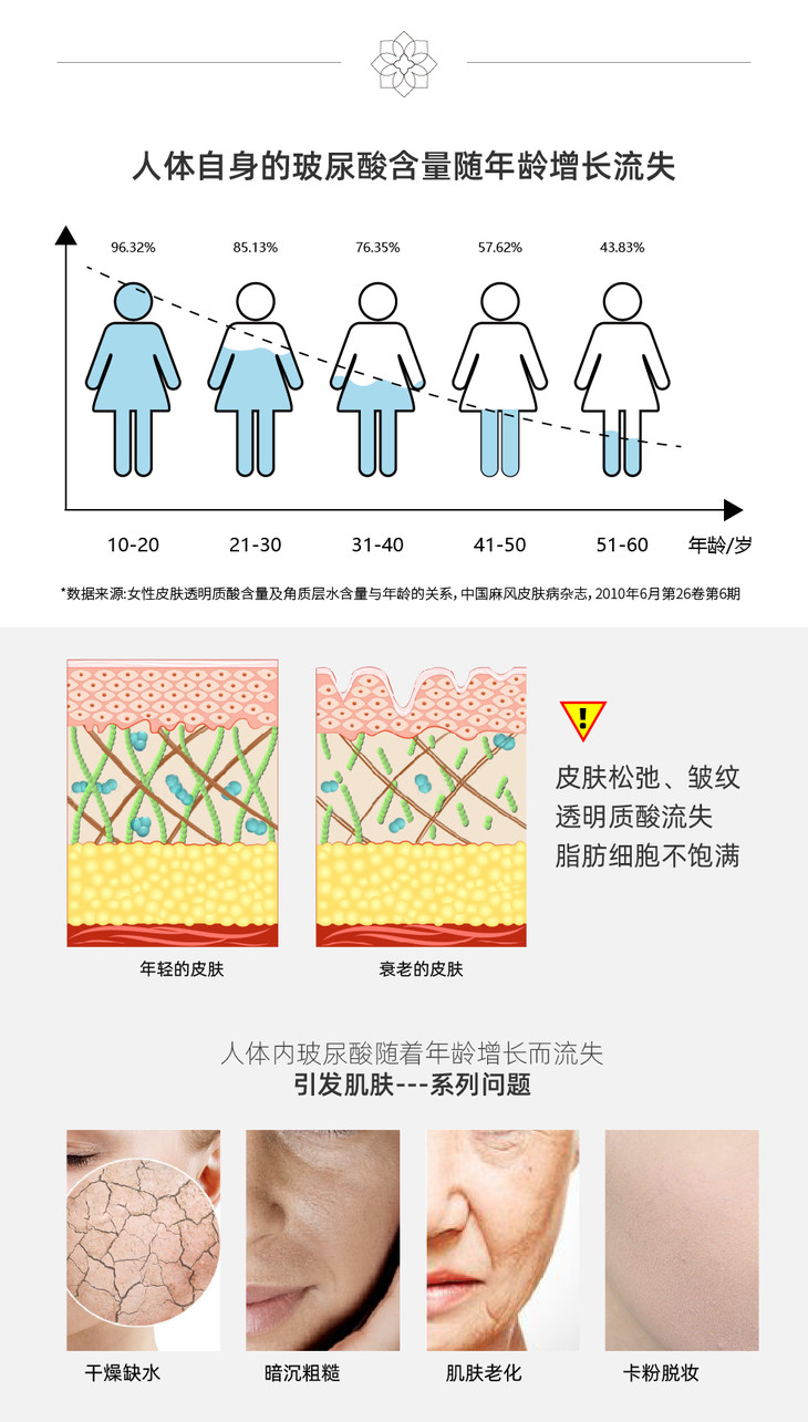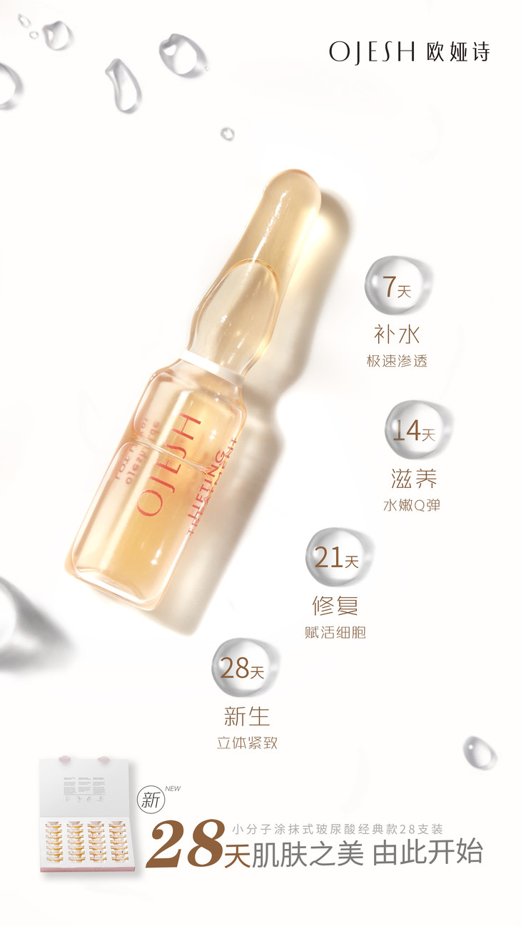 升级版浓度为0.8%,在保湿抗衰的基础上增加了美白去皱及淡化斑点,推荐30岁以上人群使用。首次使用玻尿酸产品人群可选择0.6浓度7支装搭配0.8浓度21支装组合成28天周期护理套装。
