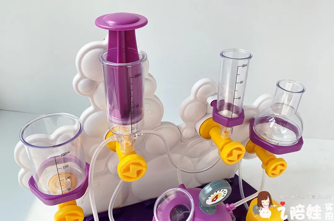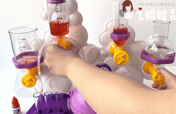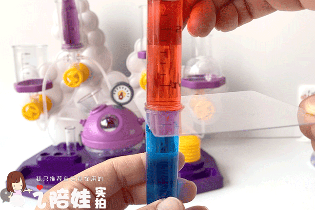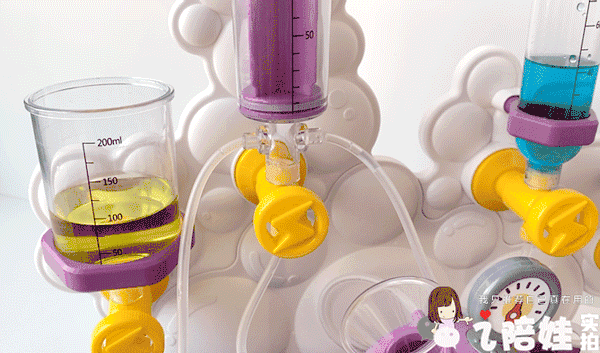 她闺女还特爱捣鼓这个跟针筒似的液压装置,能同时分流2-3股液体,孩子觉得新鲜,还拿我闺蜜的食用色素,配出不同的颜色反应。