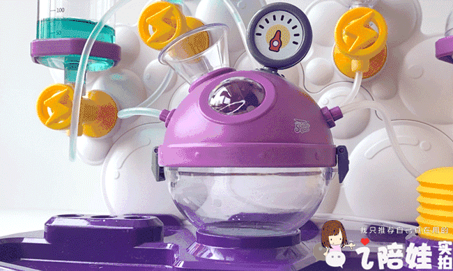 加上这个反应炉真的很萌趣,一个普普通通的泡泡实验,从它嘴里冒出来的效果,和从试管里直接溢出的完全是两回事。我闺蜜闺女一边“哇”,一边追着问她为什么