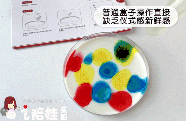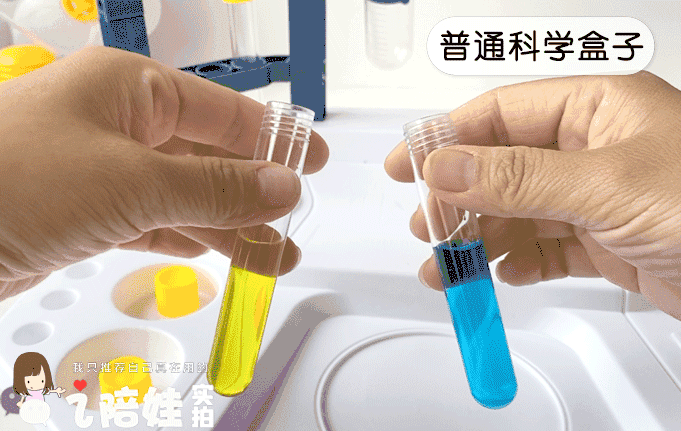 像入门的变色实验,一般科学盒子都是通过一个勾兑动作完成,颜色变化太快,孩子一般印象不是特别深。