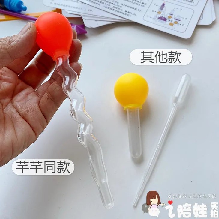 滴管虽然走的可爱风设计,尺寸更大,还用的胶头,显得正式。