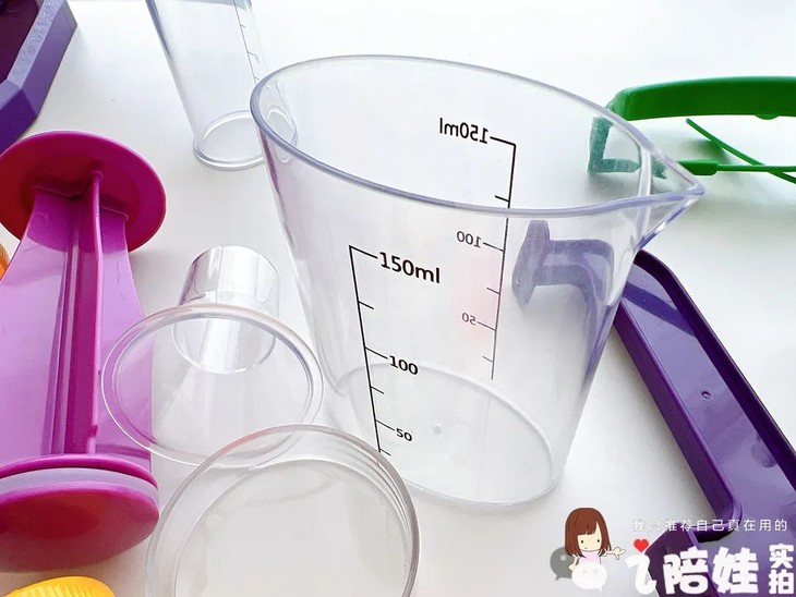 ● 量杯和试管刻度不是公制单位:这套我感觉是为了照顾孩子的操作性和实验呈现效果,器皿上的刻度并不是标准的公制单位数量。建议妞提前和孩子强调一下,以免对容量产生歧义哈。