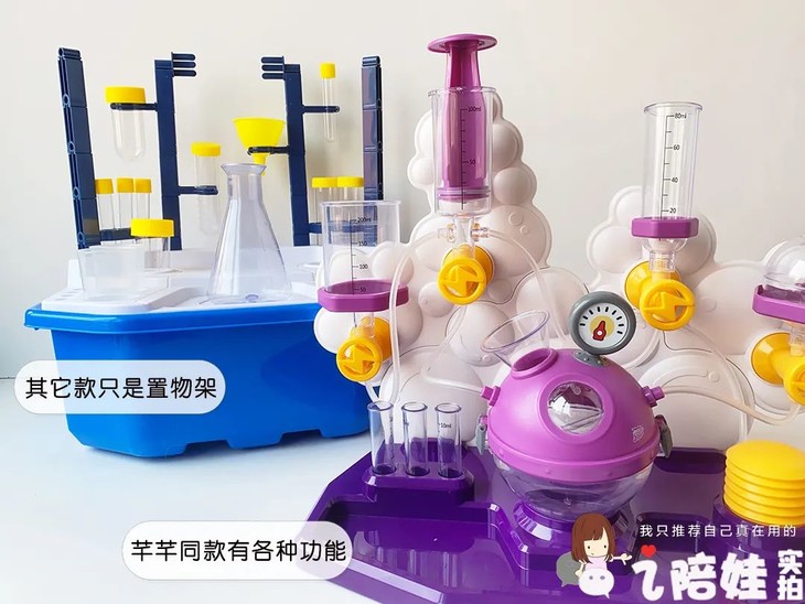 我感觉这里面的各种器皿跟真实实验器皿的大小更接近,孩子倒腾起来不爱撒得到处都是。