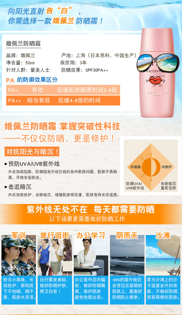 娥佩兰清透防水防晒乳(SPF30)50ml