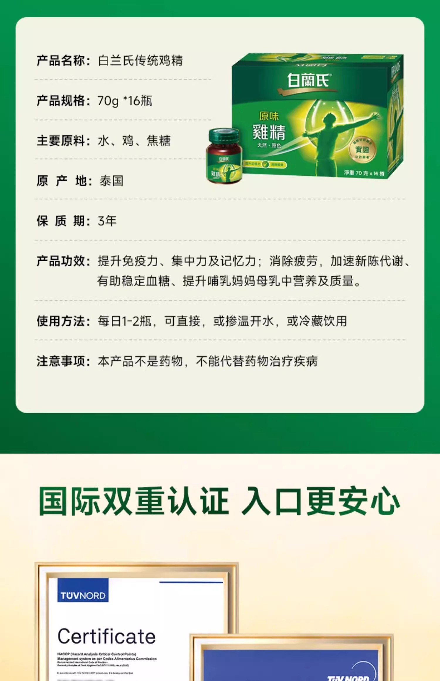 白兰氏Brand’s 原味鸡精营养品 70g*16瓶