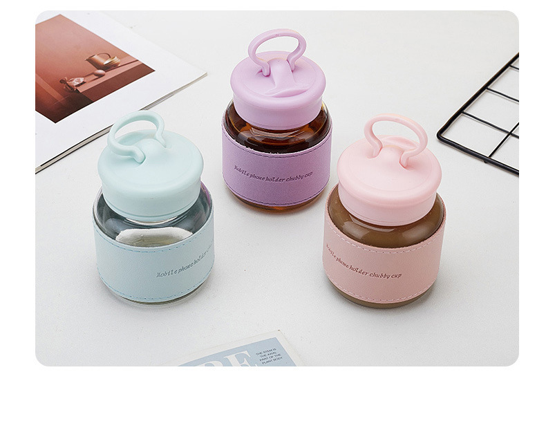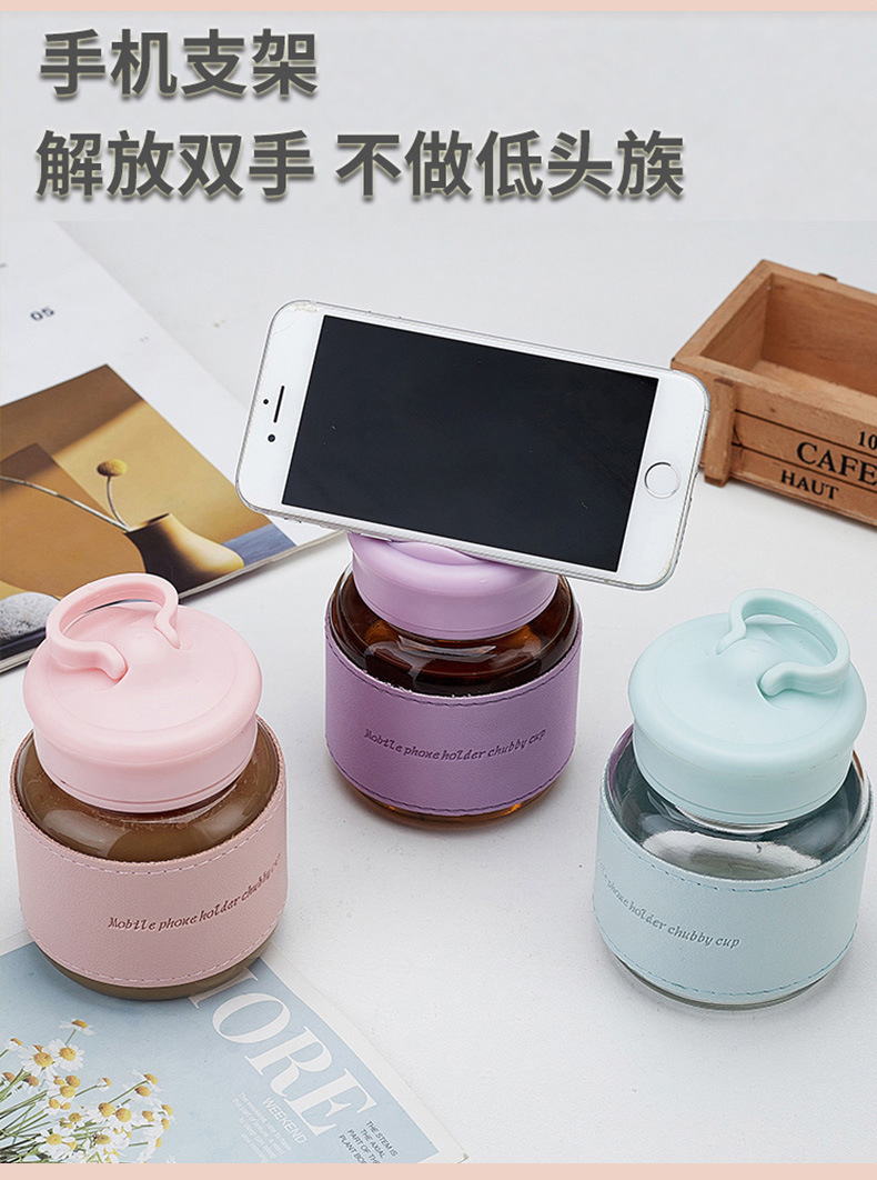 网红便携水杯隔热带杯套玻璃杯手机支架摇摇杯可爱简约胖胖杯