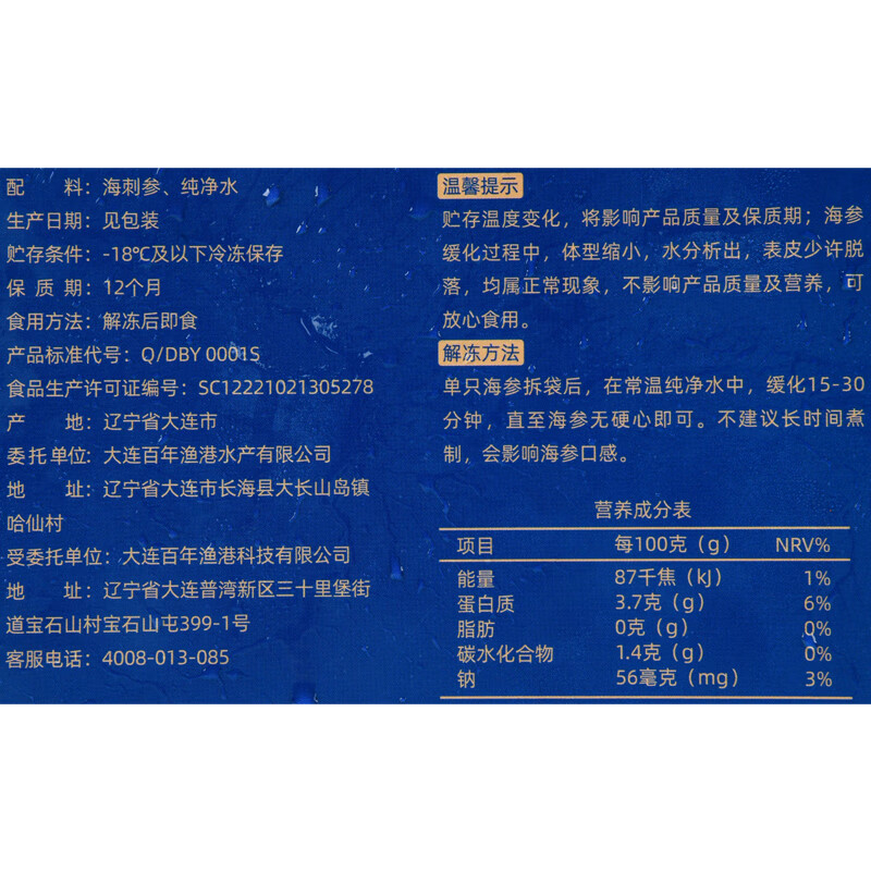 大连高压即食海参500g/盒