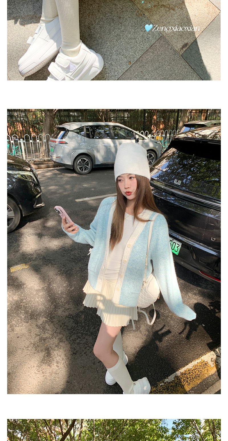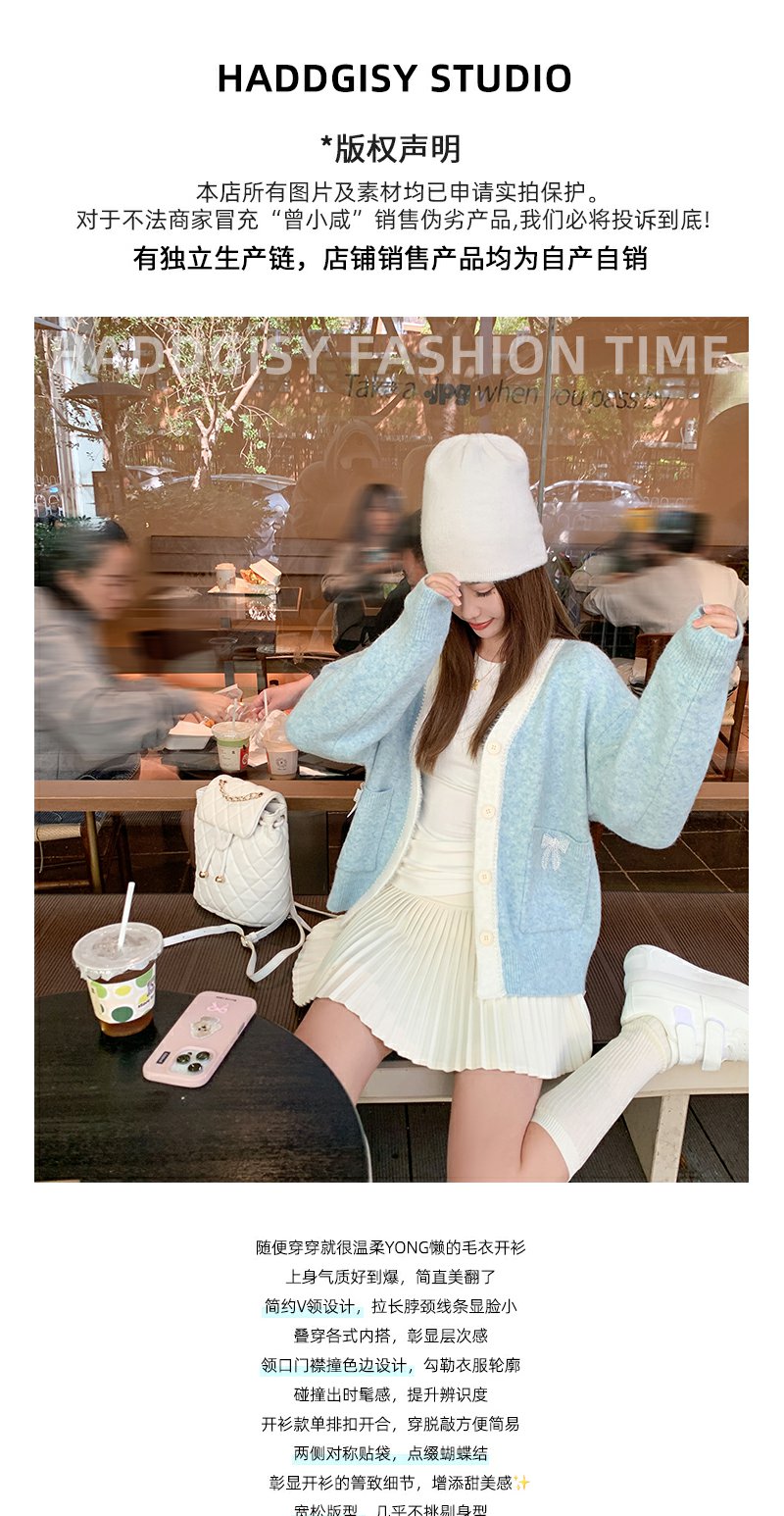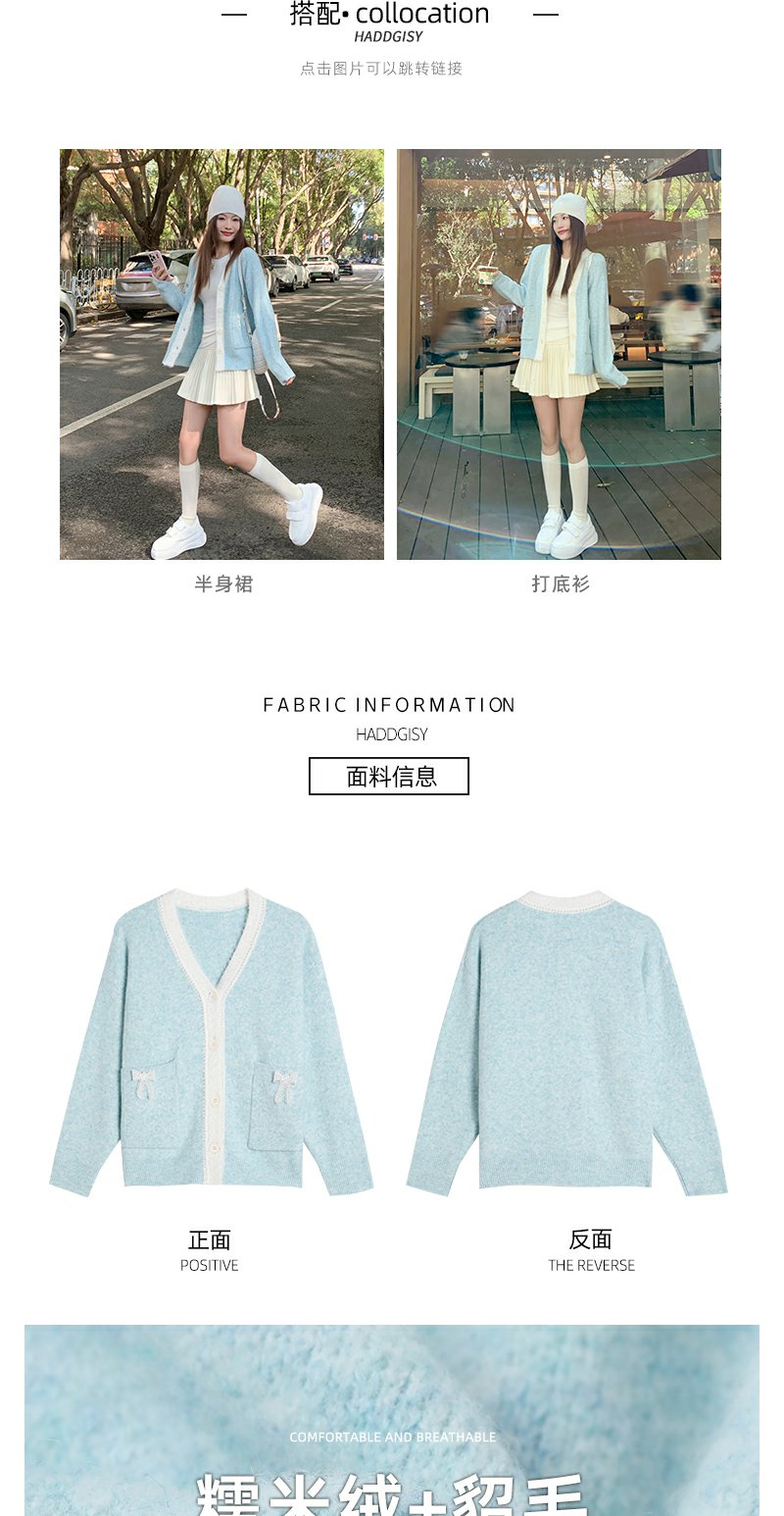 <曾小咸推荐>V领浅蓝色毛衣开衫 日常229.99/件 立减130 秒杀99.99/件!!