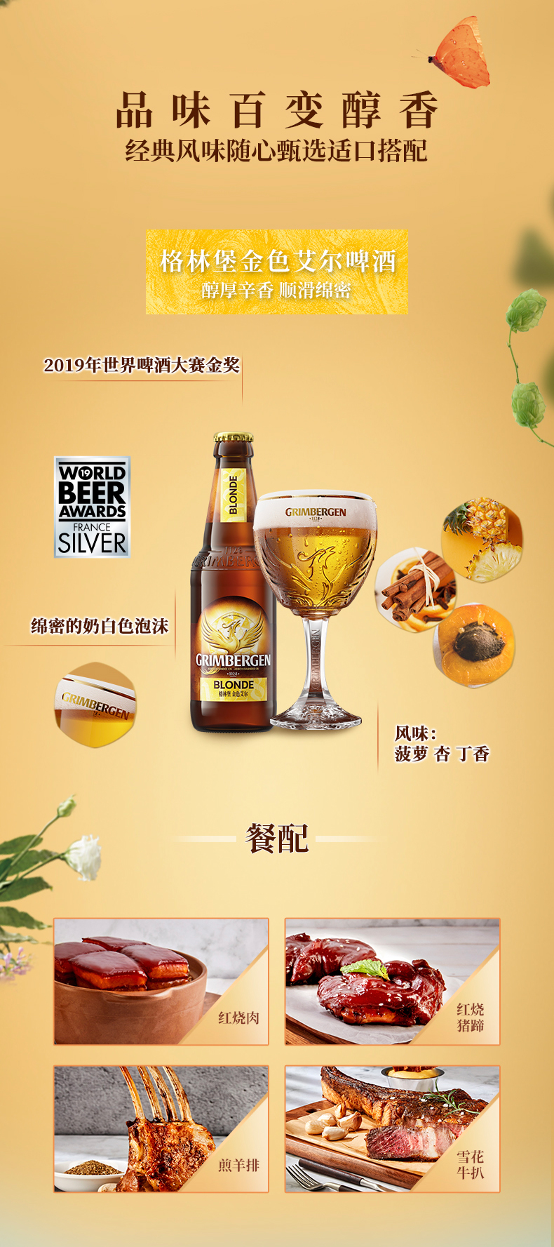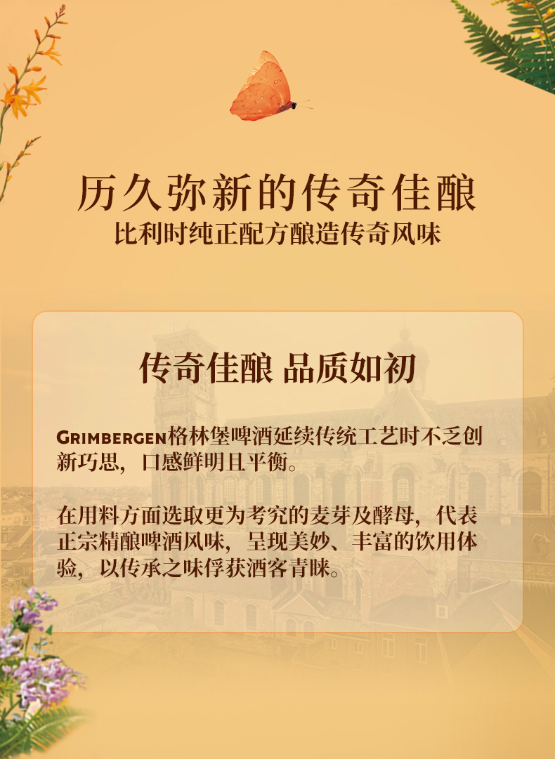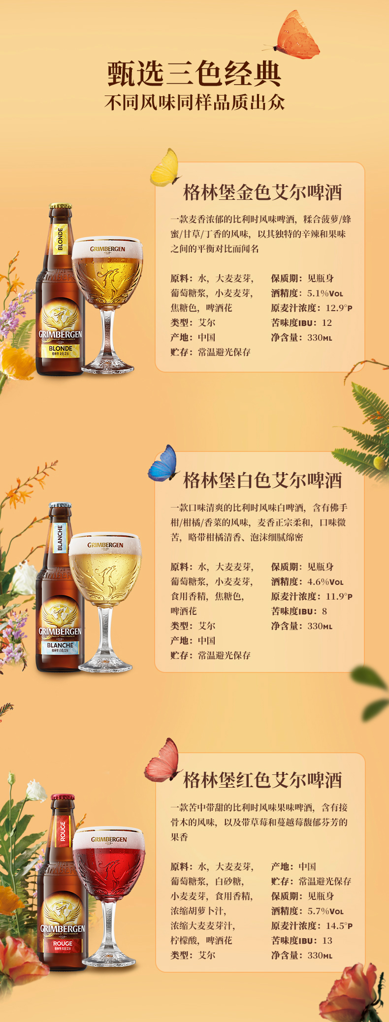 【部分地区预售,现货48h发货】Grimbergen格林堡系列艾尔精酿啤酒330ml*6瓶小麦酒