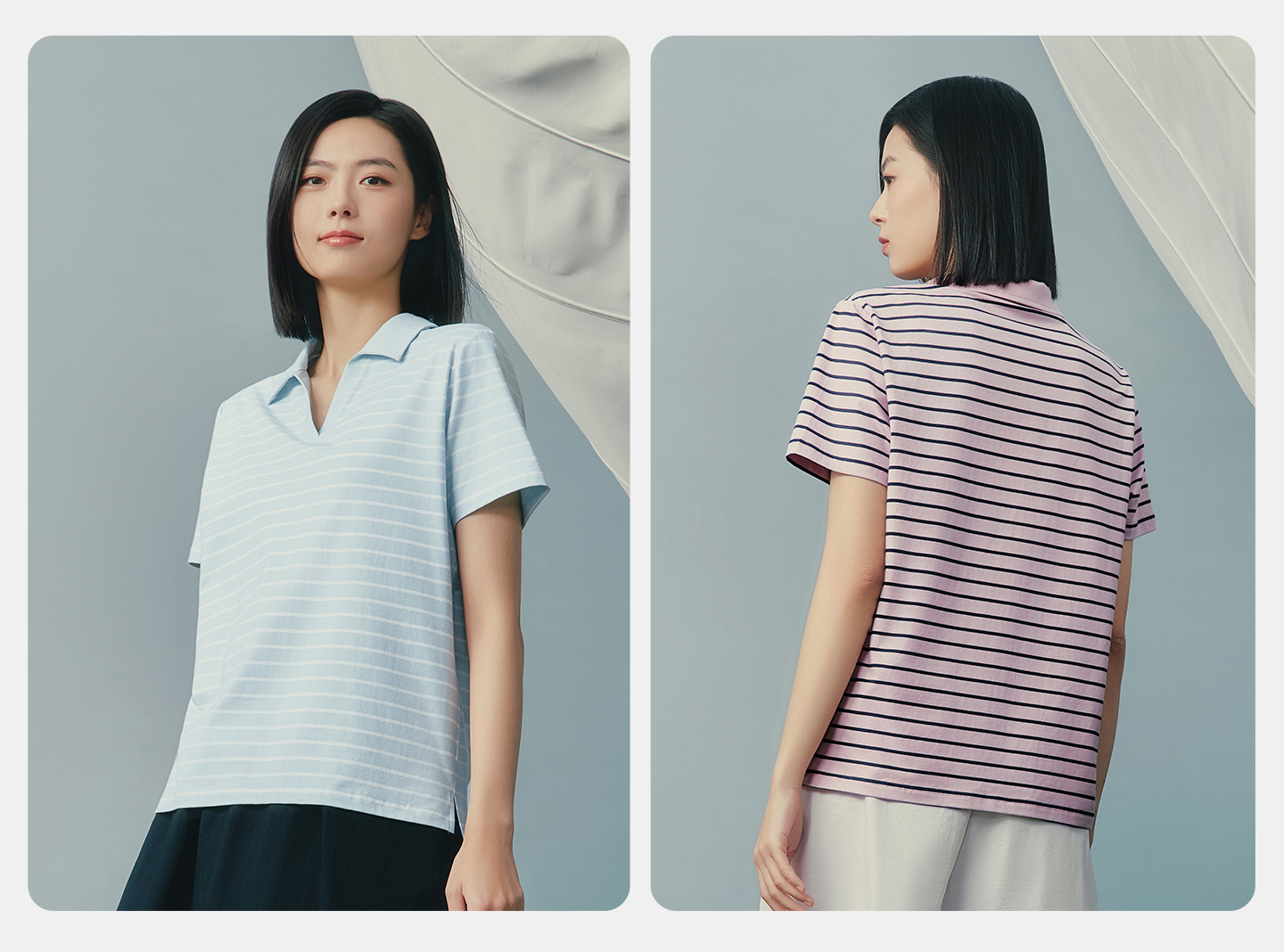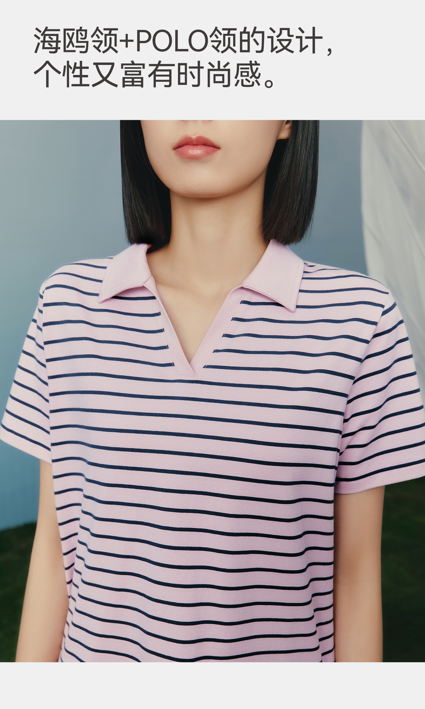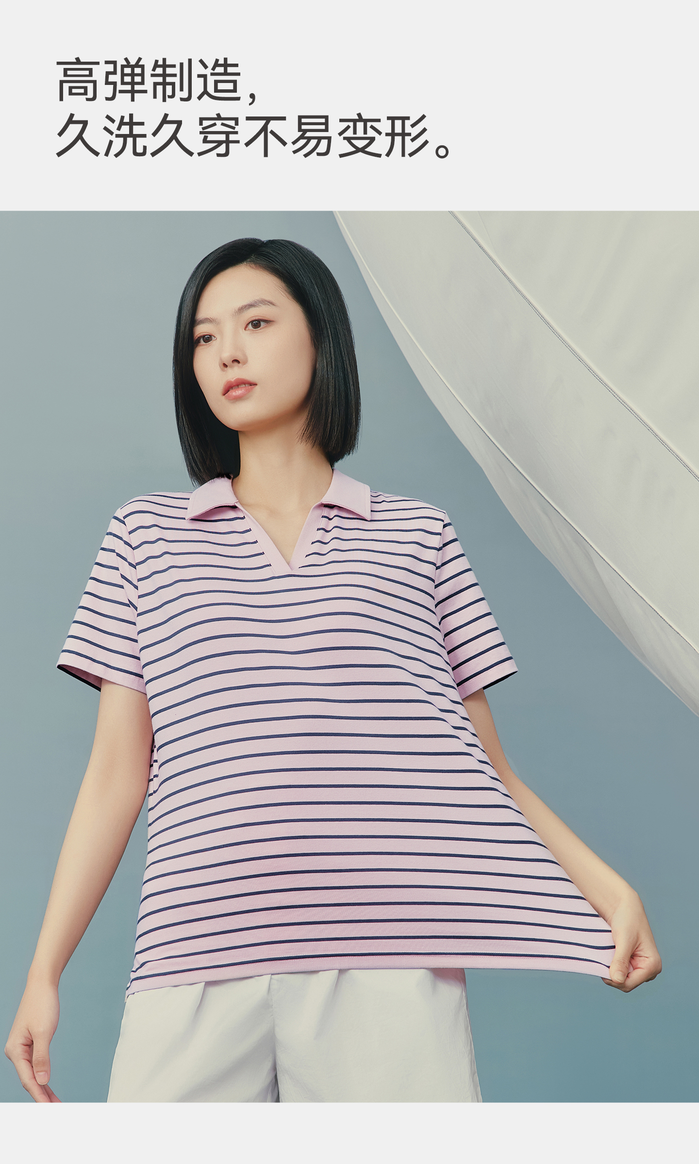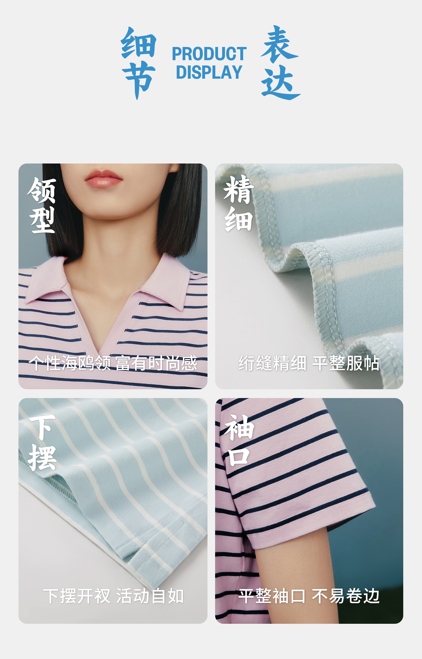 Threegun三枪 彩条冰泉棉海鸥领短袖女衫-T10013A01