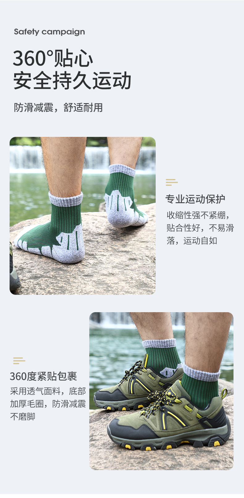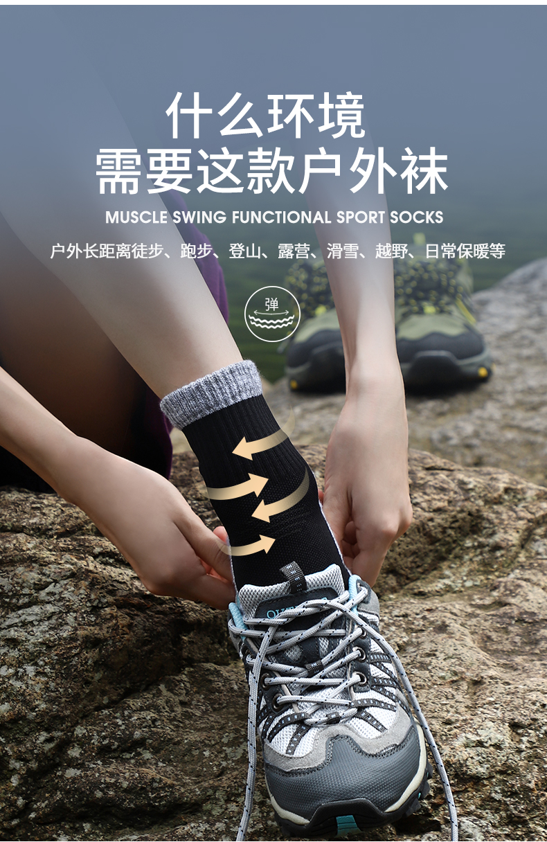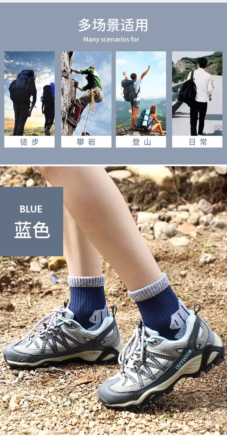 【三双装】(秋冬厚度)906肌动户外运动袜男毛巾底防滑登山袜女透气速干徒步袜加厚袜子