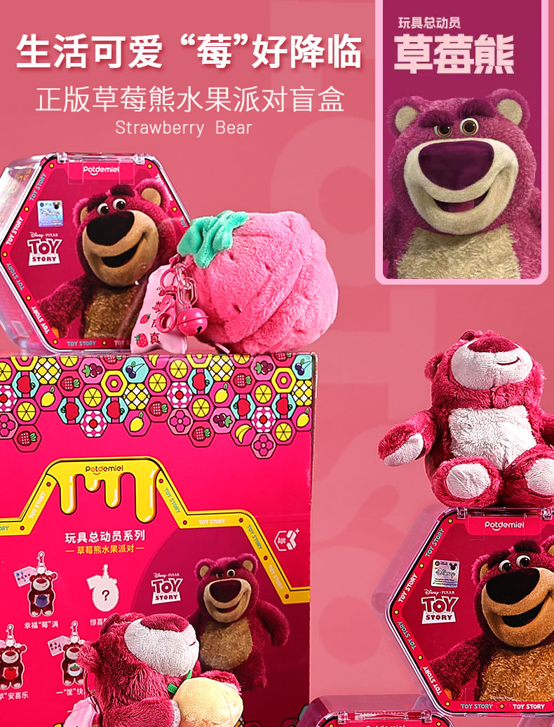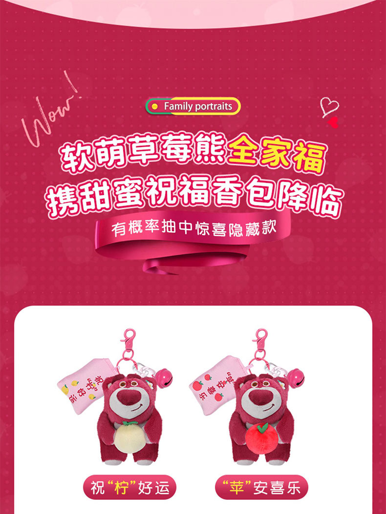 正版迪士尼草莓熊盲盒公仔挂件毛绒小熊玩偶书包包挂饰钥匙扣女生礼物