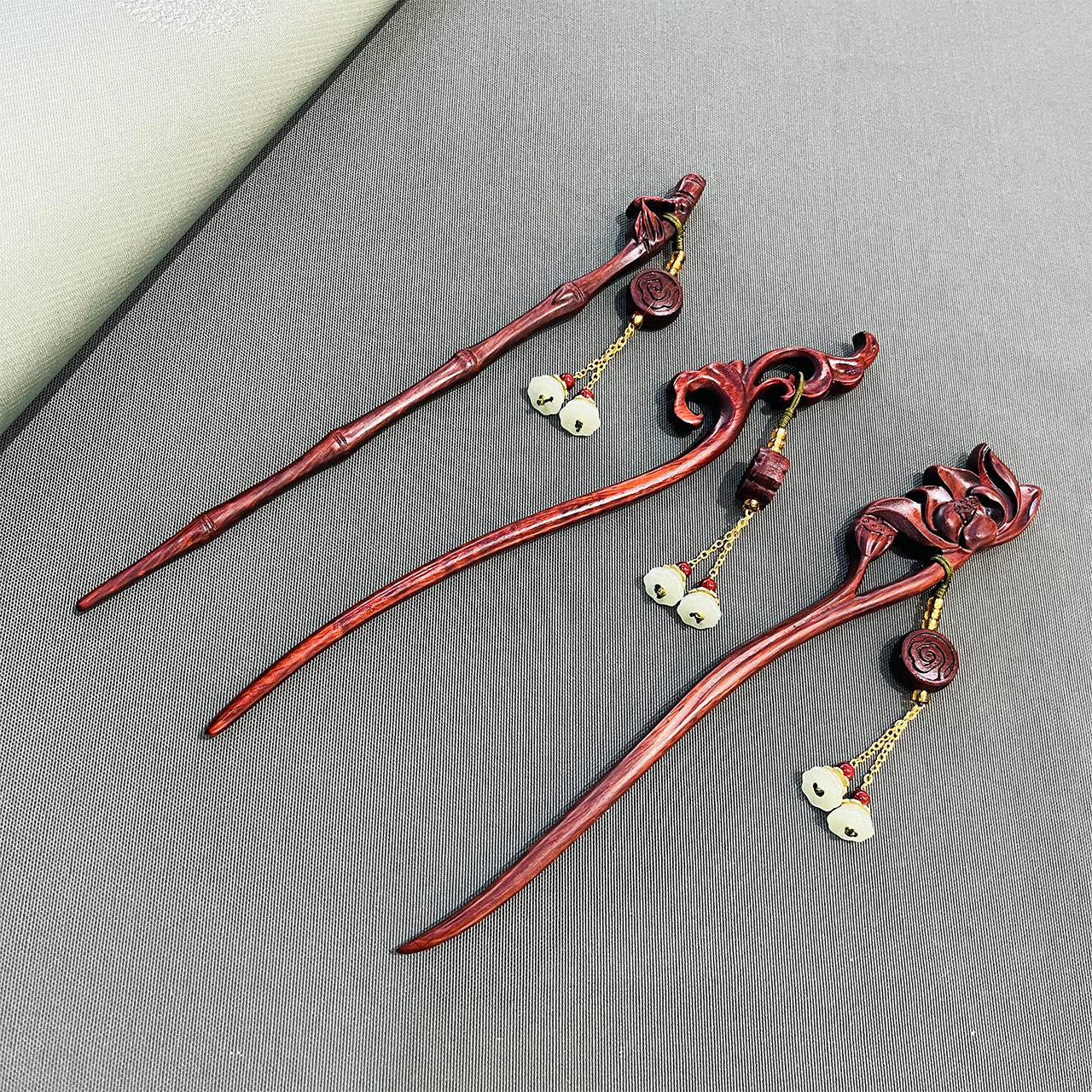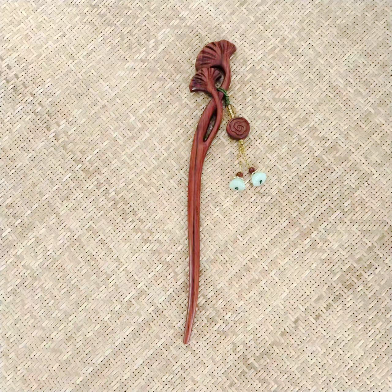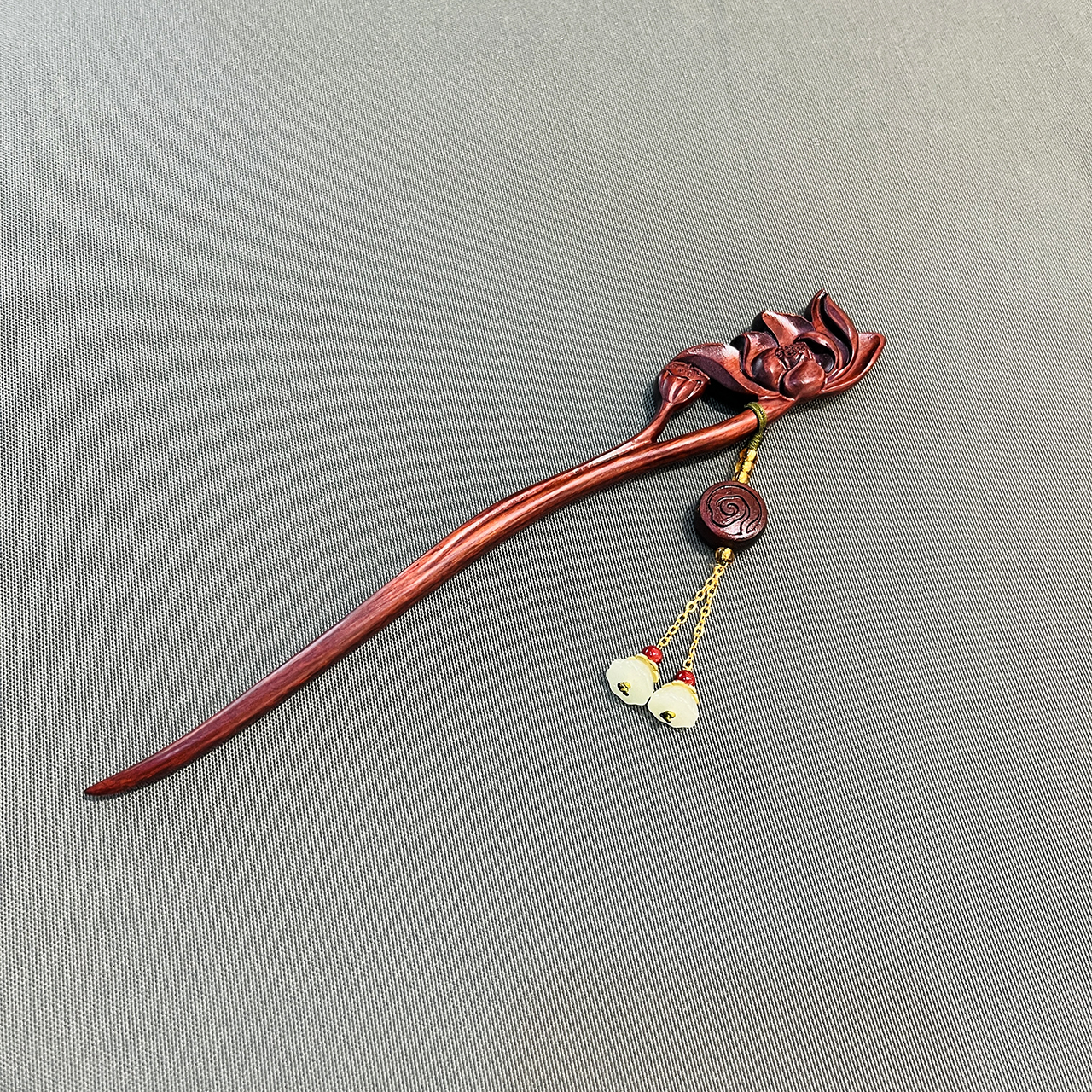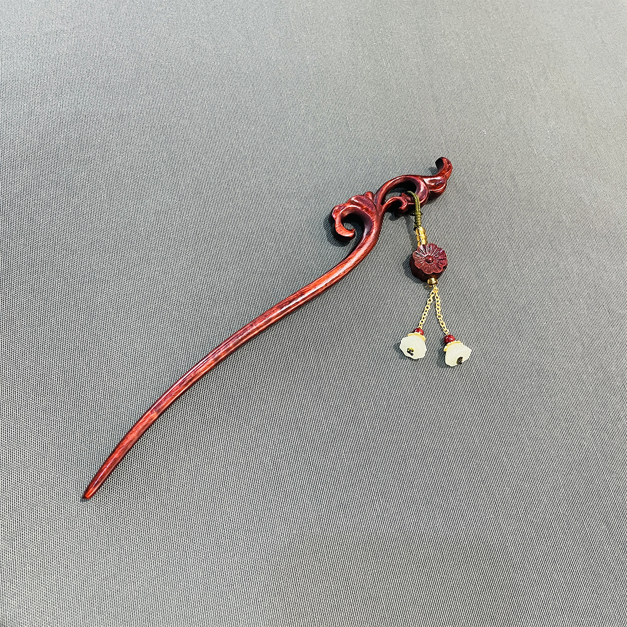 竹节/荷花/如意/梅花/银杏°精雕犀角紫檀发簪吊坠款