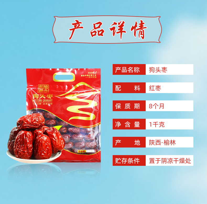 西部粮仓五星陕北狗头枣1000克