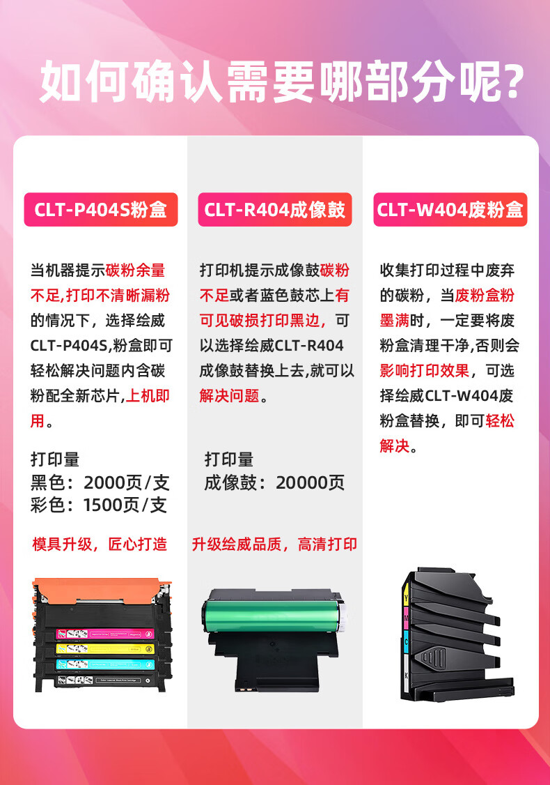 绘威CLT-K404S粉盒、CLT-W404废粉盒 适用三星Samsung SL-C430 C432 C433 C480 C482 C483打印机墨盒 硒鼓 墨粉盒