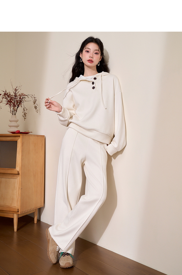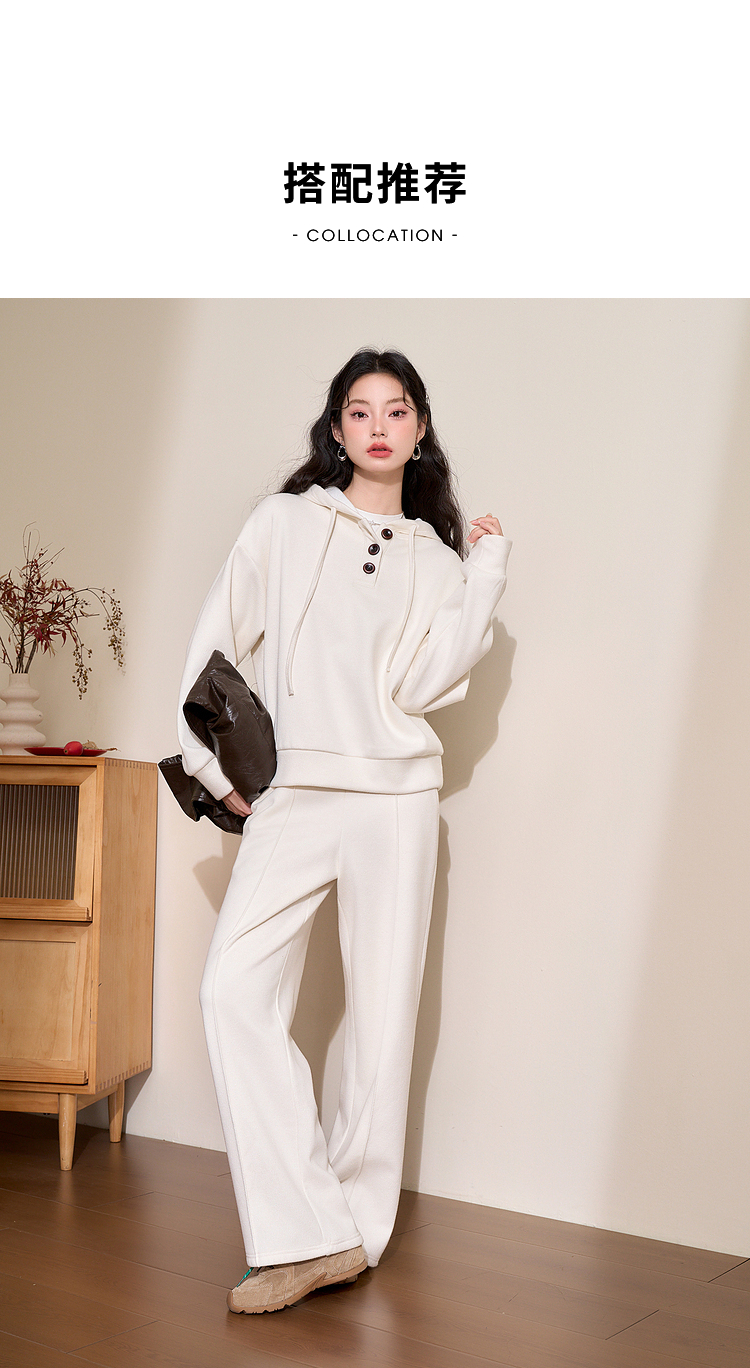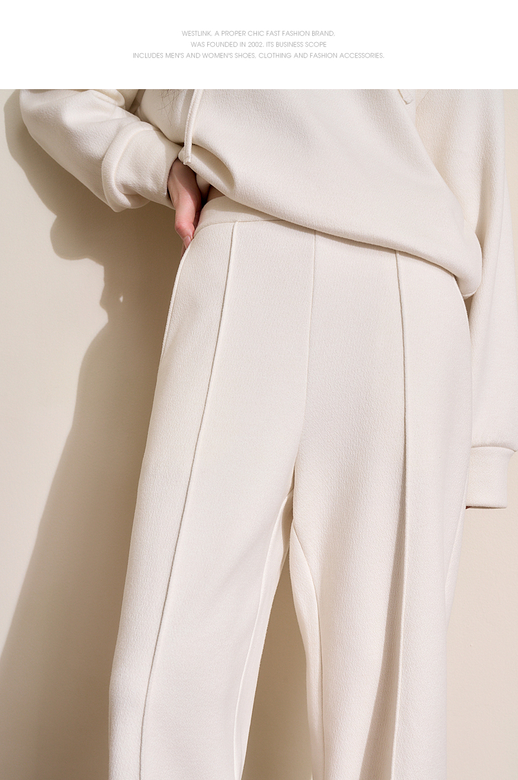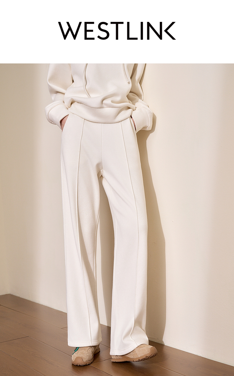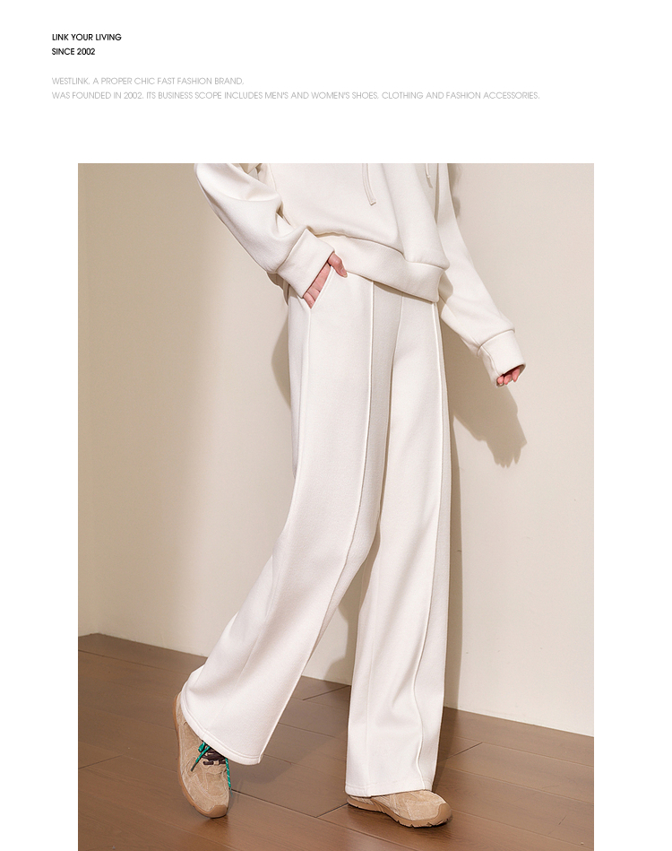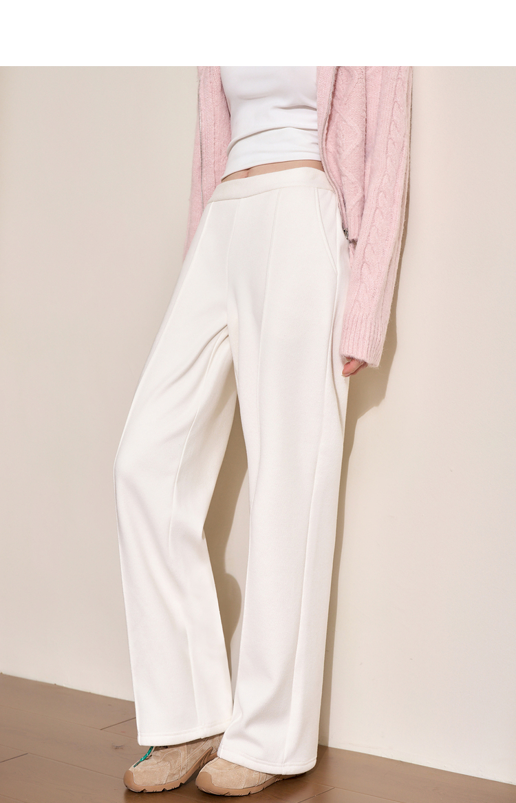 慵懒风保暖直筒裤女年早春松紧腰高腰显高显瘦宽松休闲裤V4443583