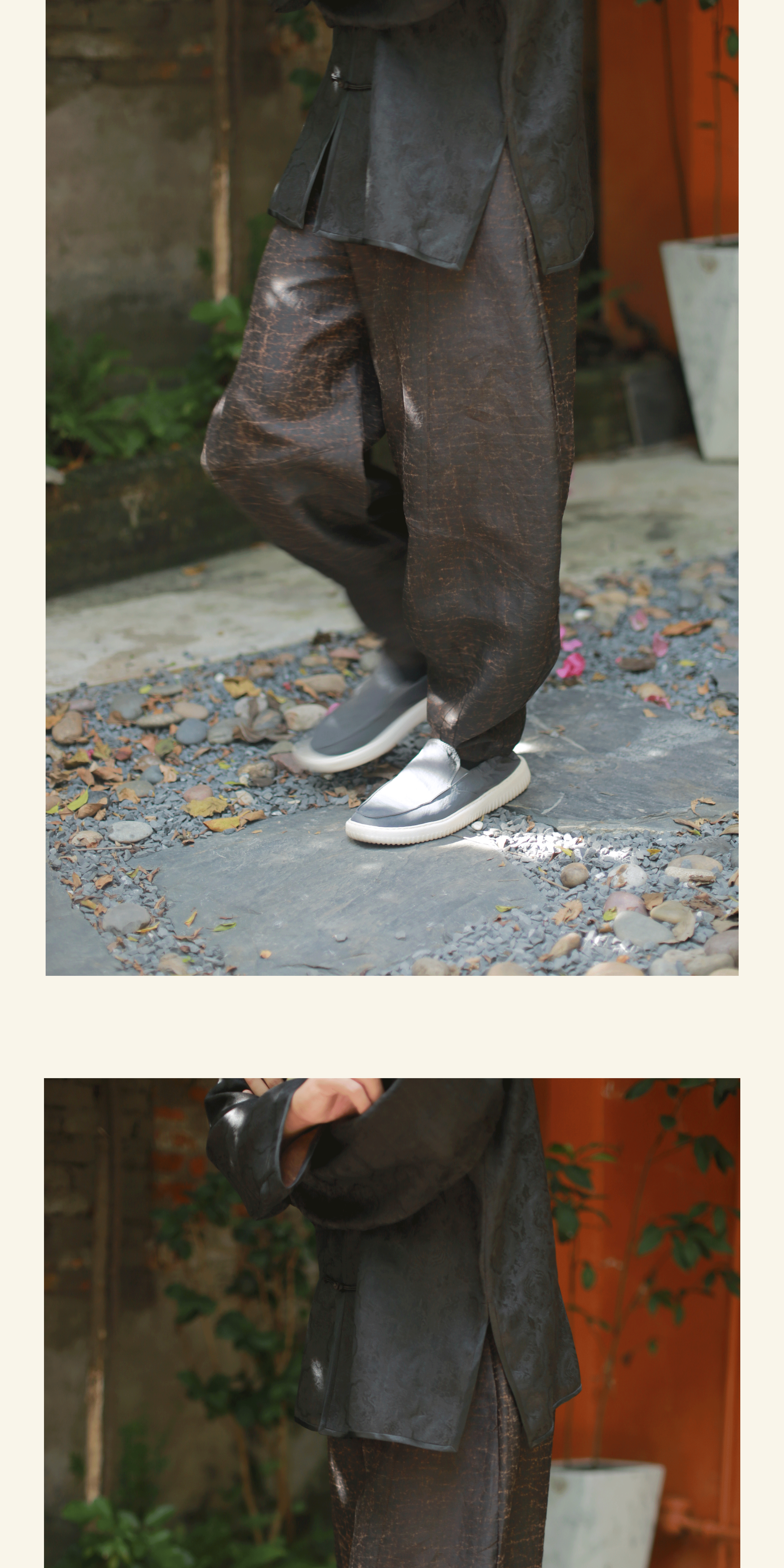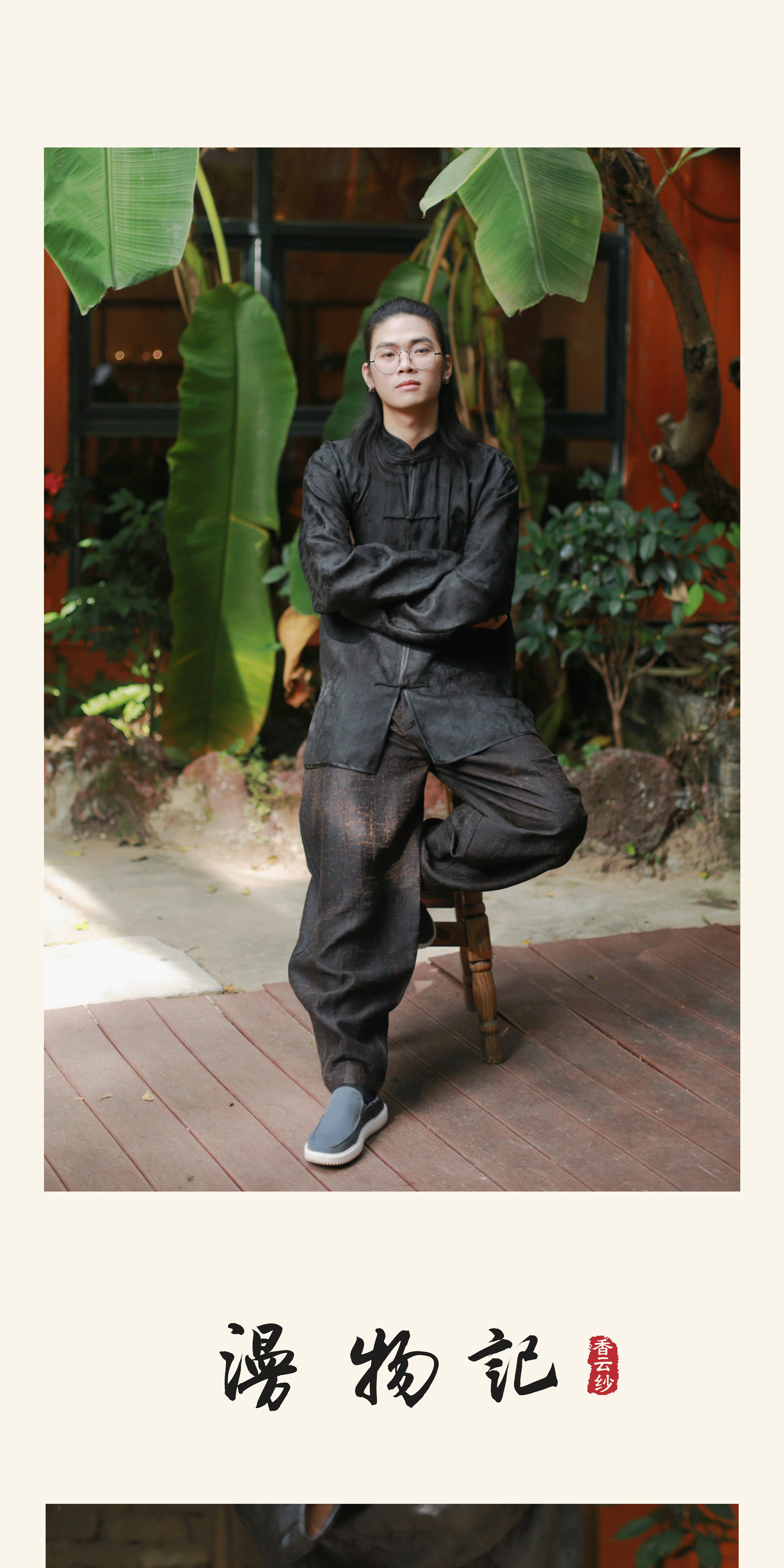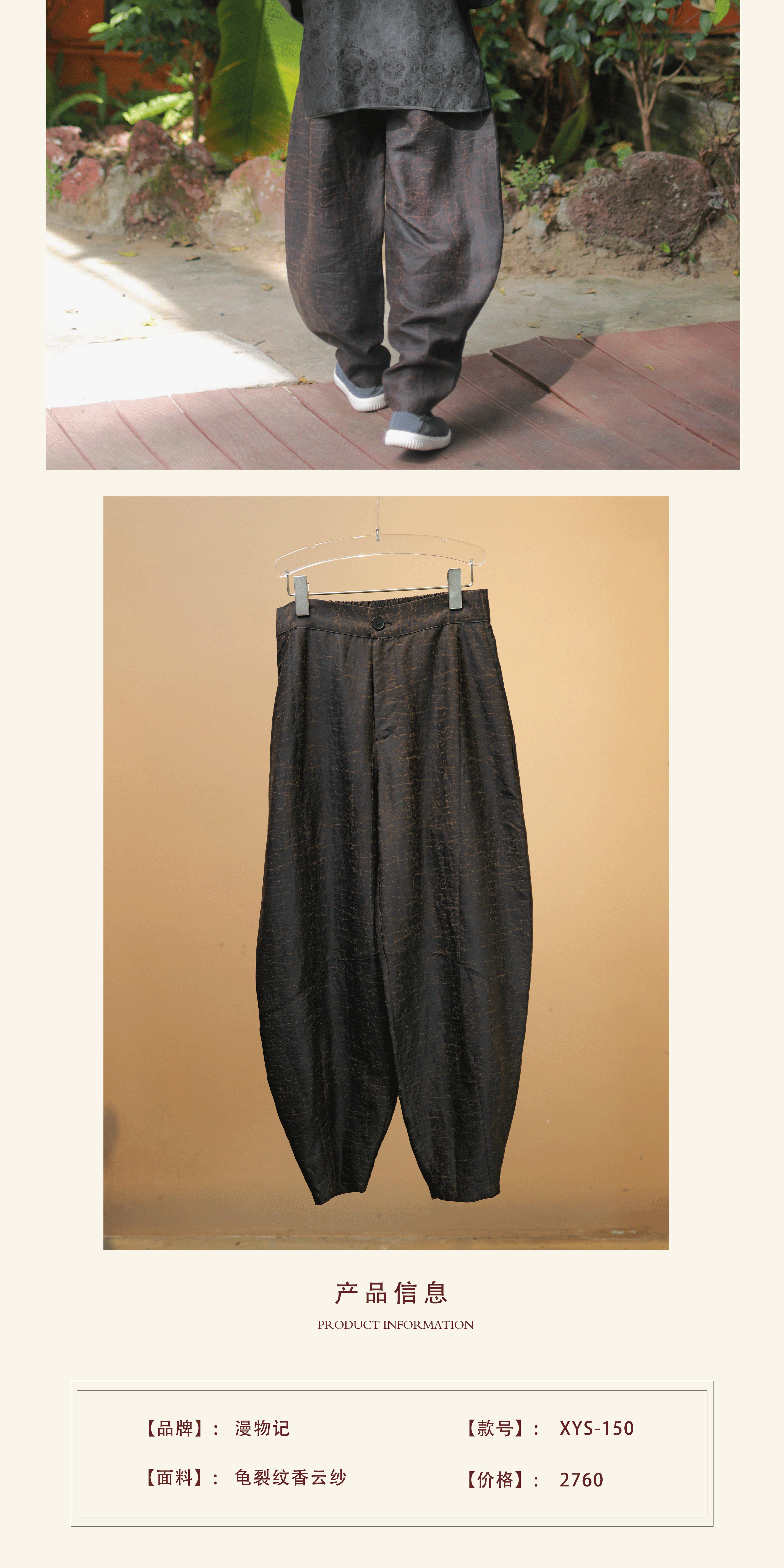 漫物记平板香云纱圆领系带棉上衣xys-318