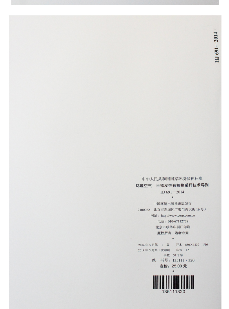 HJ 691-2014 环境空气 半挥发性有机物 采样技术导则 国家标准GB 环境保护 环境科学 135111320