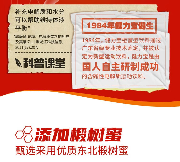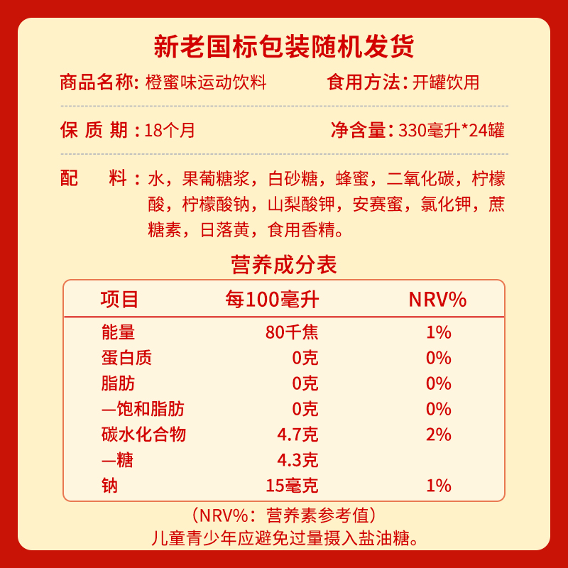 健力宝橙蜜味330ML*6罐 经典款怀旧橙蜜味电解质饮料