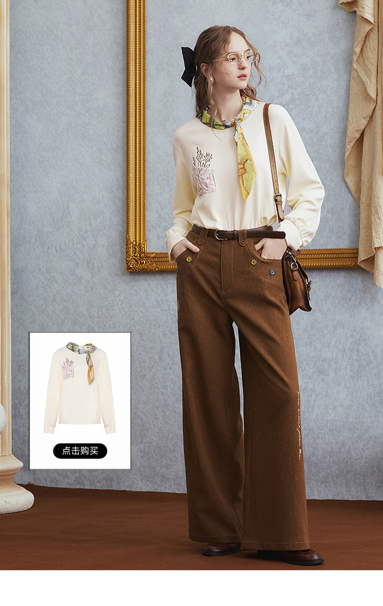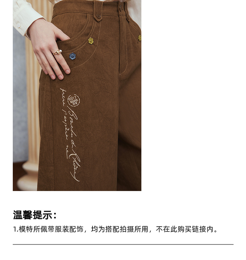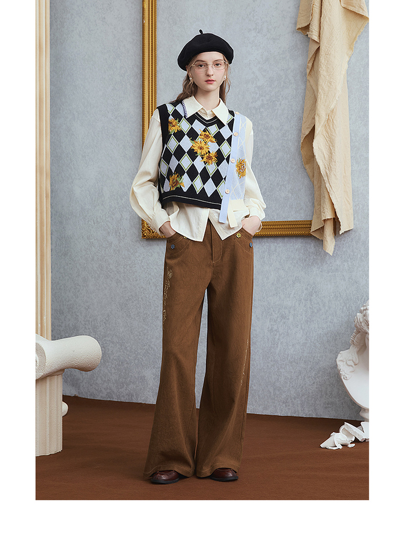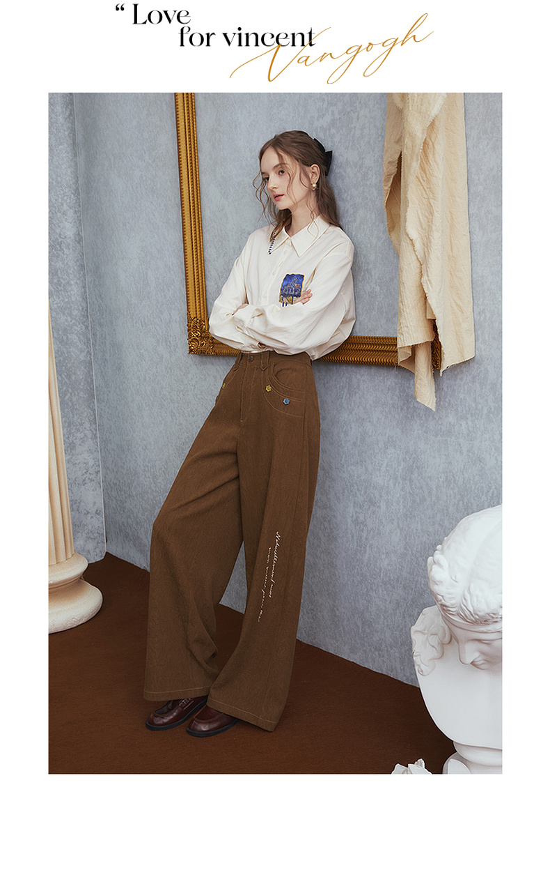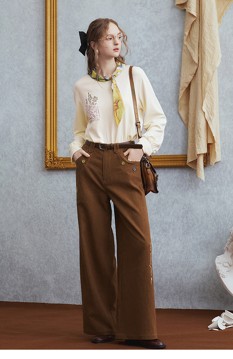 两三事梵高文艺 赭谣漫信 2025秋季新款刺绣纽扣装饰阔腿休闲裤女