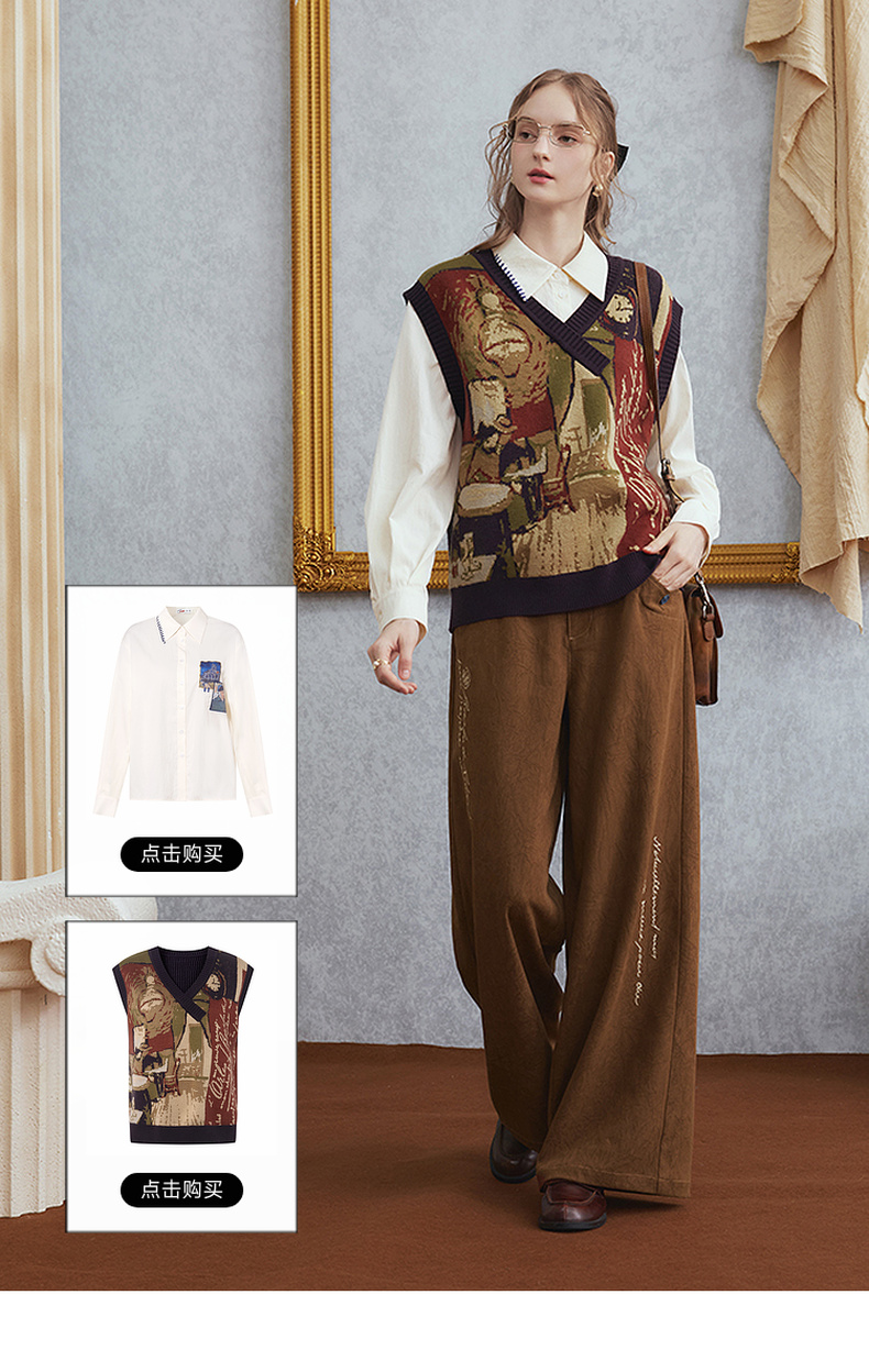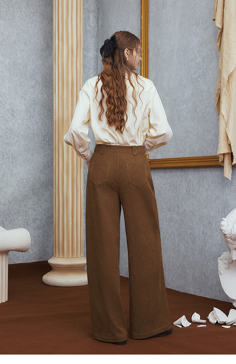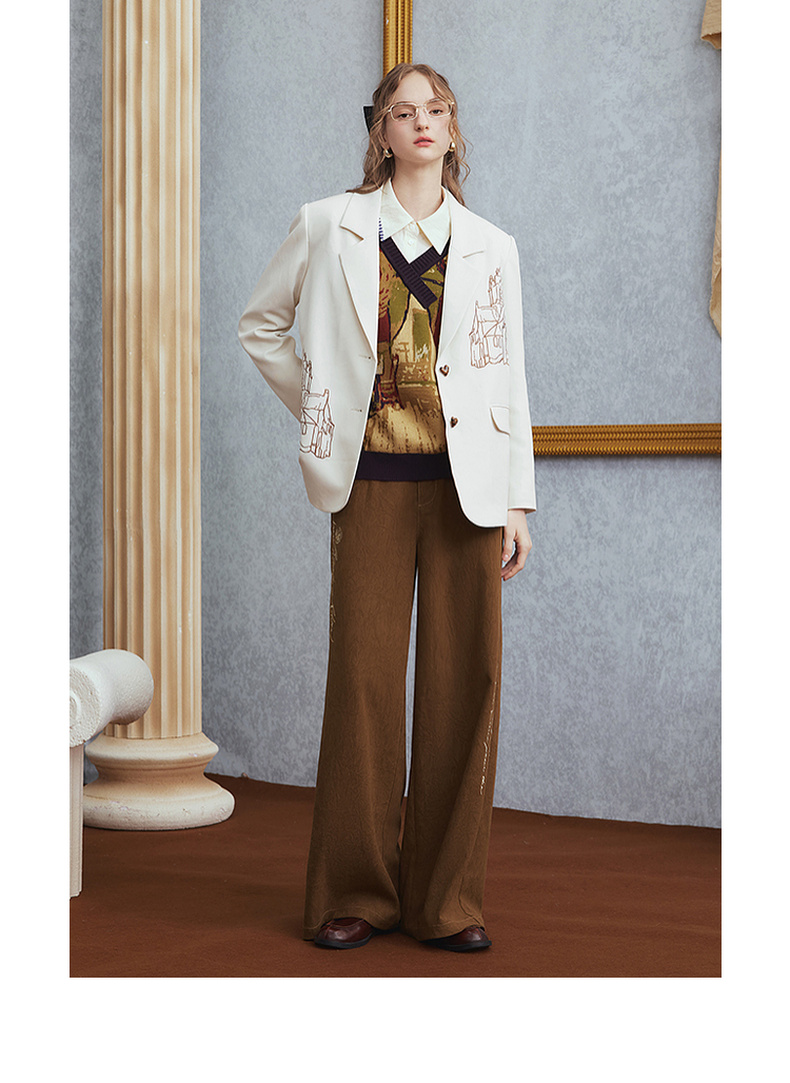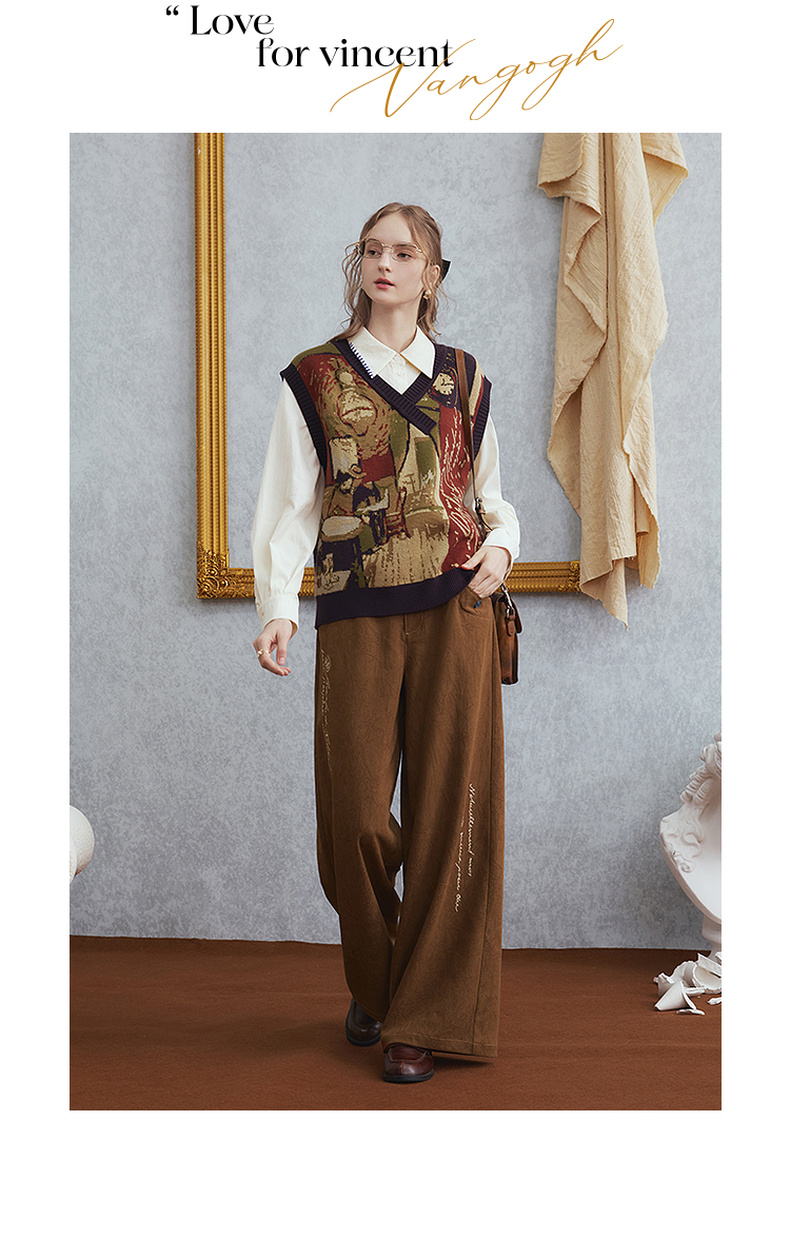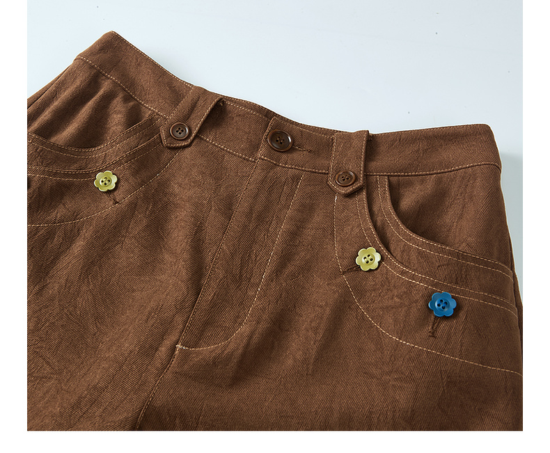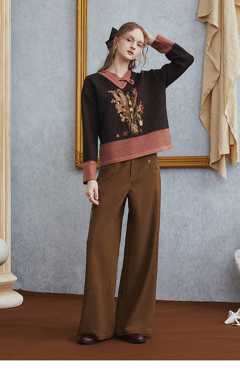 两三事梵高文艺 赭谣漫信 2025秋季新款刺绣纽扣装饰阔腿休闲裤女