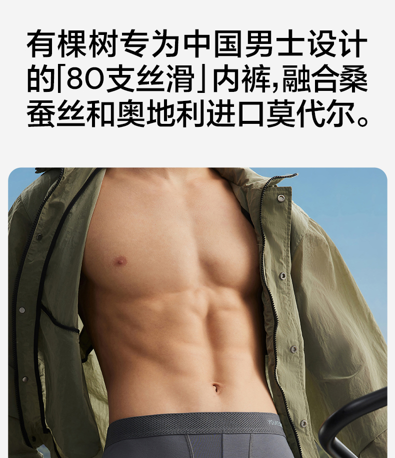 有棵树莫代尔蚕丝裆男士内裤3条装-AU1090