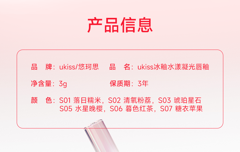 【89任选3支口红】【镜光水润 晶透持光】ukiss悠珂思冰釉水漾凝光唇釉