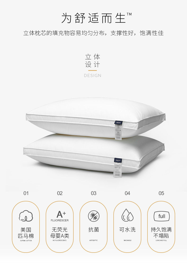 【热卖推荐】自然醒立体羽丝绒枕48*74cm全棉羽丝绒枕头芯舒芯梦乡五星酒店同款枕芯单人护颈椎枕SXM