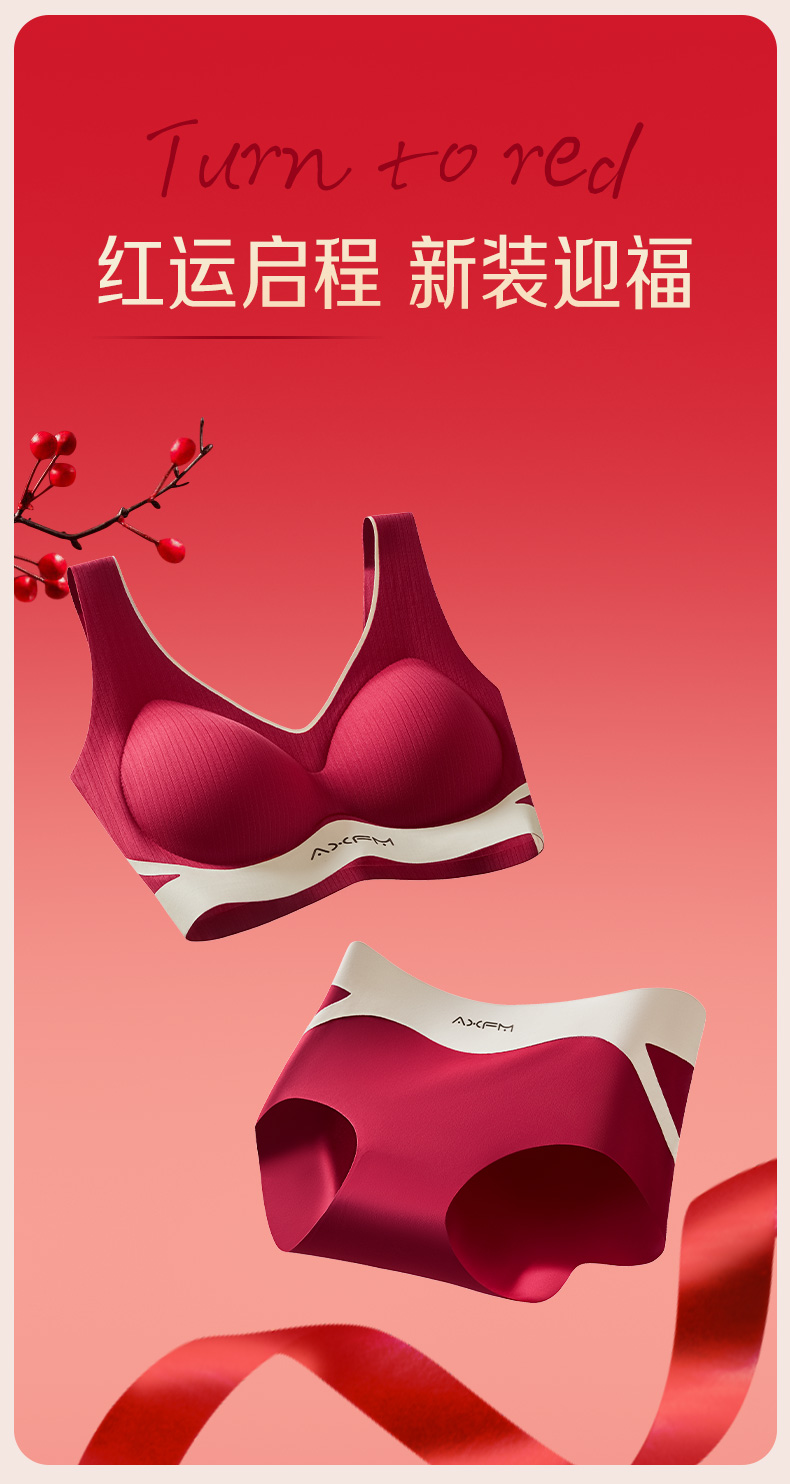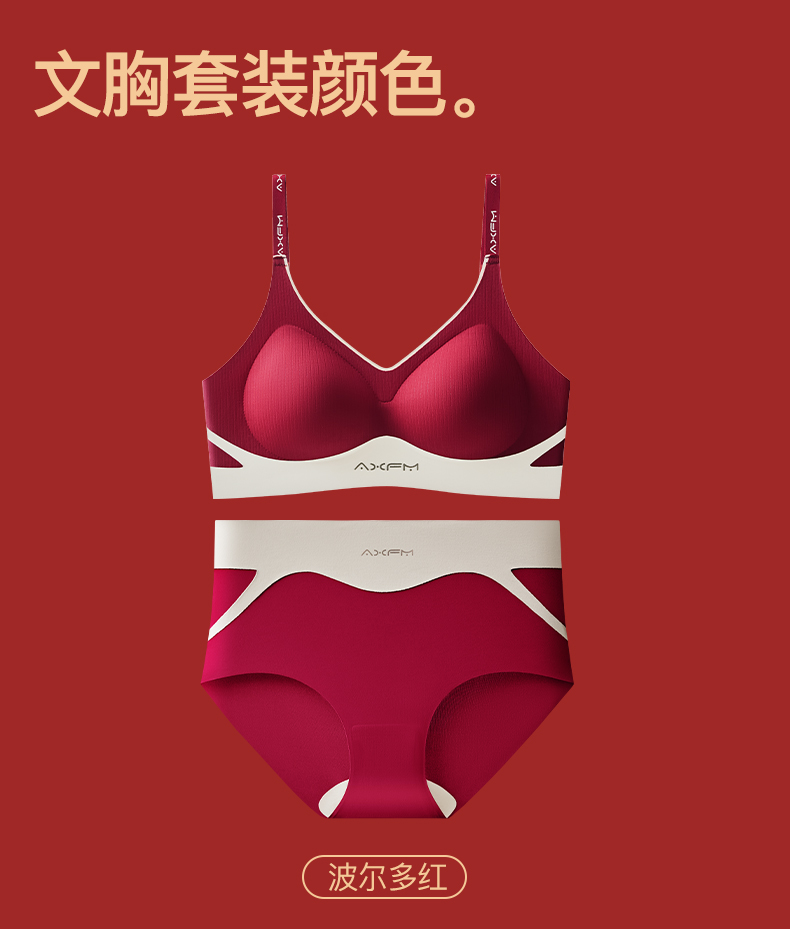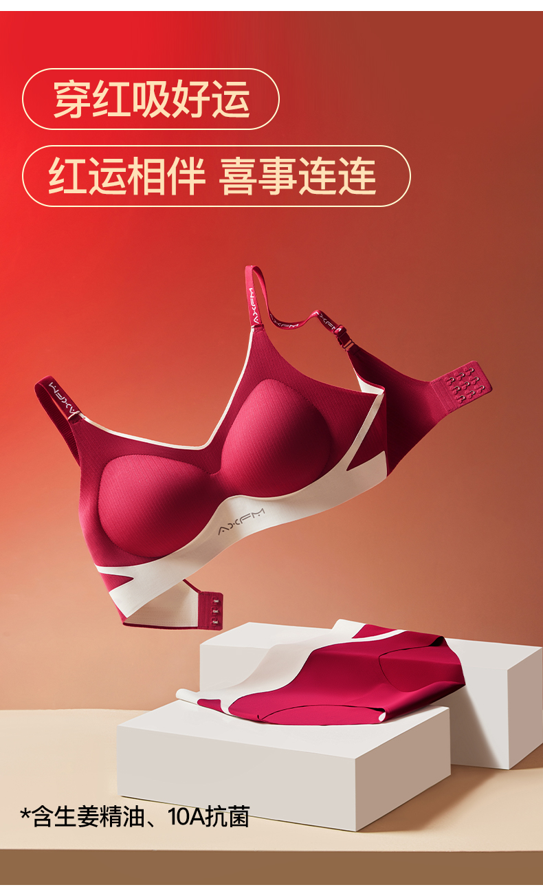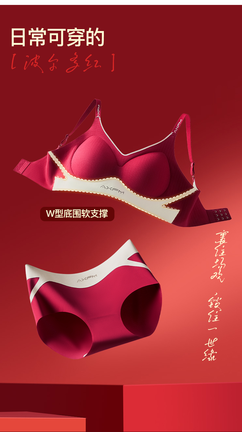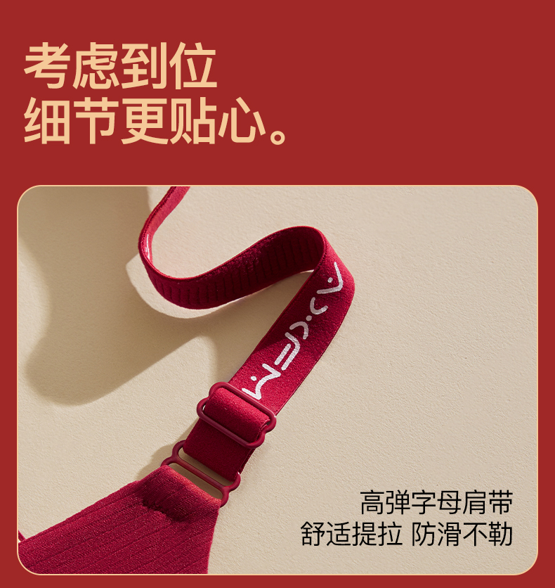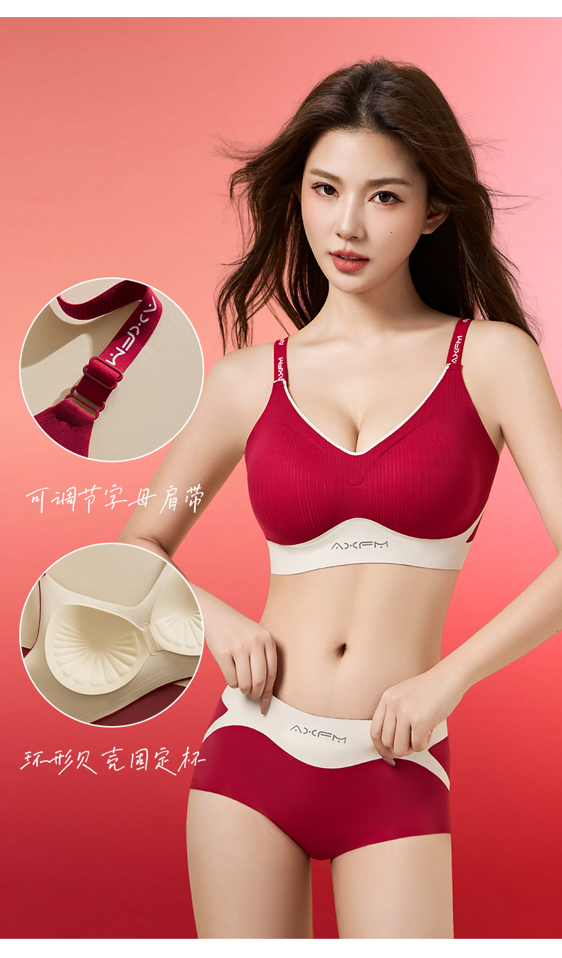 新装红运 一顺到底【喵小仟 新年红运内衣套装】波尔多红 贝壳固定罩杯 10A抗菌生姜暖护 字母肩带&宽肩带 两款可选