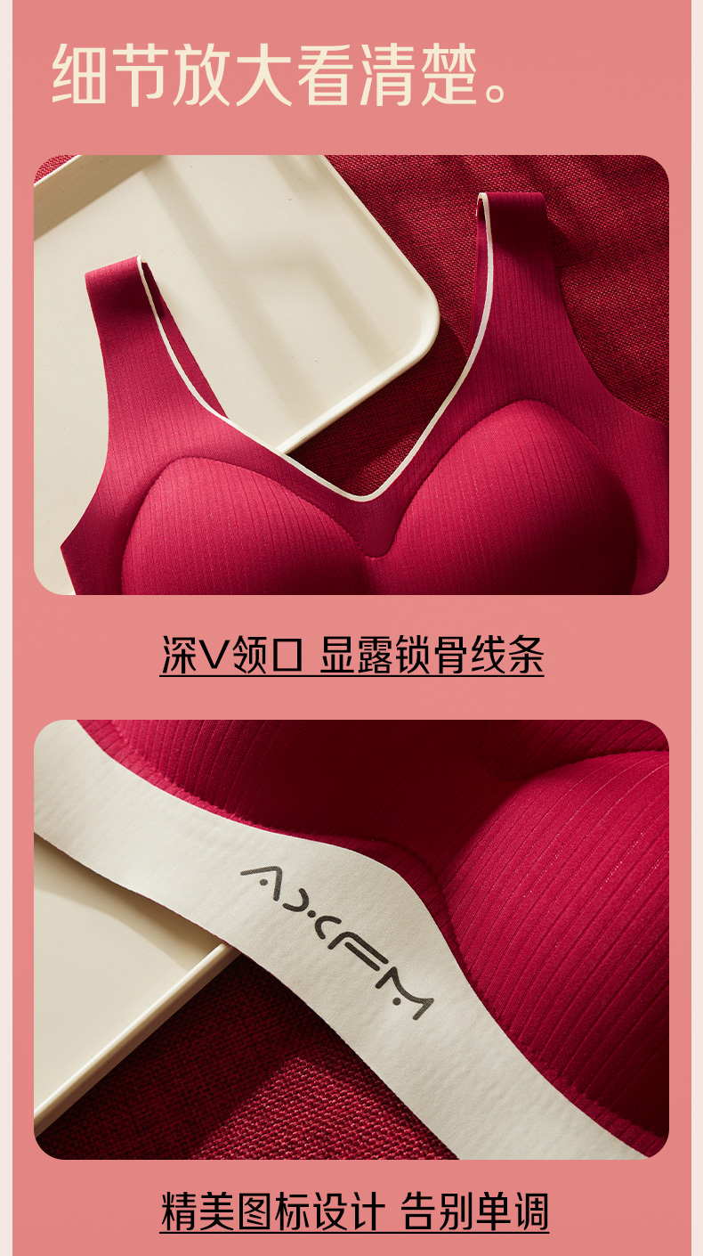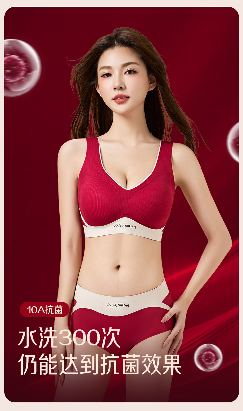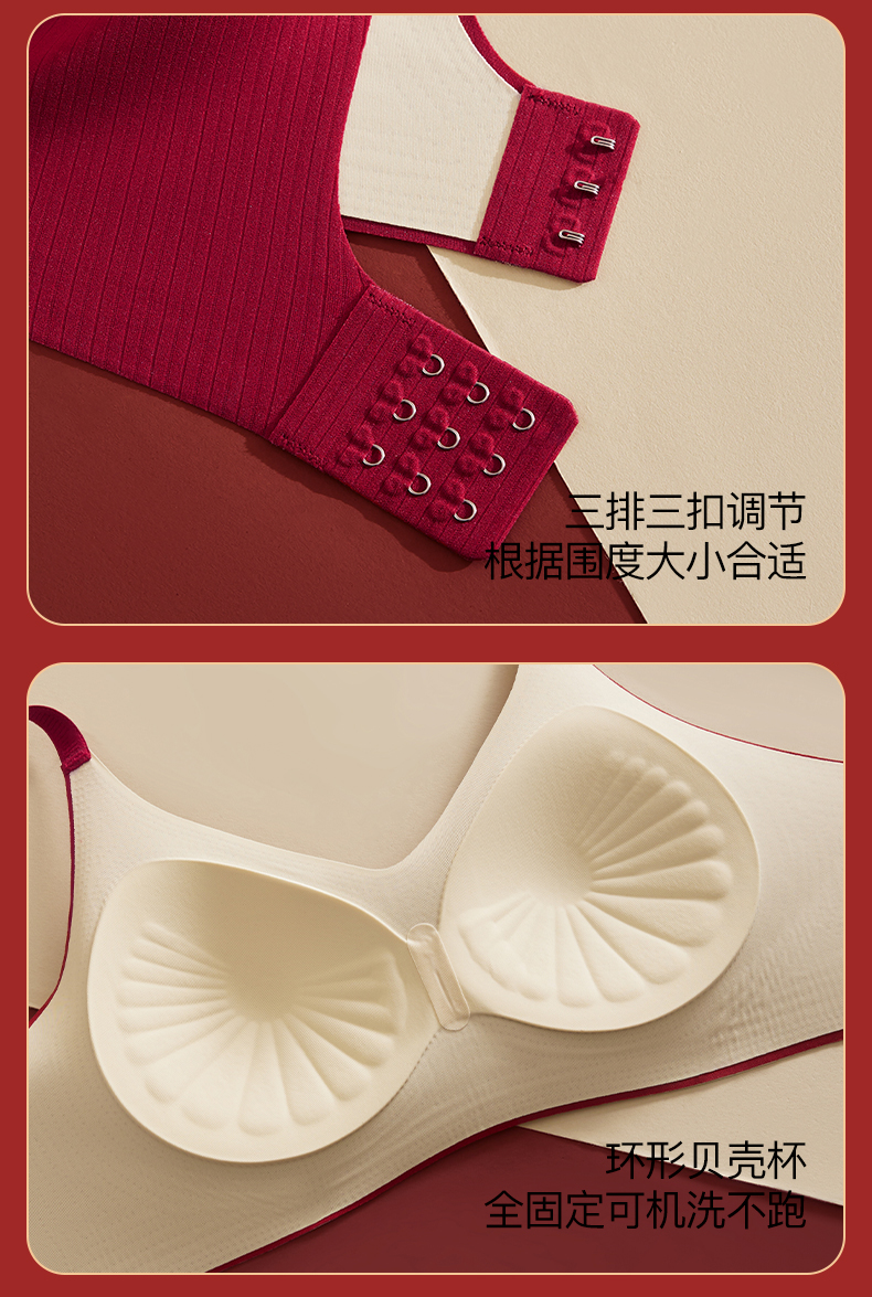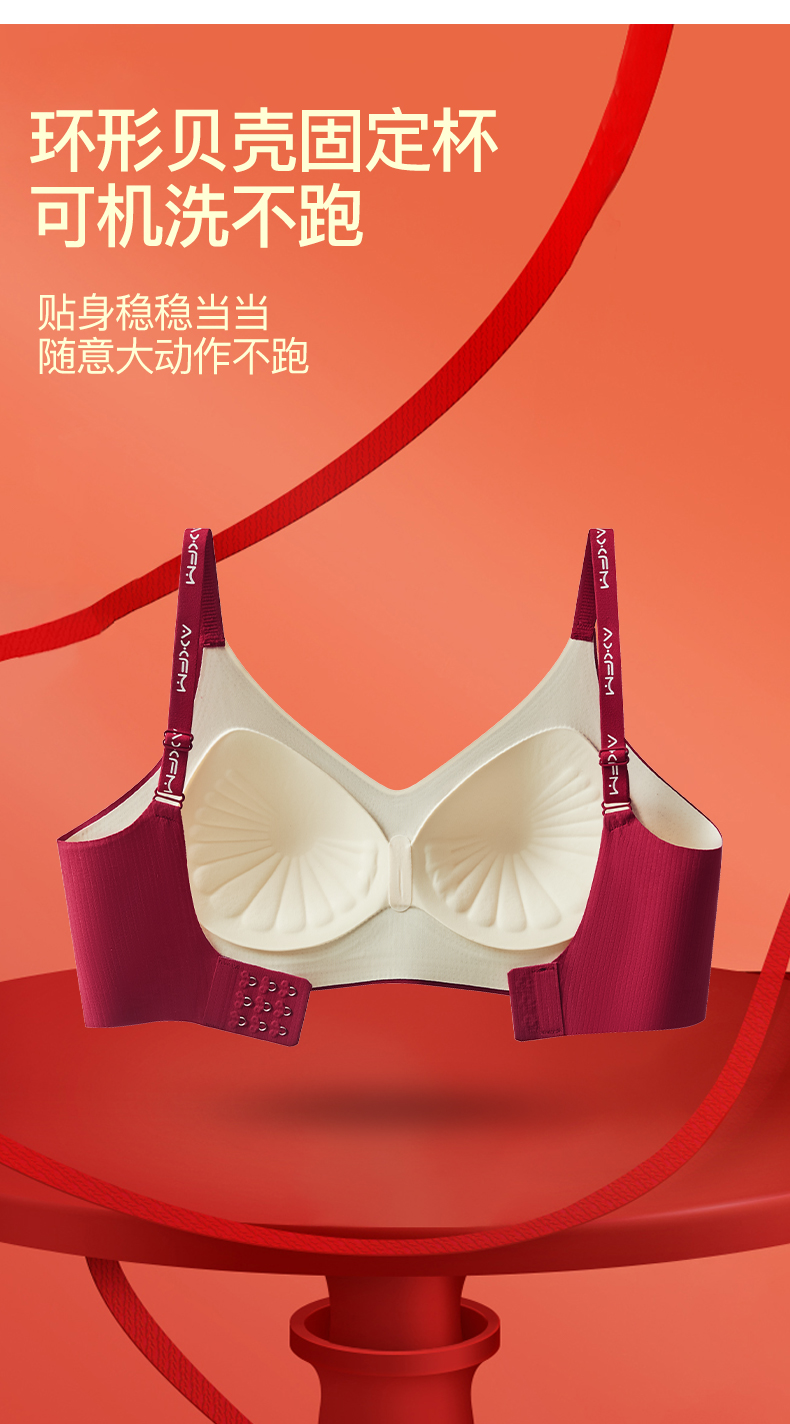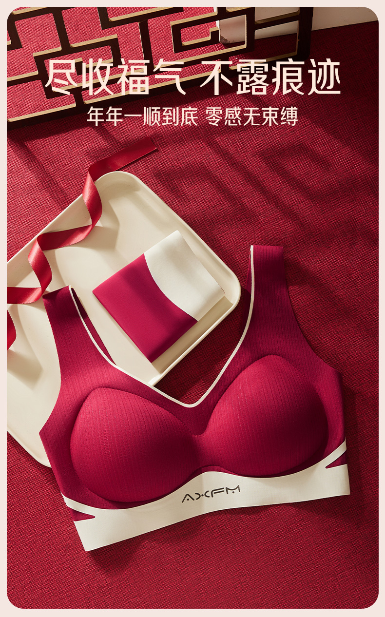 新装红运 一顺到底【喵小仟 新年红运内衣套装】波尔多红 贝壳固定罩杯 10A抗菌生姜暖护 字母肩带&宽肩带 两款可选