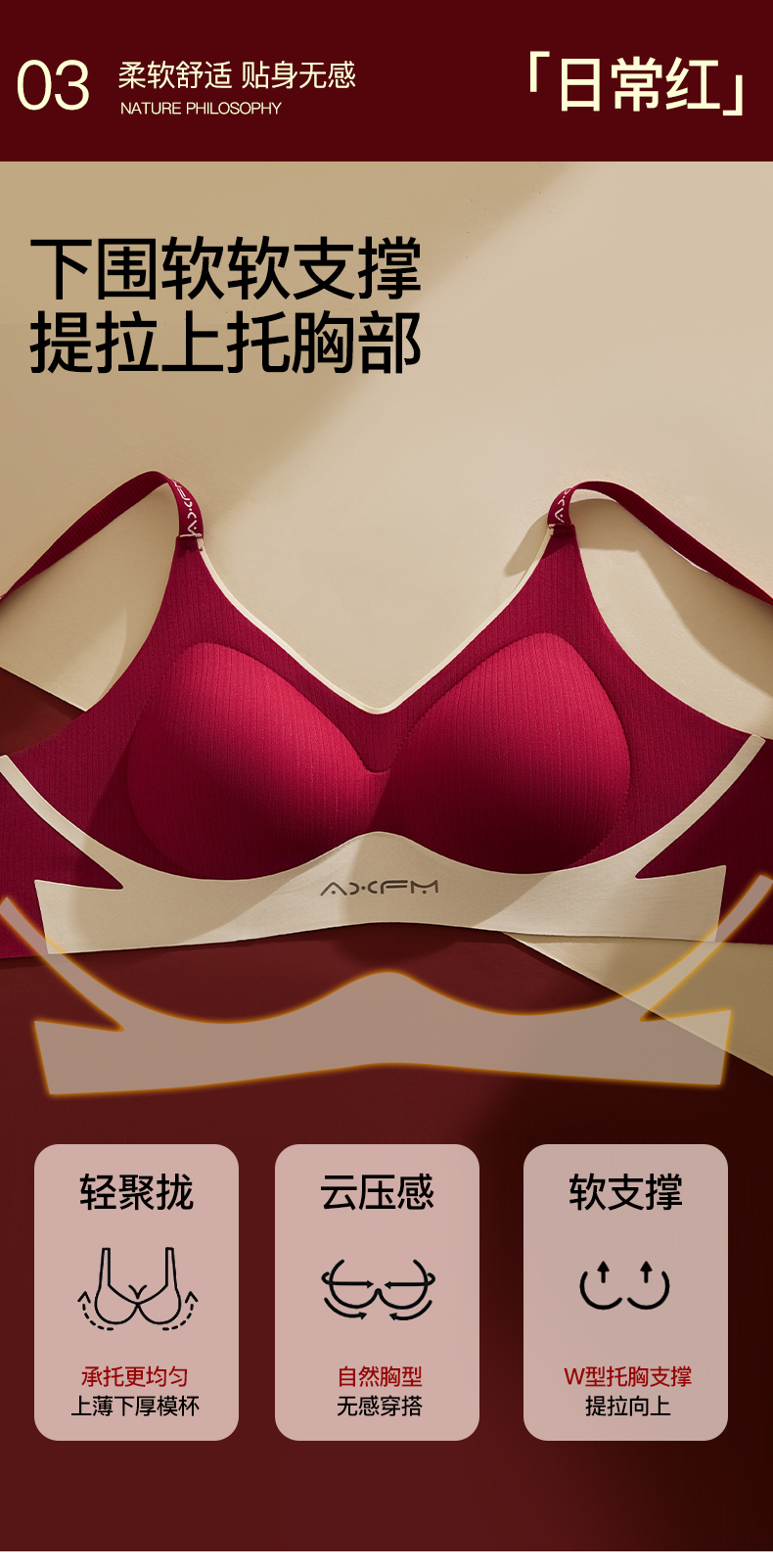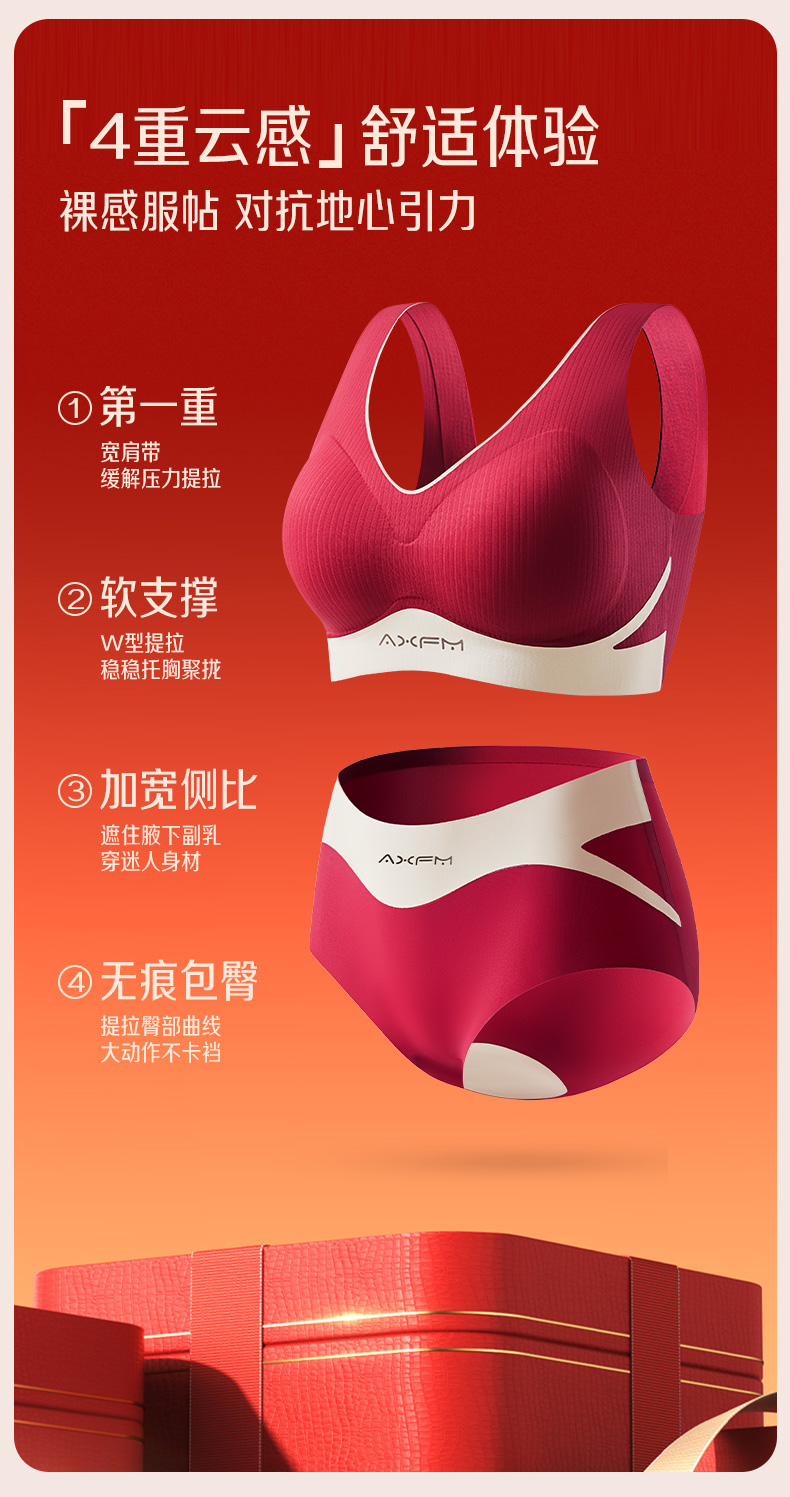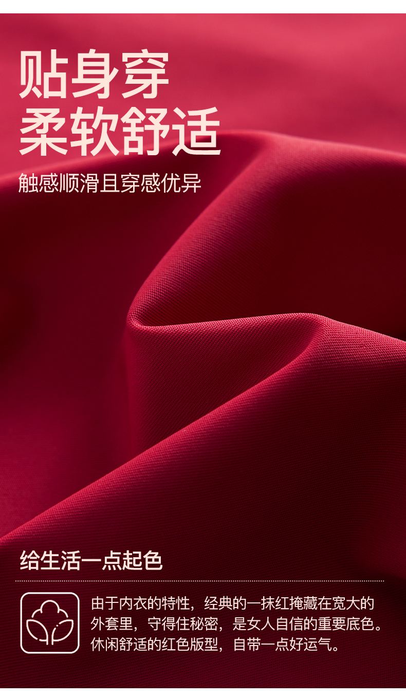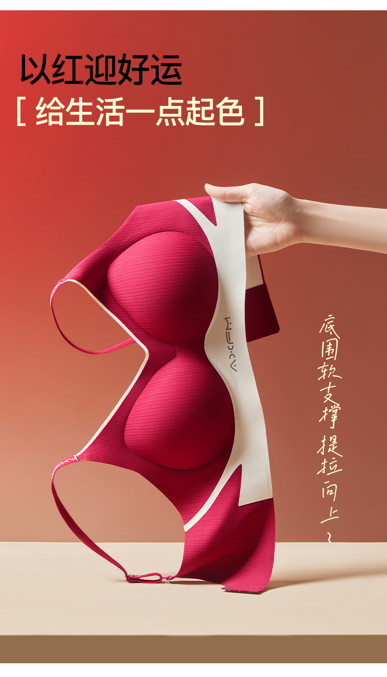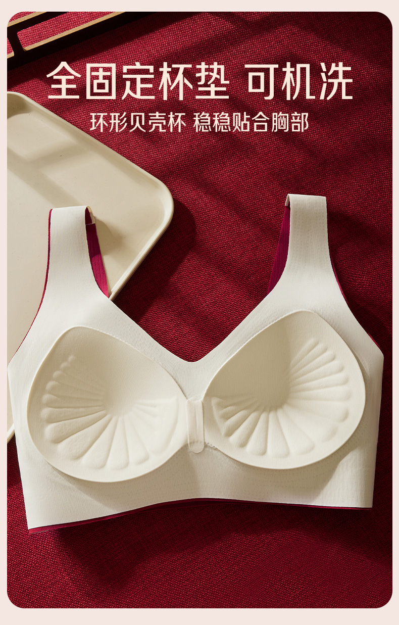 新装红运 一顺到底【喵小仟 新年红运内衣套装】波尔多红 贝壳固定罩杯 10A抗菌生姜暖护 字母肩带&宽肩带 两款可选