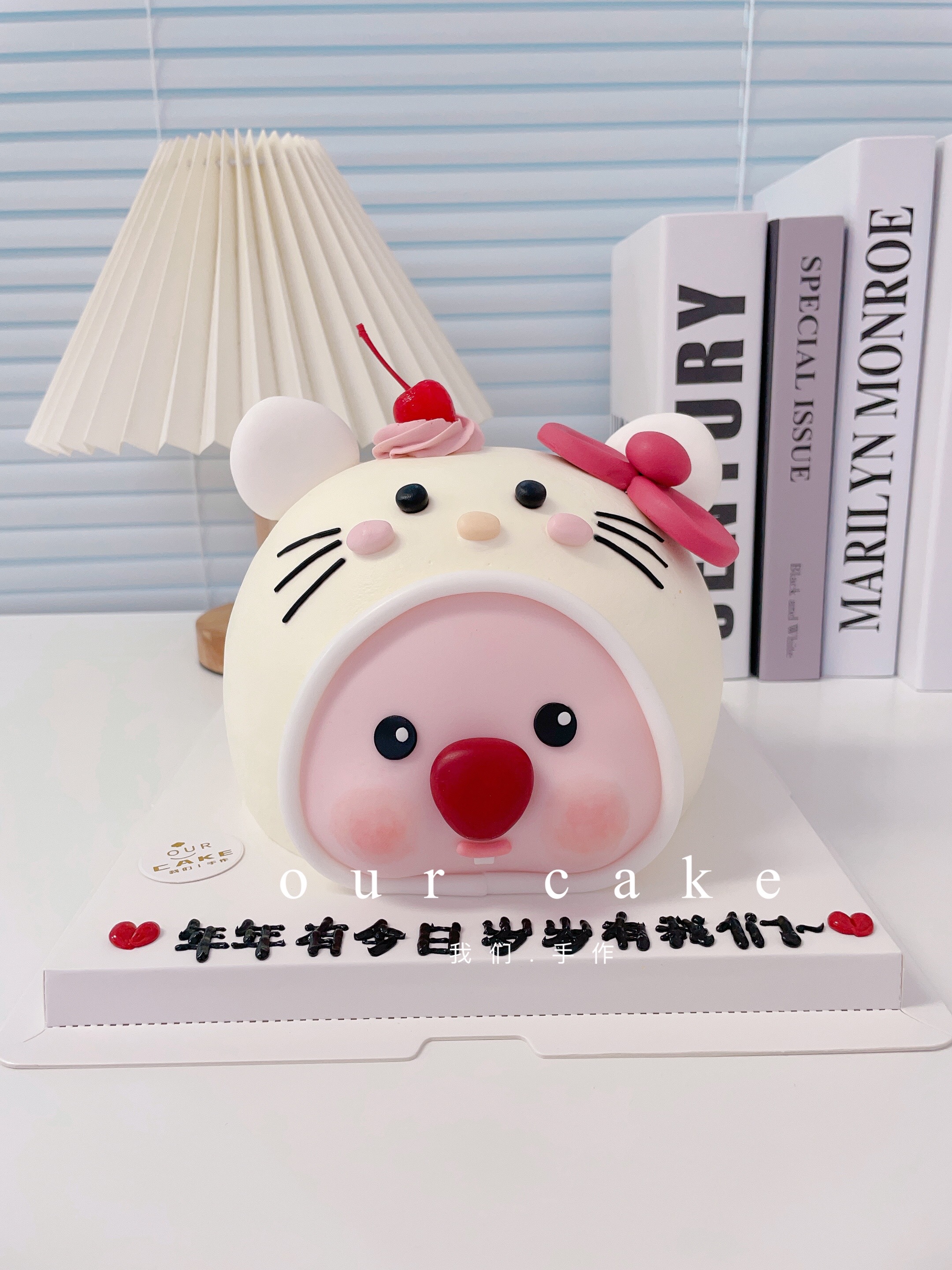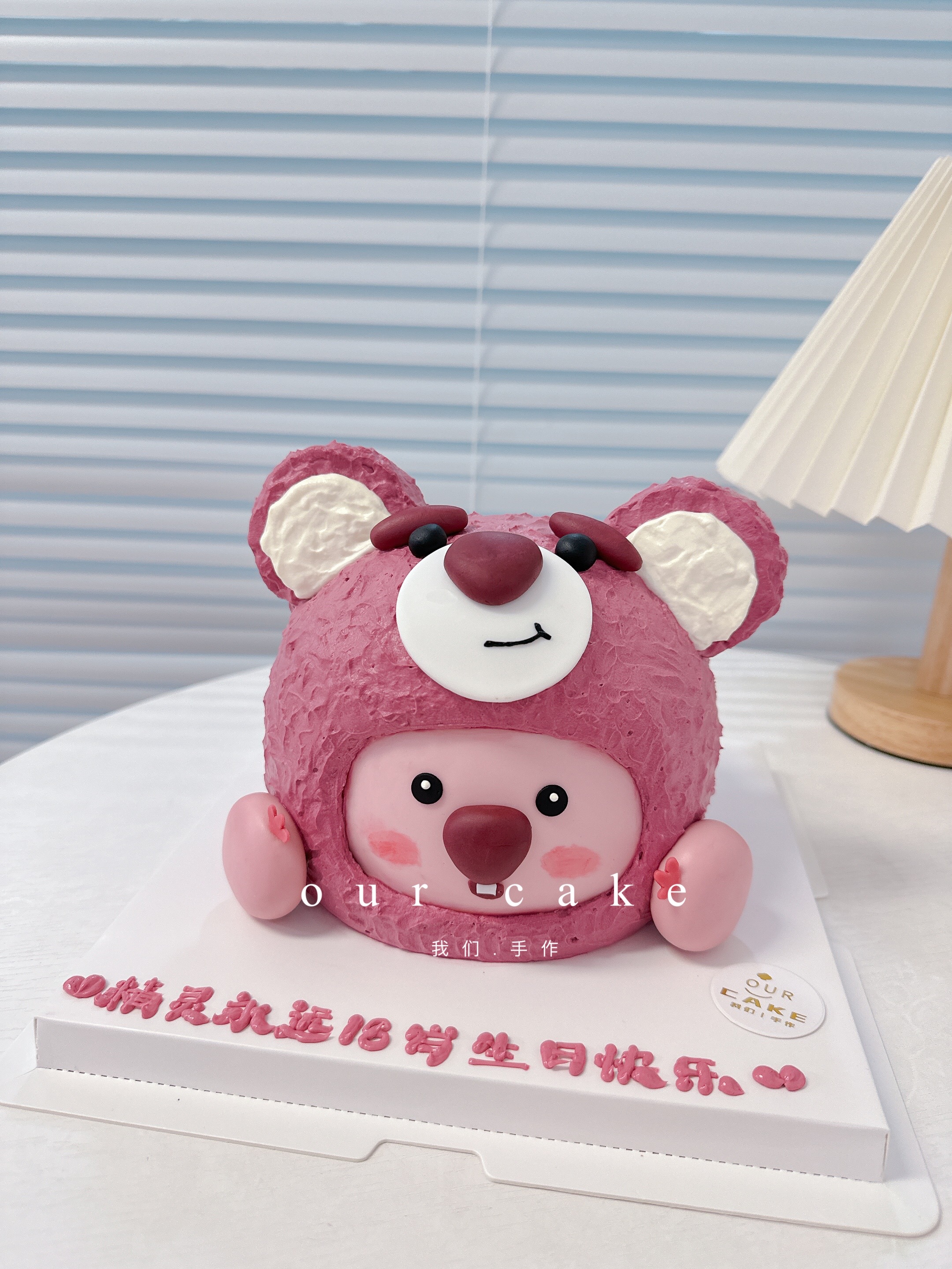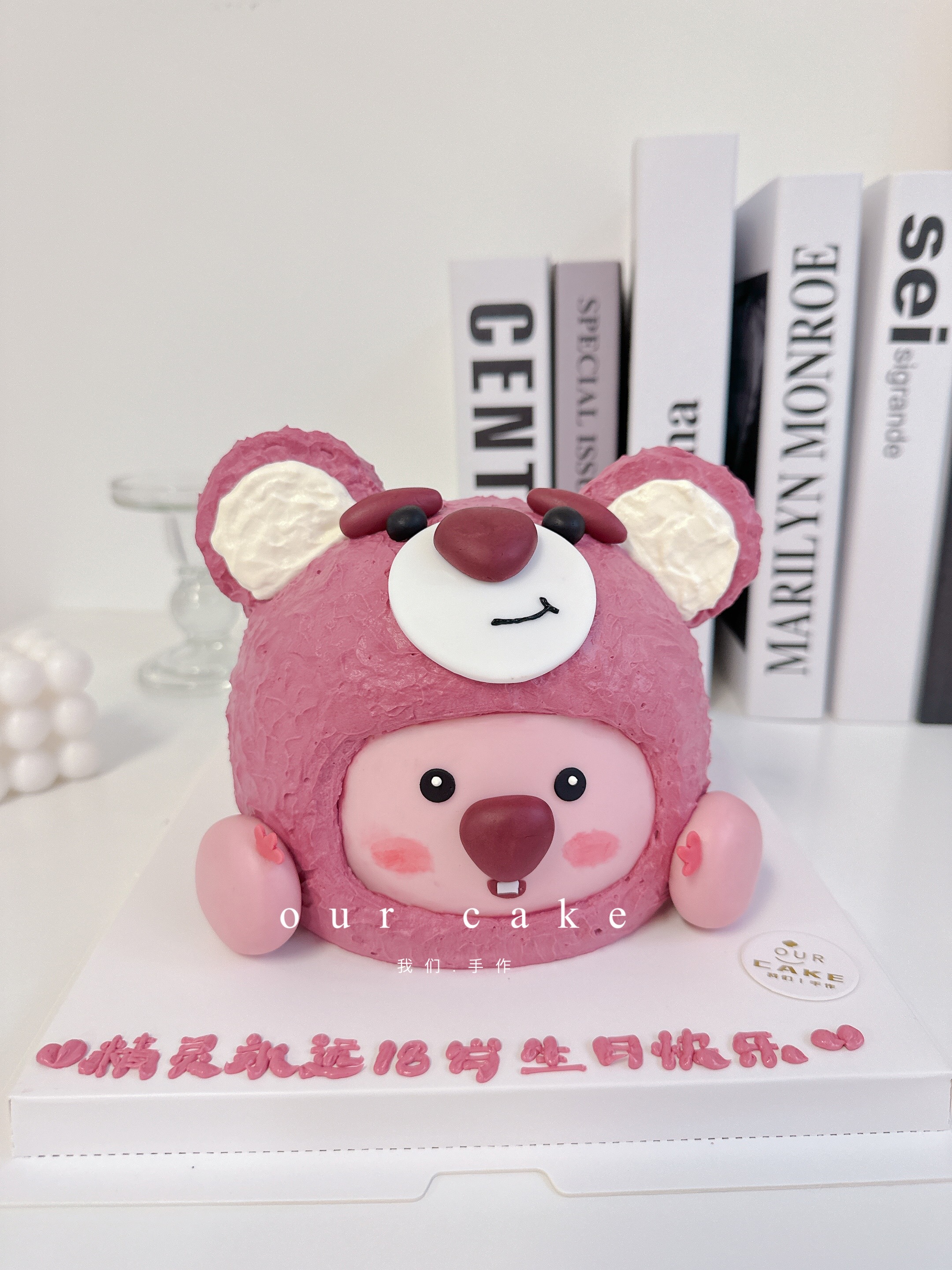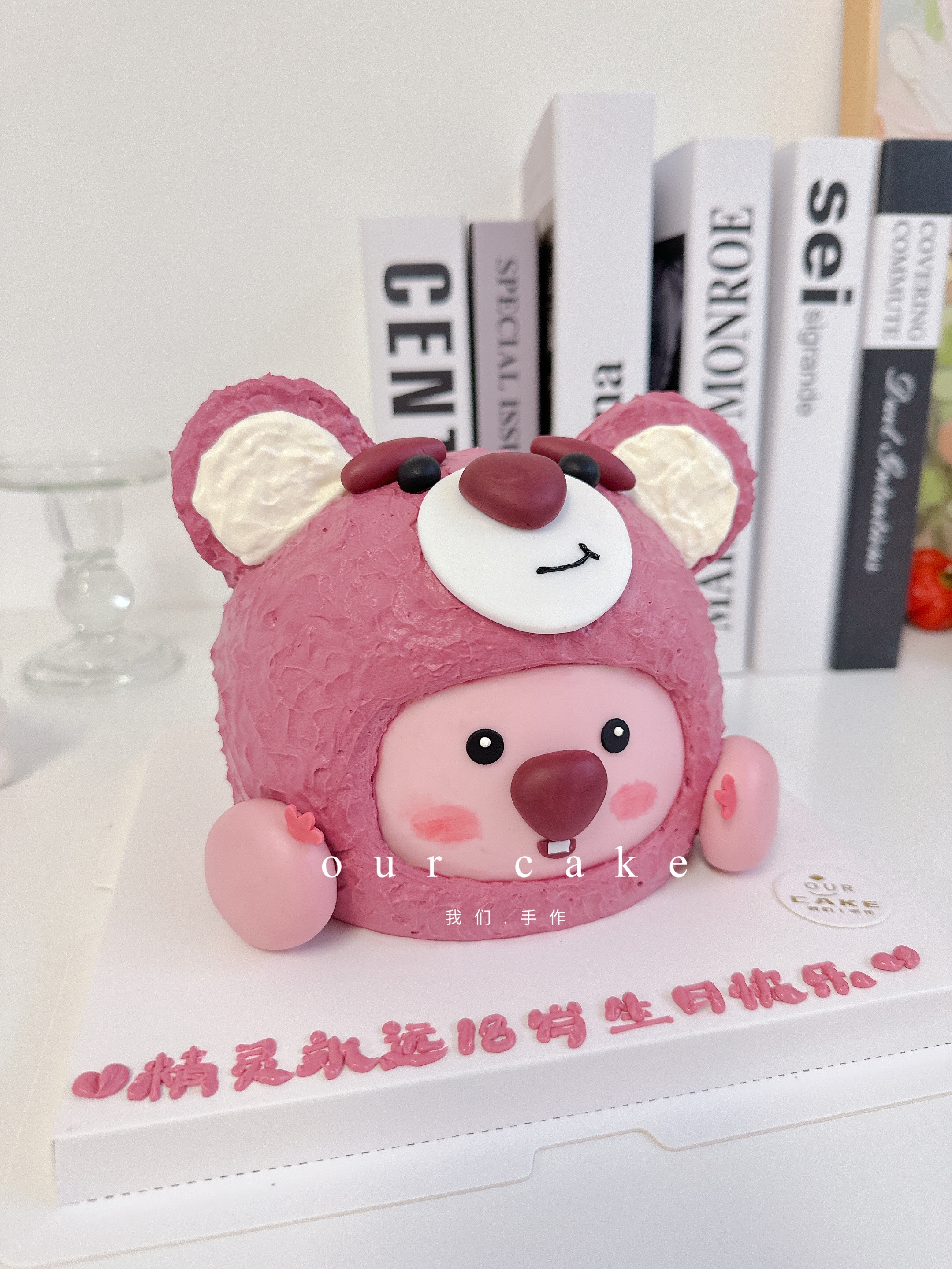 小海狸loopy草莓熊合体版卡通蛋糕-低糖处理无添加