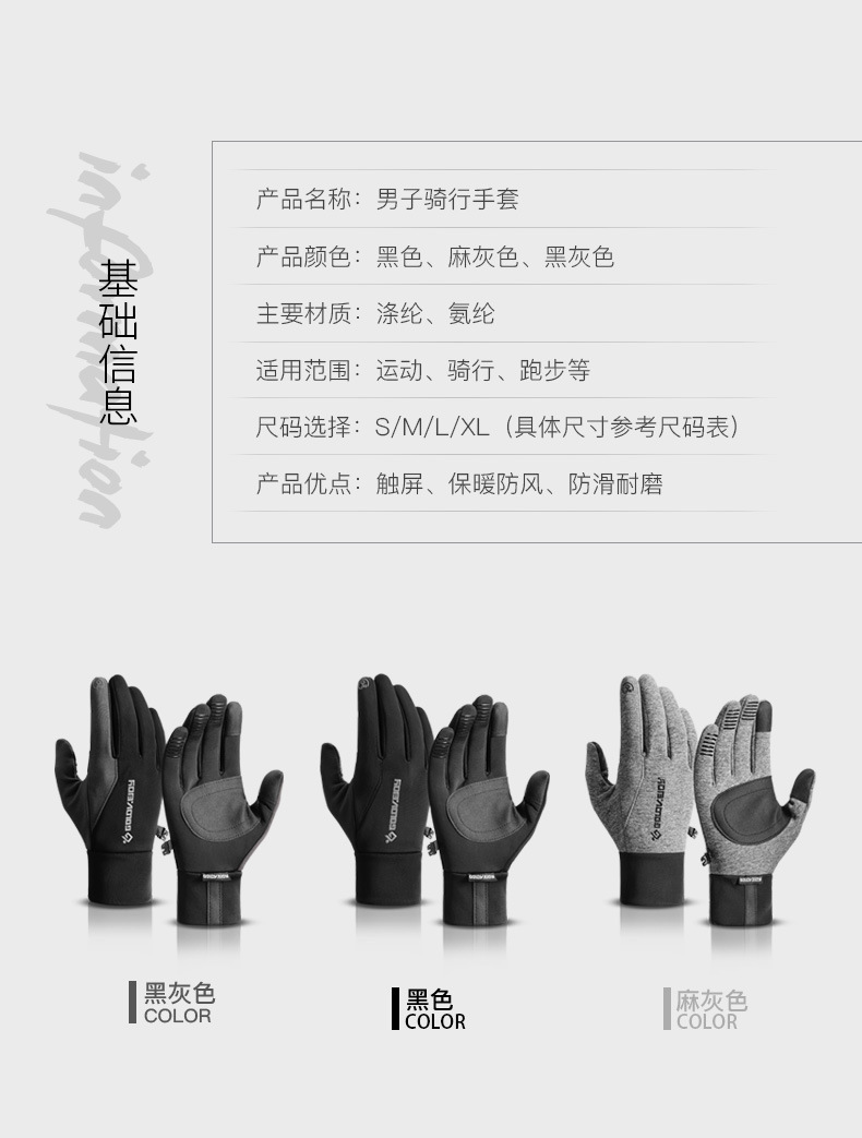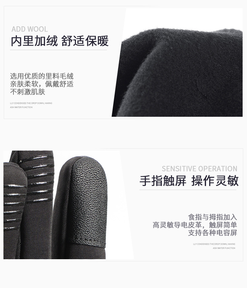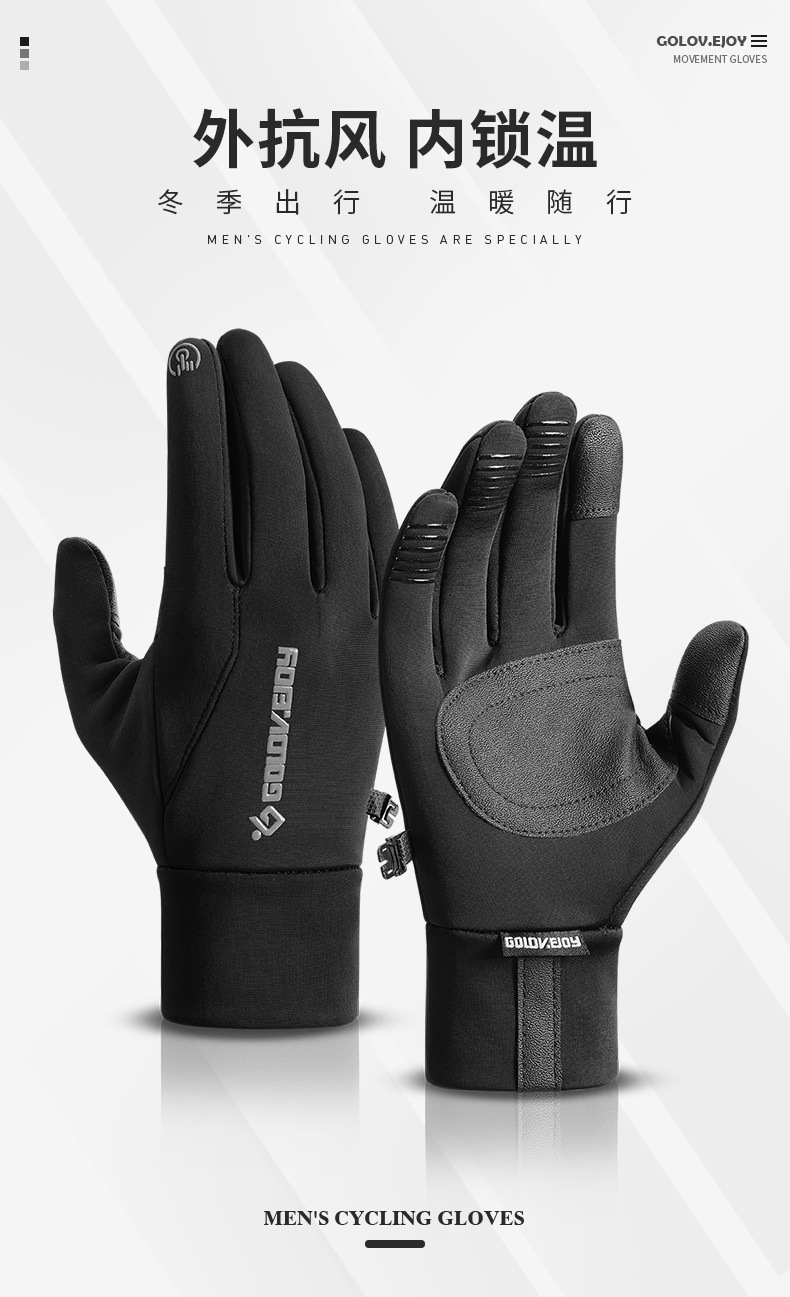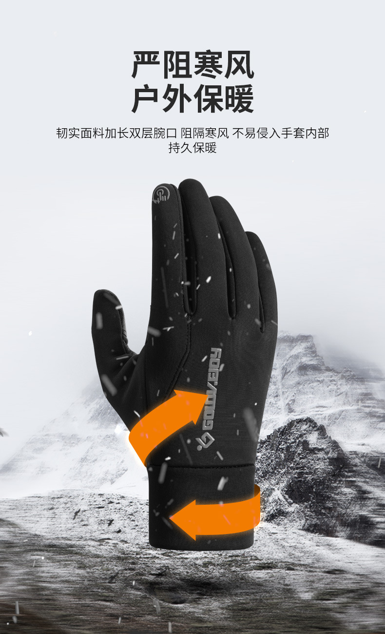冬季骑行手套男士保暖户外运动防风防水加厚绒防滑电动车触屏手套