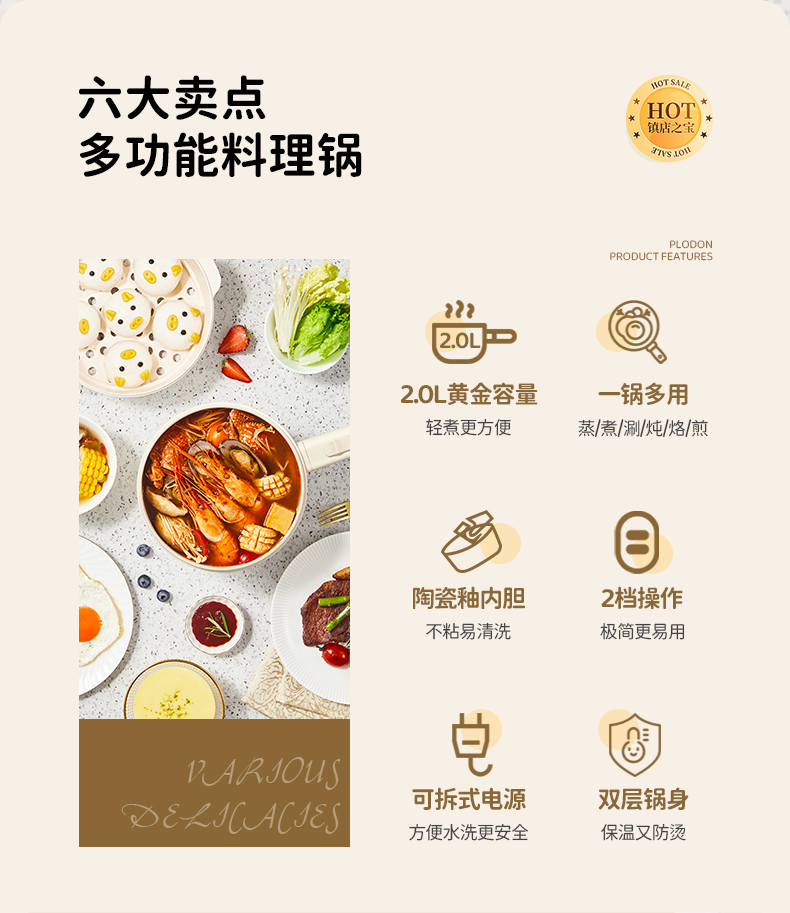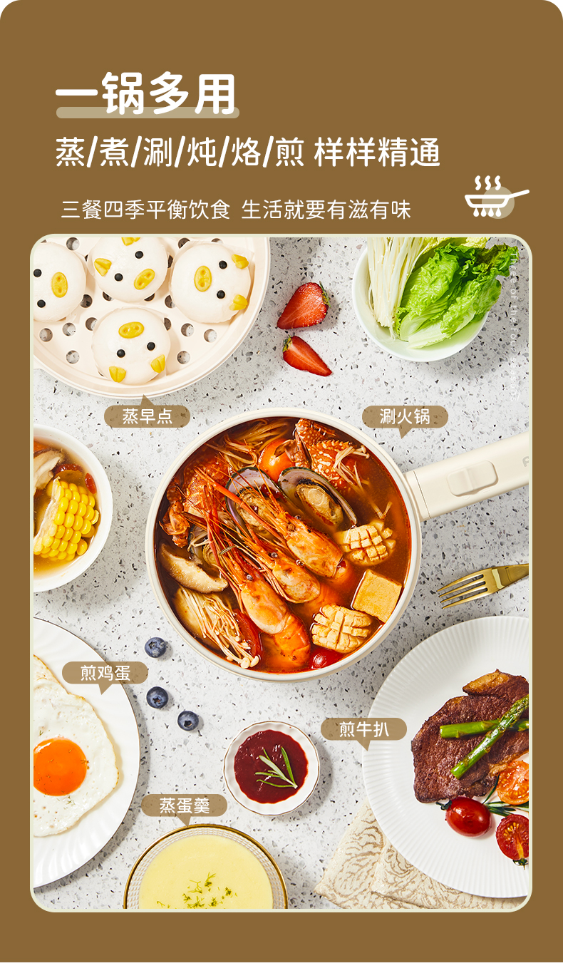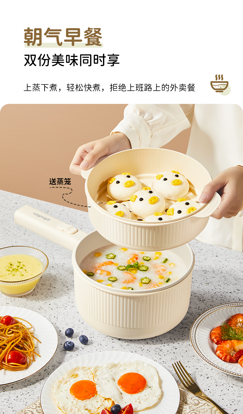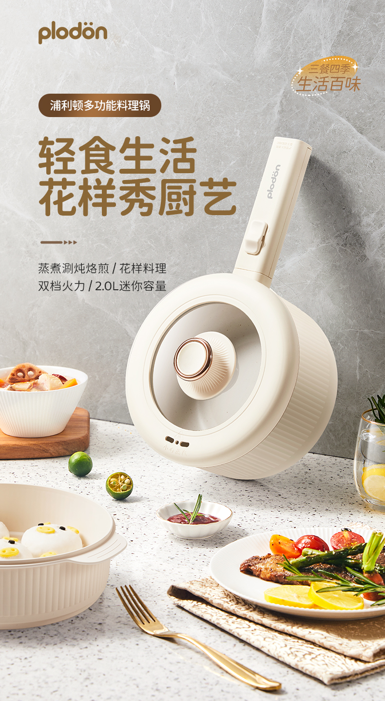 plodon浦利顿辅食锅婴儿多功能蒸煮一体电火锅电煮锅PLD-XZG-20A