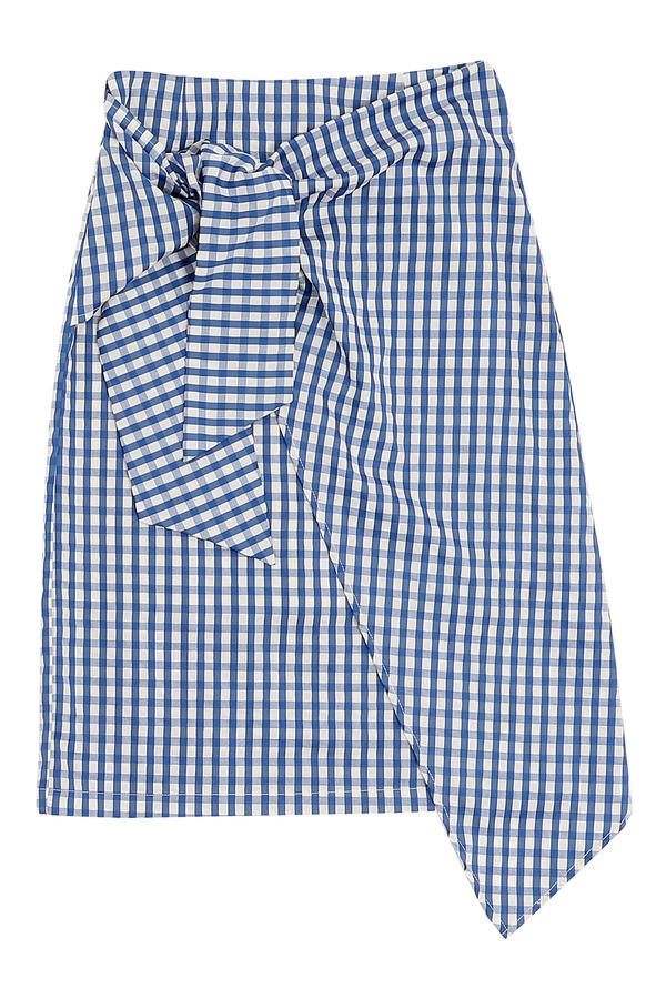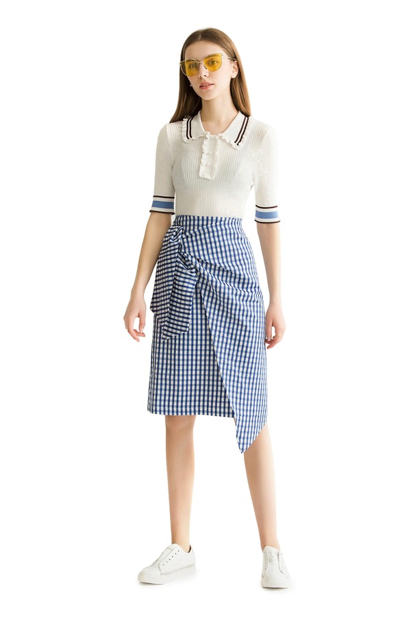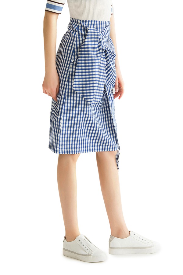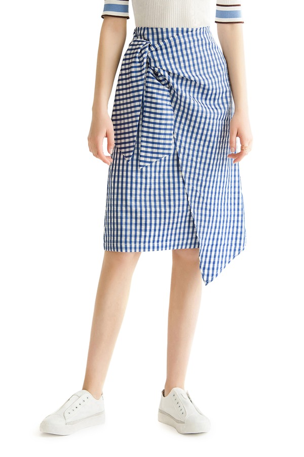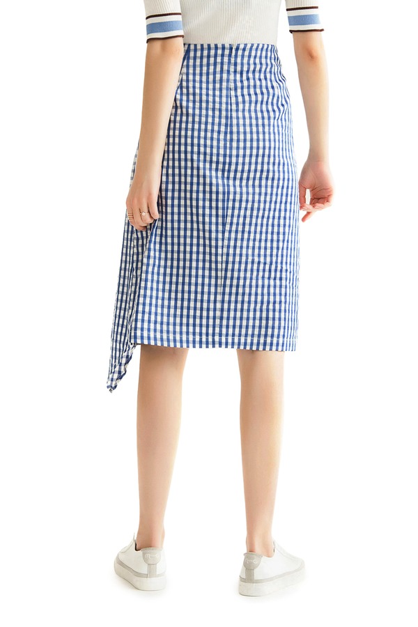 EMC亿美丞 蓝色格纹仿围裹式半裙 1108