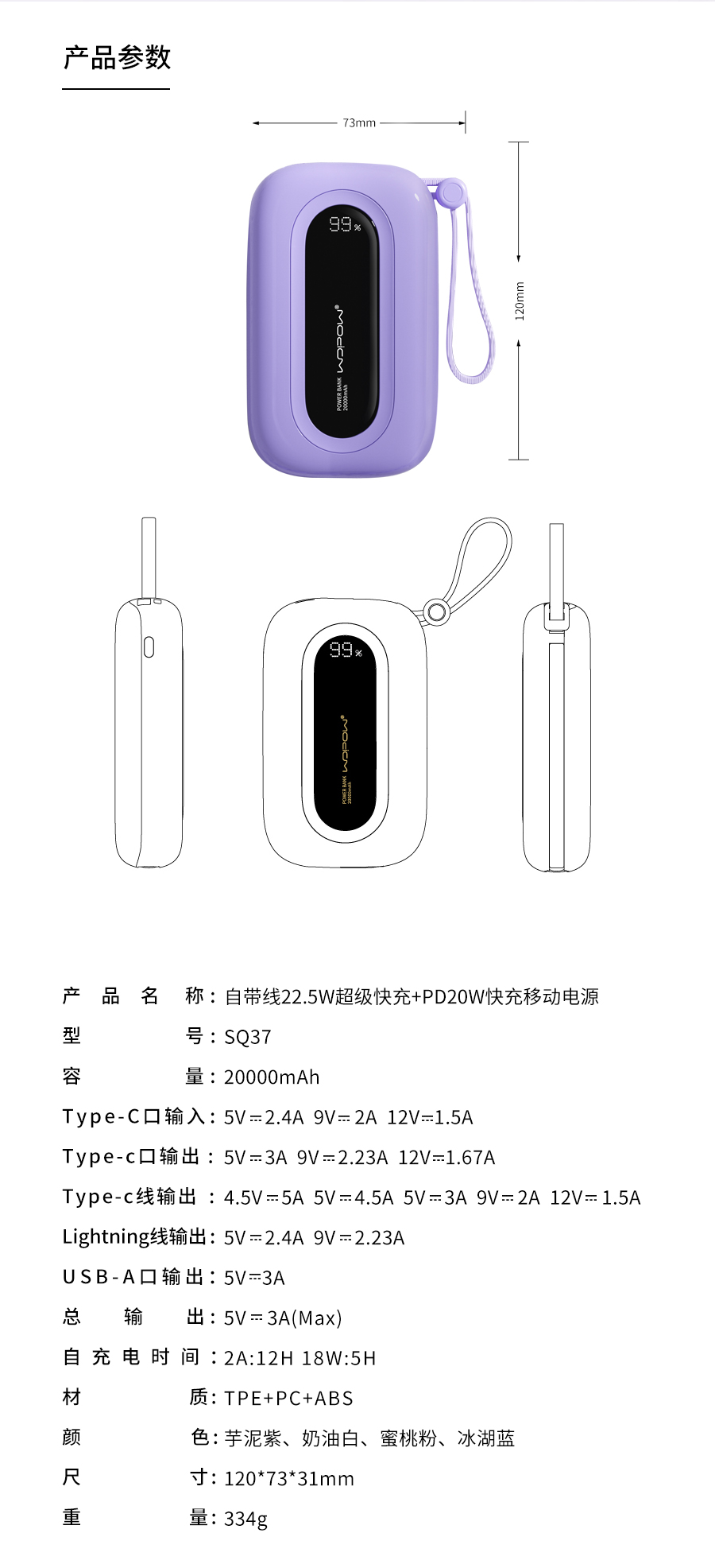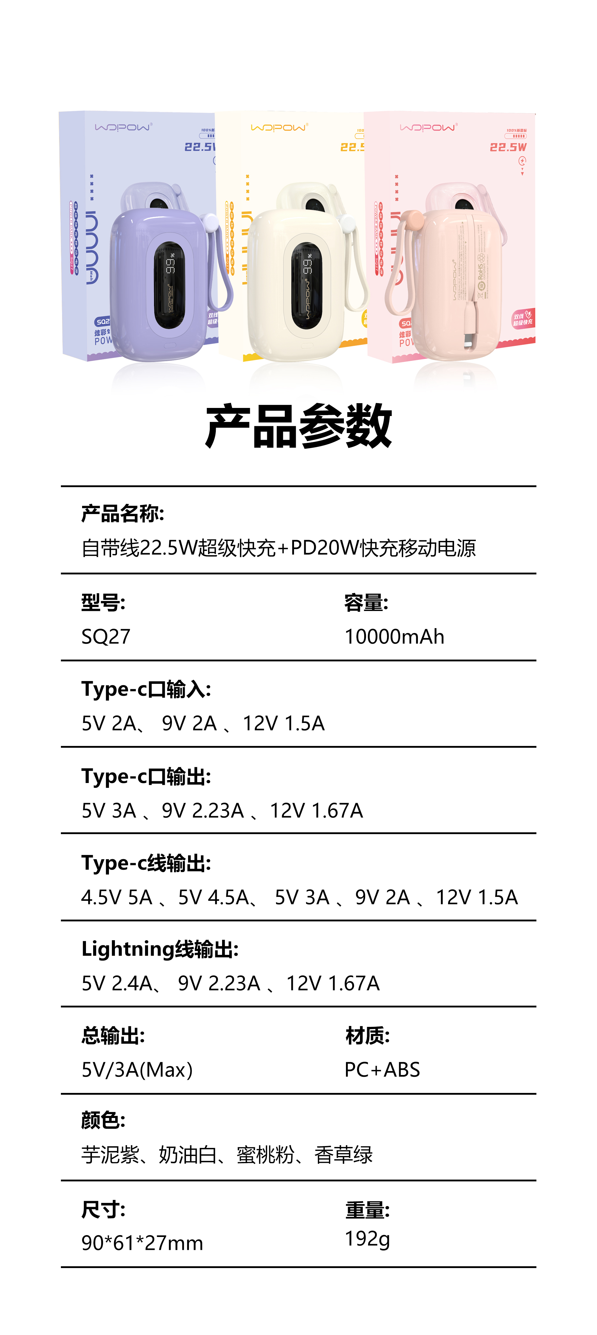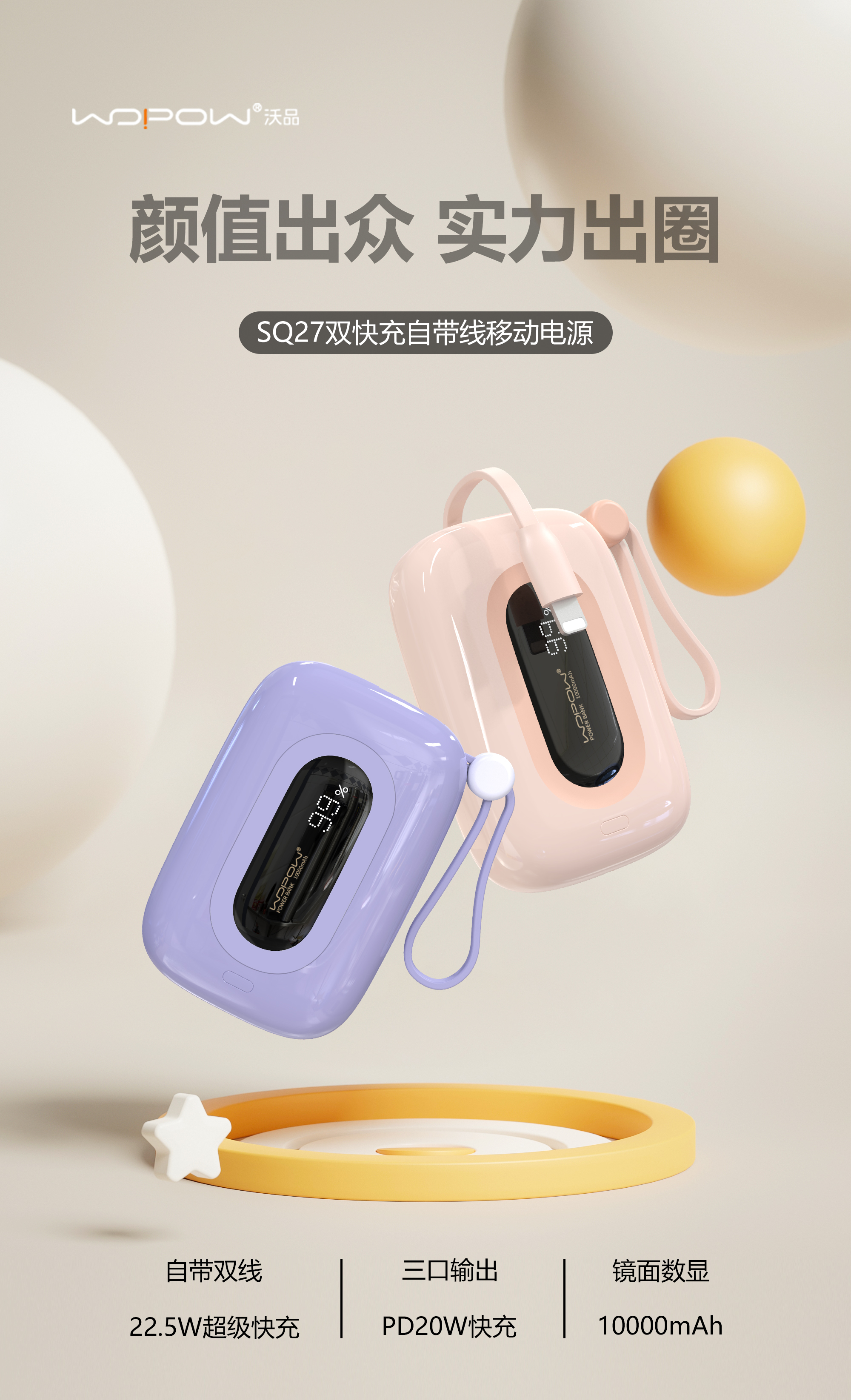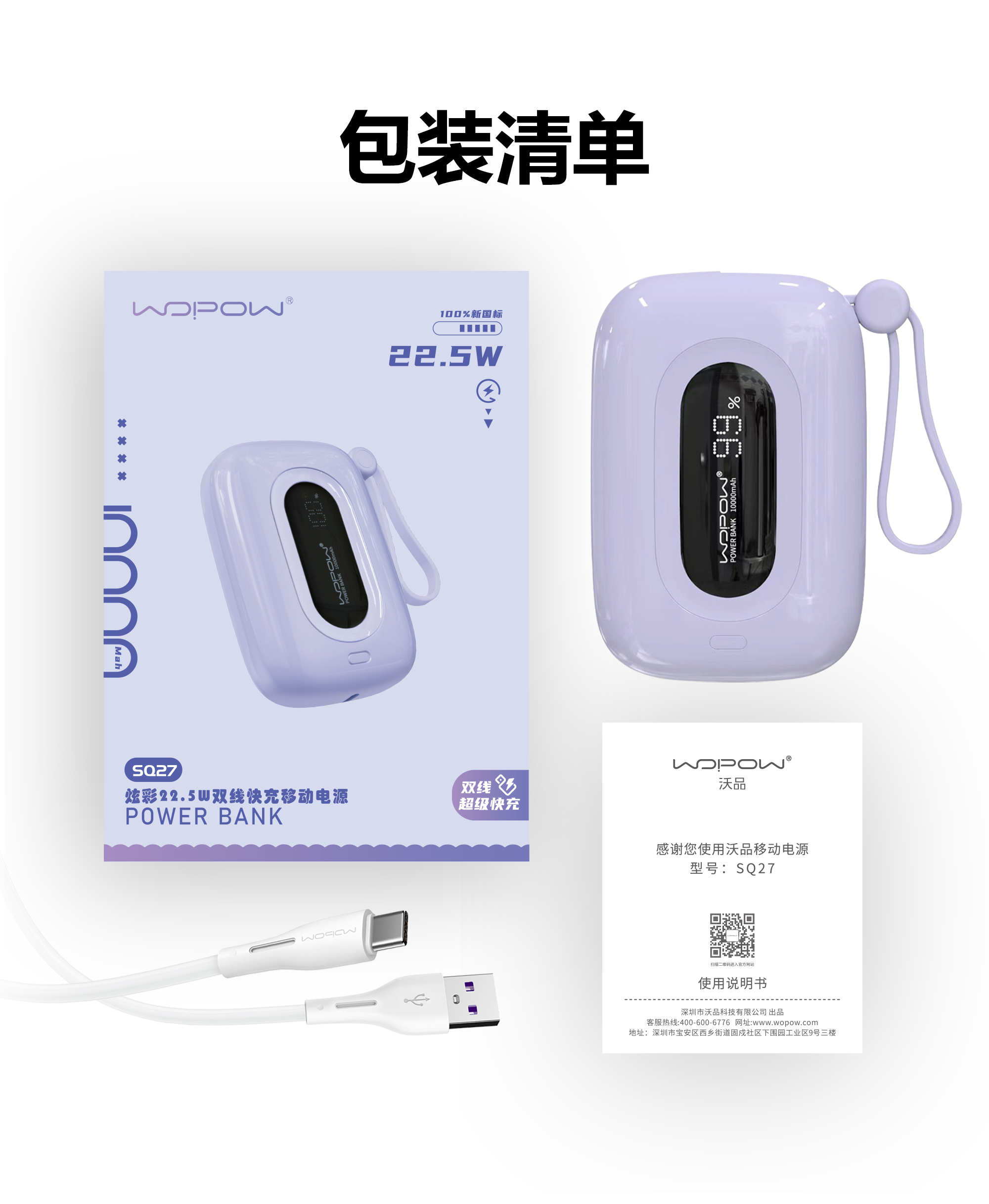 【自营】 沃品WOPOW 3C认证 22.5W超级快充移动电源 电量数显 充电宝 1万/2万 Ah 多规格