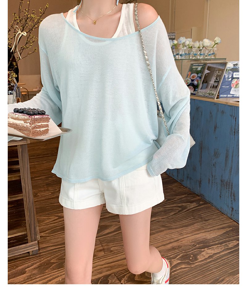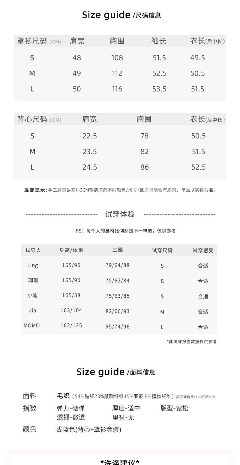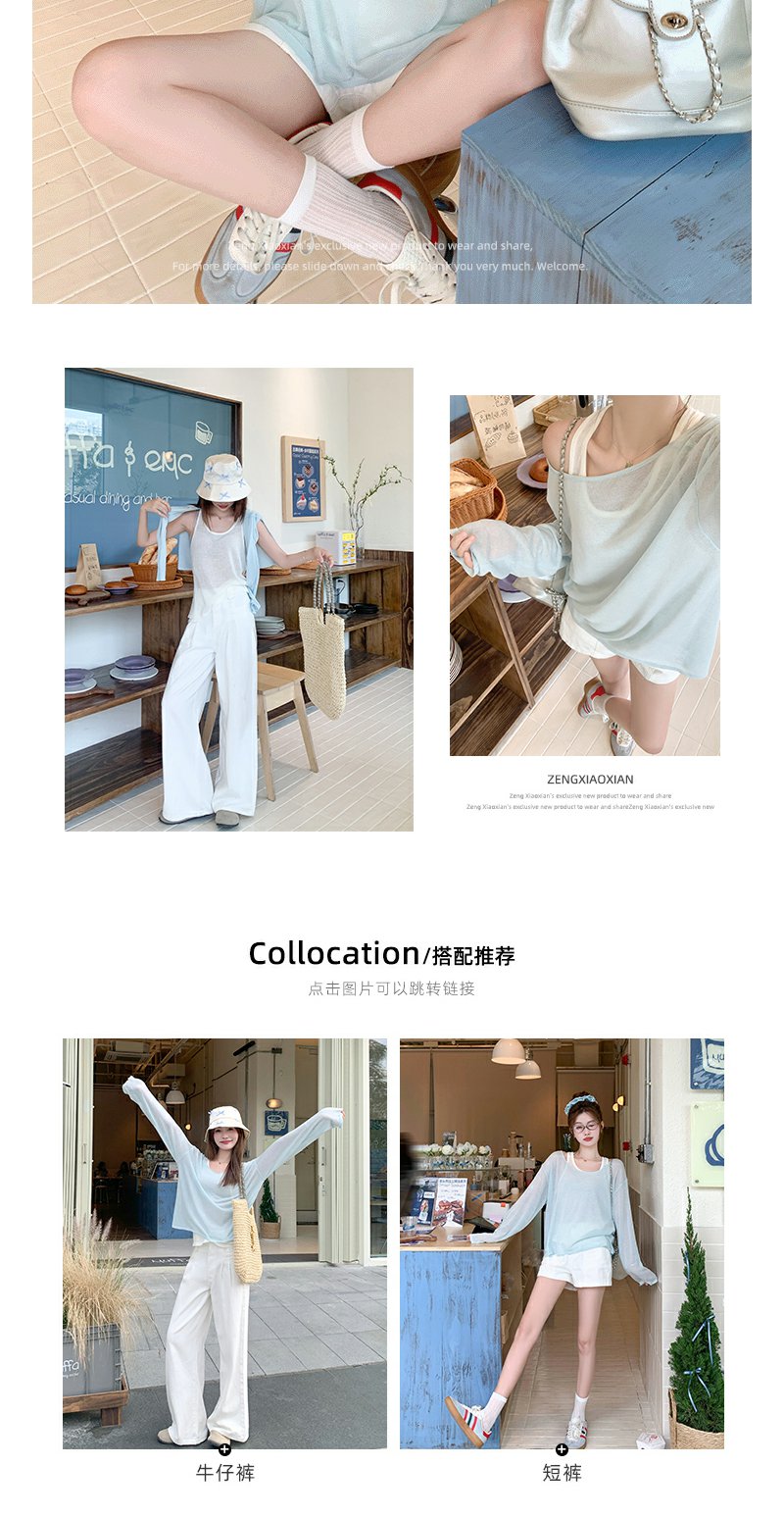 <曾小咸推荐>蓝色防晒罩衫T恤白色背心真两件套【预售3-15天发货】