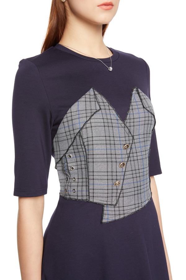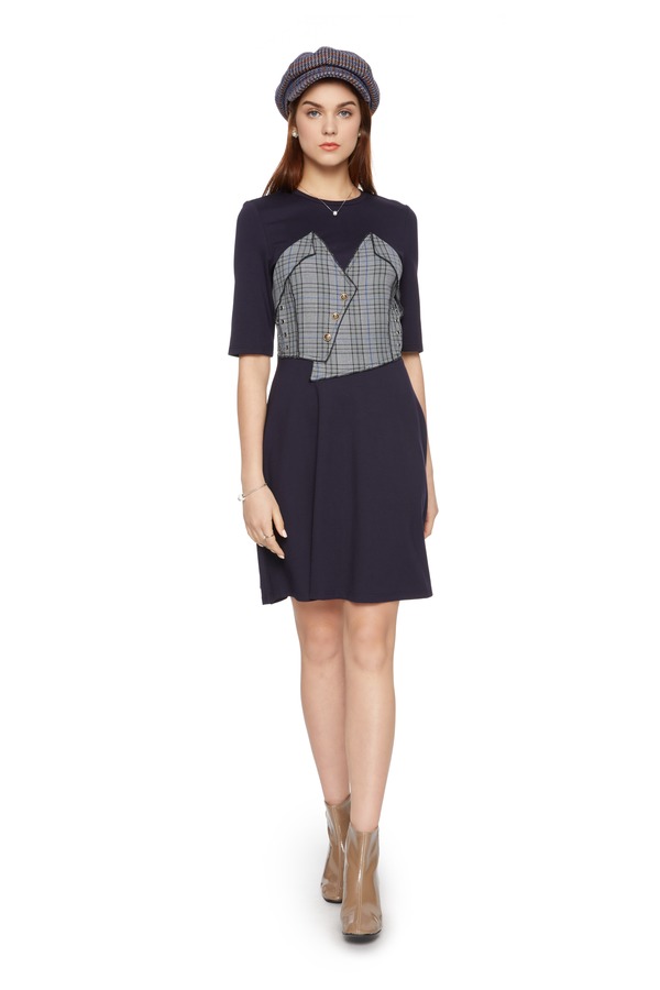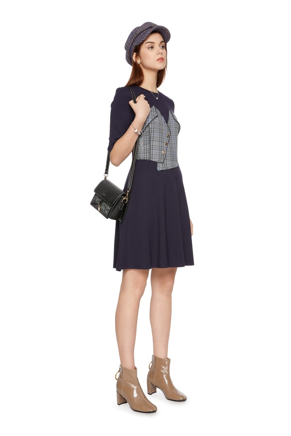 SUMMER & SAGE 格纹拼接收腰连衣裙 5704