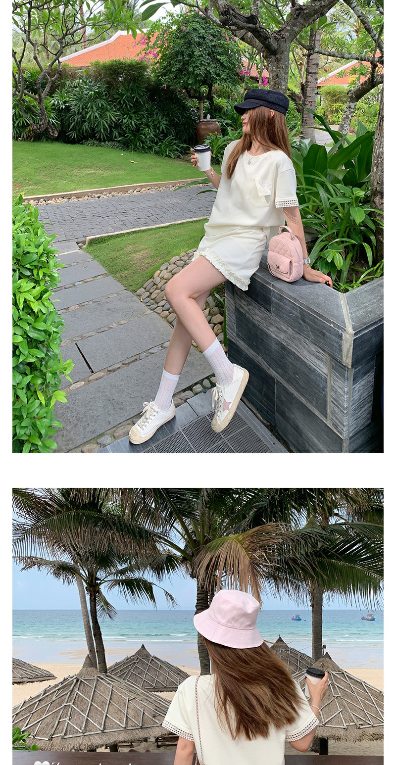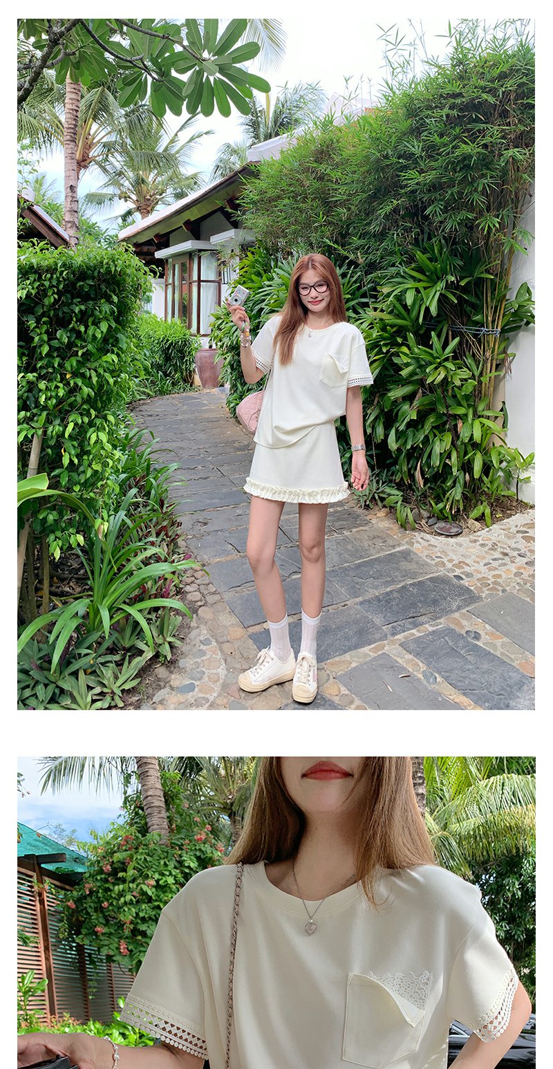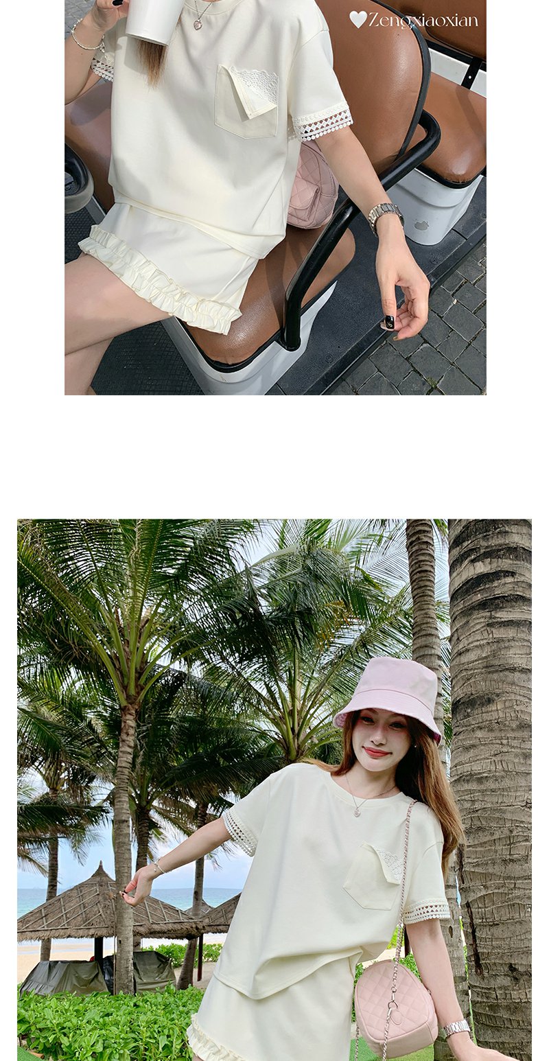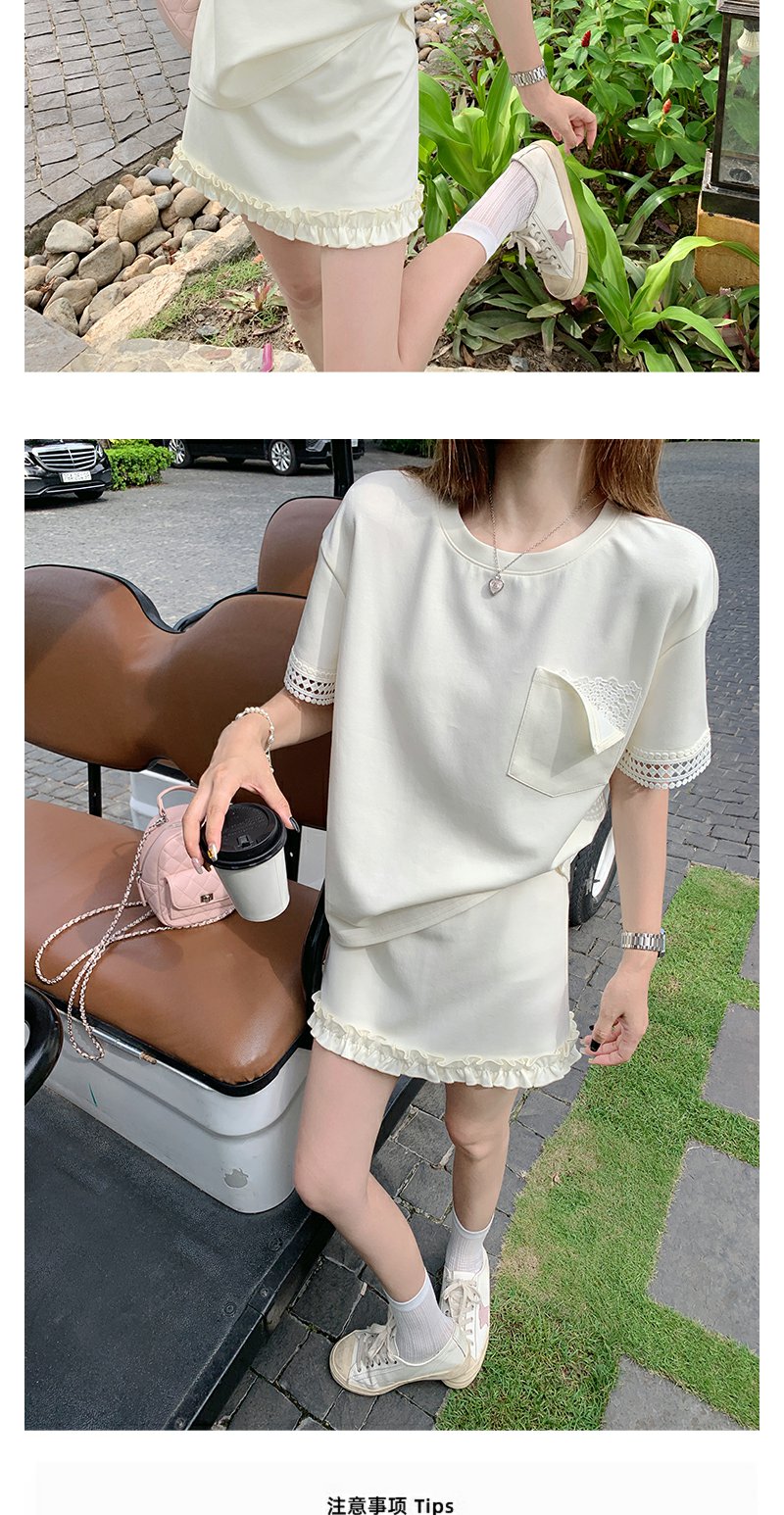 【折后再享2件88折】现货秒杀!微信打折价!袖口蕾丝边T恤+花边短裙两件套 日常189.99/件 立减60 秒杀129.99/件!!