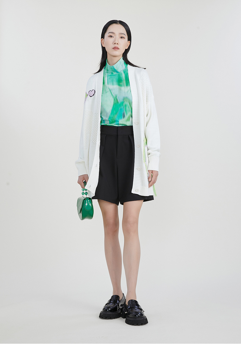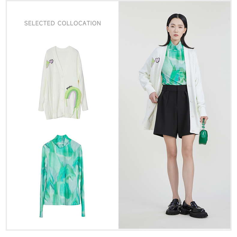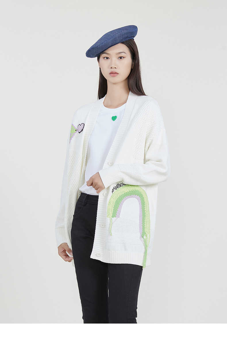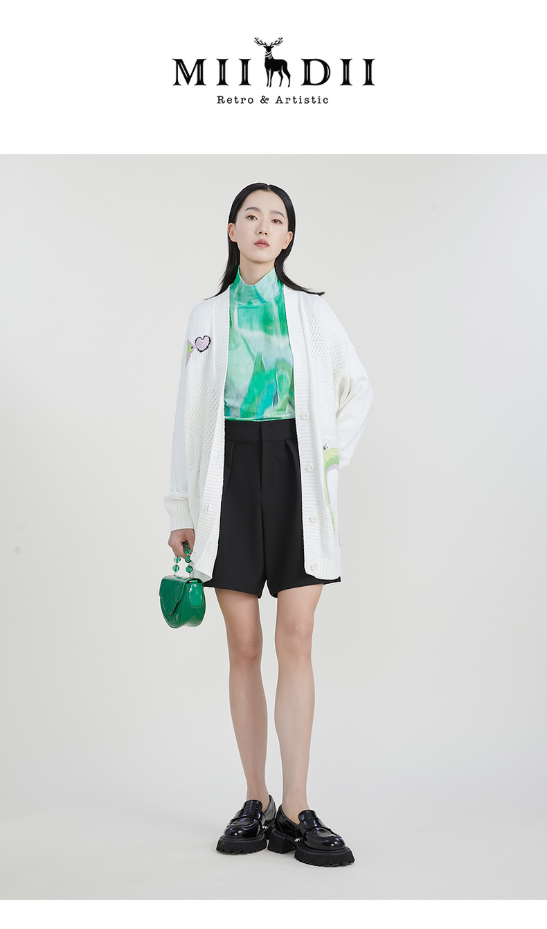 谜底针织衫外套女23春新款慵懒风中长款毛衣针织开衫女231MZ0320