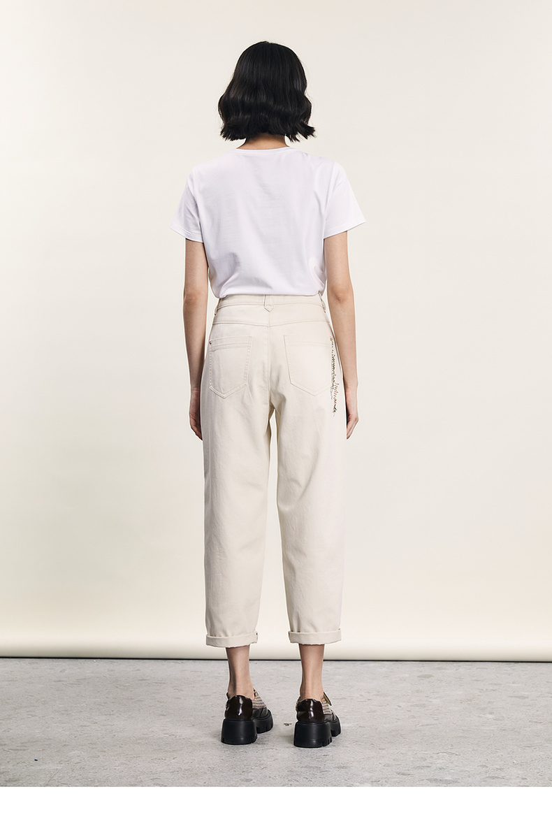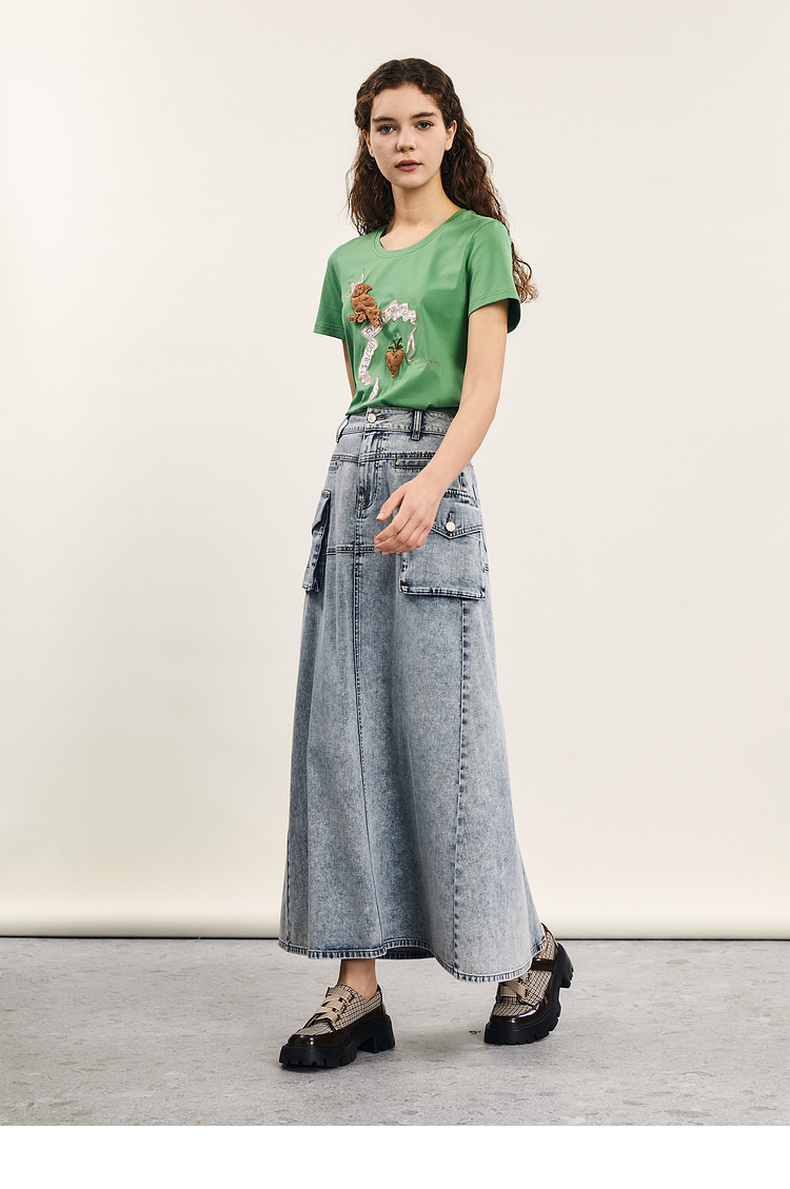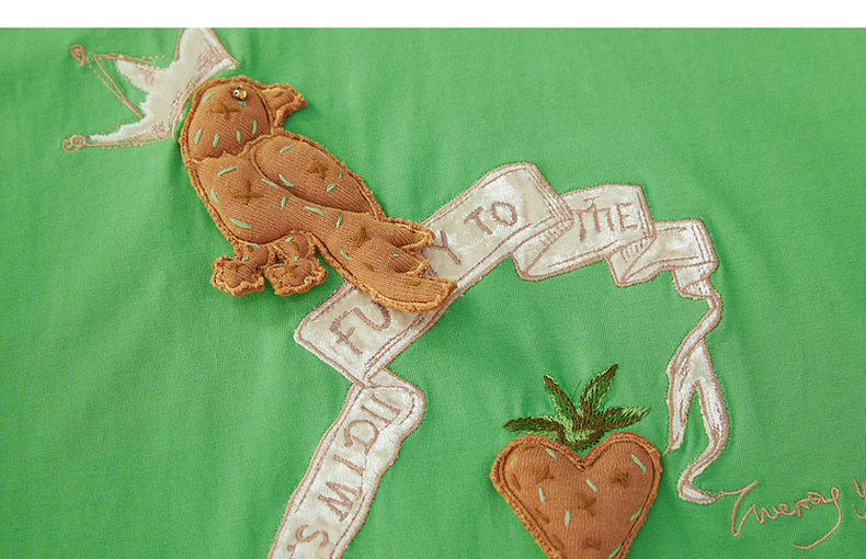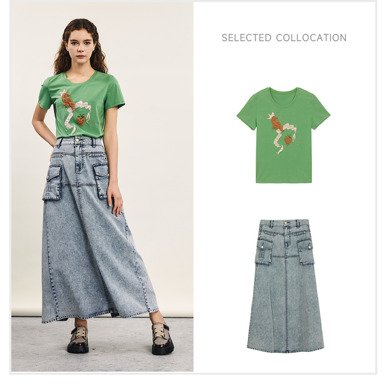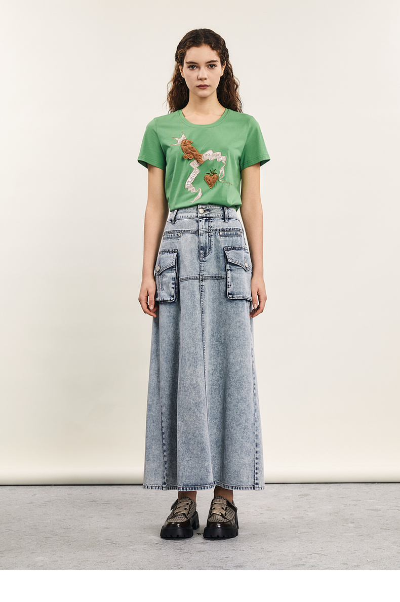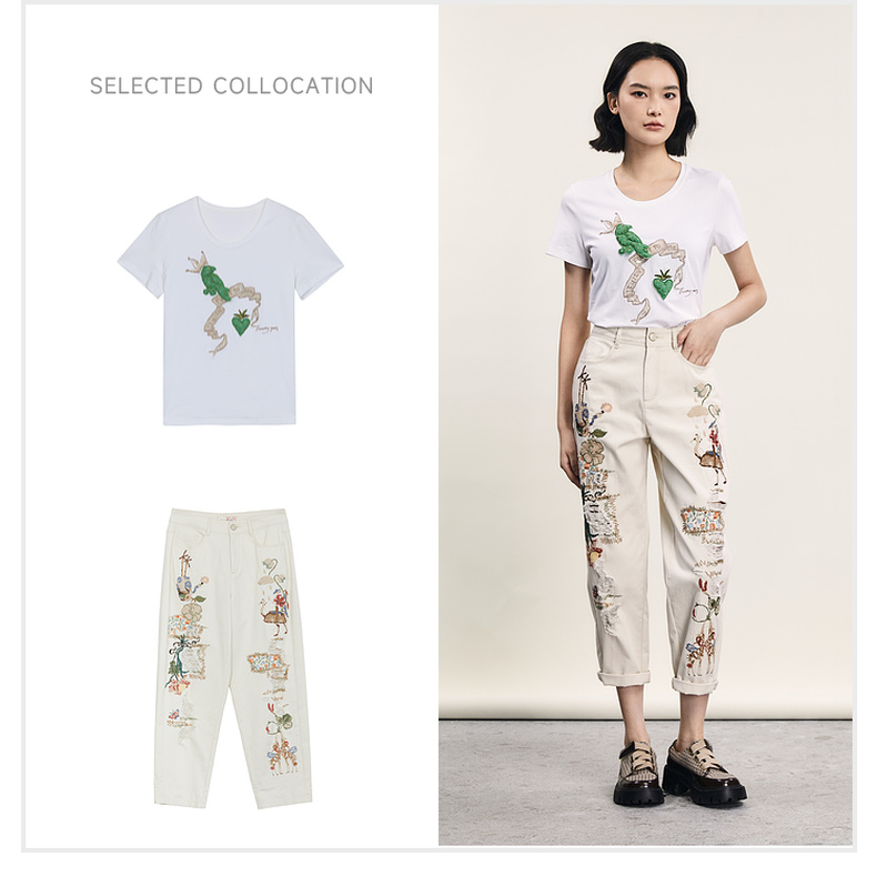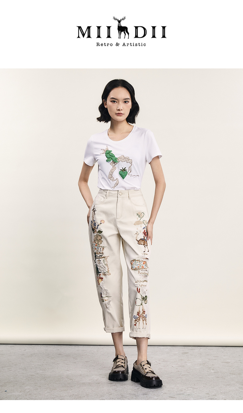 谜底圆领印花T恤女2024年夏季新品时尚绣花修身百搭上衣242MT0527
