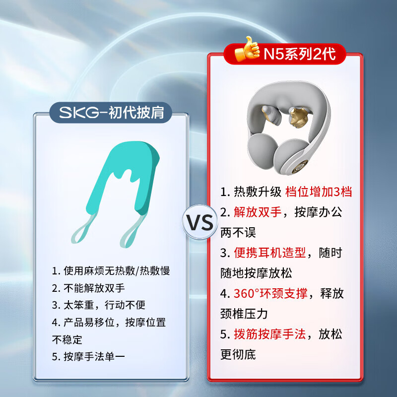 【品牌直发,非质量问题不退换,介意慎拍】skg颈椎按摩器N5-2 颈部按摩仪脖子肩颈颈椎护颈仪热敷环颈揉捏